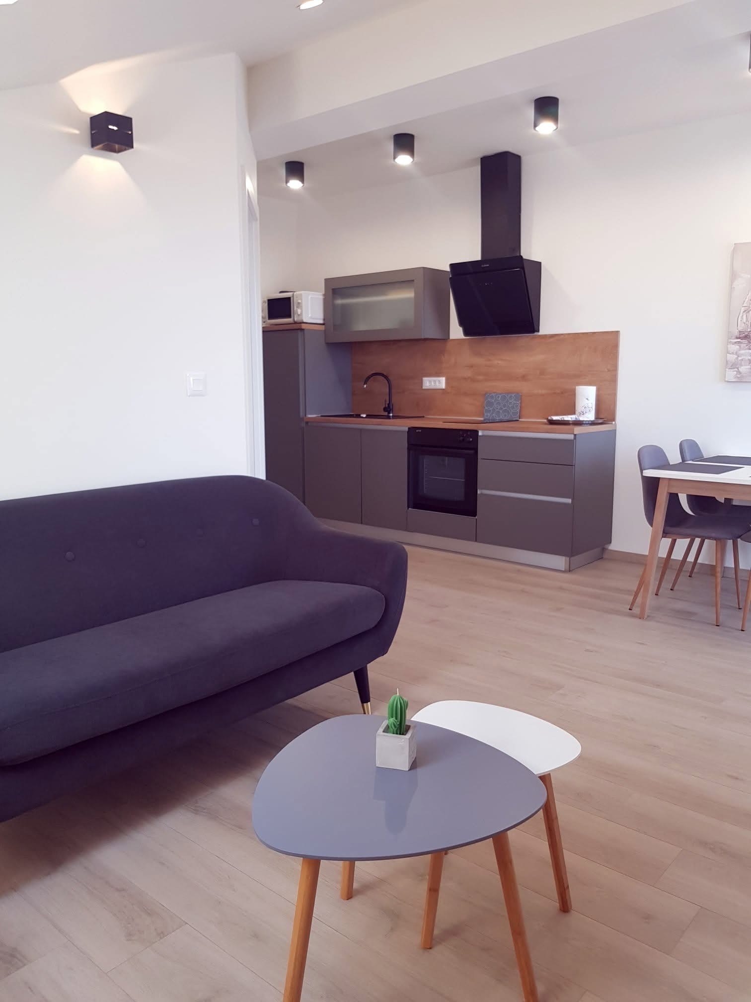 Apartament może przyjąć 4 gości. Łóżka znajdują się w sypialniach, których jest 2, na powierzchni 45m2. Goście mają dostęp do tarasu, by korzystać z ciepłych, letnich wieczorów. Z apartamentu roztacza się widok na morze. Możliwość przygotowywania posiłków poprzez korzystanie ze wspólnego grilla. WLICZONE W CENĘ: taksa pobytowa, sprzątanie końcowe, klimatyzacja, parking, internet, żelazko, deska do prasowania, suszarka do włosów. OBOWIĄZKOWE KOSZTY DODATKOWE: dopłata za krótki termin (procent dopłaty w zalezności od liczby noclegów: 30% - 1, 20% - 2, 10% - 3). Dostępność dodatkowych usług w rezerwowanym terminie oraz ich cenę (jeśli nie jest podana) należy sprawdzić wcześniej. Za dodatowe usługi, które nie zostały uwzględnione w kalkulacji ceny, płaci się bezpośrednio właścicielowi obiektu, pod warunkiem śe gość korzysta z tych usług.