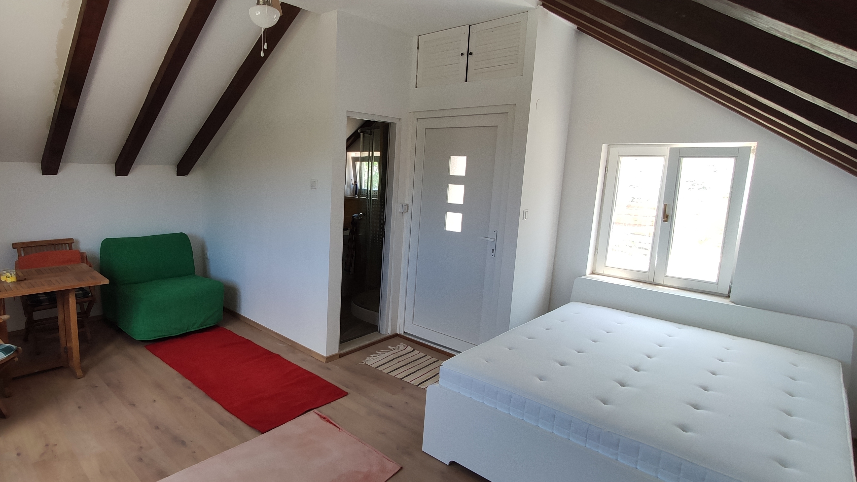 Dom może przyjąć 4 gości. Łóżka znajdują się w sypialniach, których jest 1, oraz w pokoju dziennym, na powierzchni 60m2. Goście mają dostęp do tarasu, by korzystać z ciepłych, letnich wieczorów. Z domu wakacyjnego roztacza się widok na morze. Grill jest dostępny tylko do użytku gości z tej kwatery. W kwaterze dozwolony jest pobyt zwierzęcia domowego, za dopłatą. Pomieszczenia rezerwowanej kwatery nie są połączone w jedną całość. WLICZONE W CENĘ: taksa pobytowa, sprzątanie końcowe, parking. OBOWIĄZKOWE KOSZTY DODATKOWE: dopłata za krótki termin (procent dopłaty w zalezności od liczby noclegów: 30% - 1, 20% - 2, 10% - 3). NIEOBOWIĄZKOWE KOSZTY DODATKOWE: pranie bielizny (10,00 € pranie), zwierzęta domowe (5,00 € za nocleg). Dostępność dodatkowych usług w rezerwowanym terminie oraz ich cenę (jeśli nie jest podana) należy sprawdzić wcześniej. Za dodatowe usługi, które nie zostały uwzględnione w kalkulacji ceny, płaci się bezpośrednio właścicielowi obiektu, pod warunkiem śe gość korzysta z tych usług. Zniżki od ceny podstawowej: bezpłatny dzień 14=13 (przy pobycie, trwającym co najmniej 14 dni, otrzymujecie jeden bezpłatny dzień na pobyt do 31.12.2026).