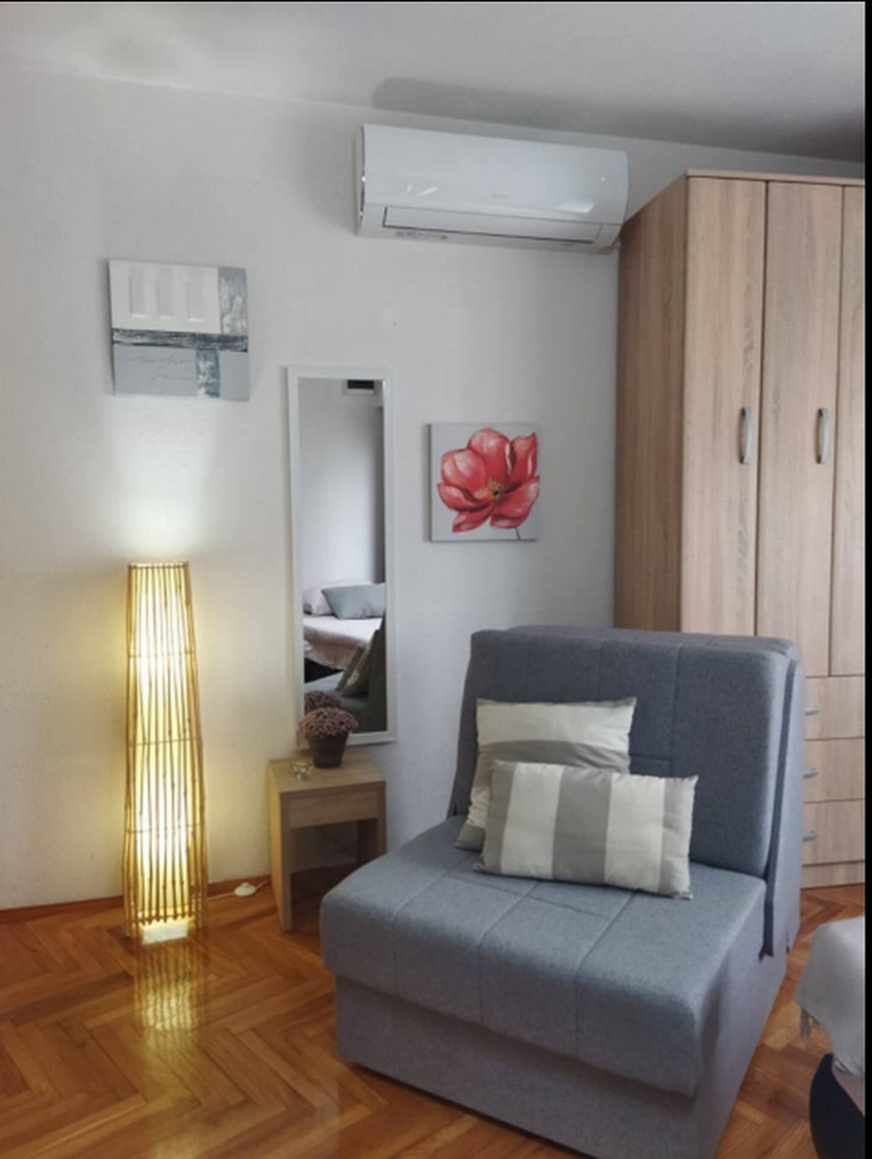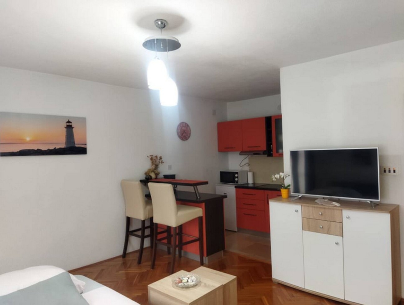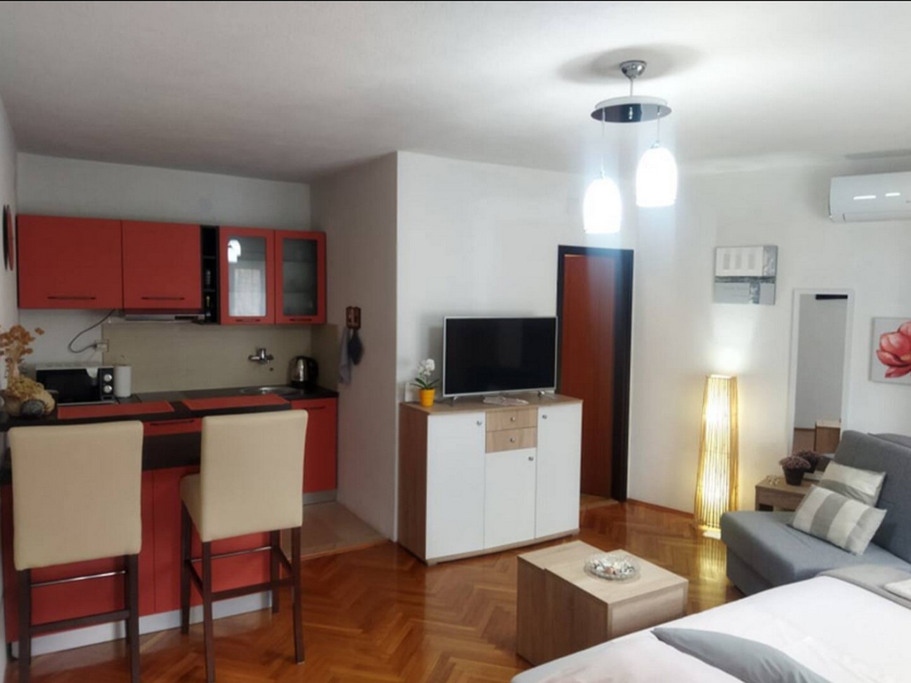 Studio może przyjąć 2 gości. Łóżka znajdują się w sypialniach, których jest 1, na powierzchni 27m2. Goście mają dostęp do balkonu, by korzystać z ciepłych, letnich wieczorów. WLICZONE W CENĘ: taksa pobytowa, sprzątanie końcowe, klimatyzacja, internet, żelazko, deska do prasowania, suszarka do włosów. Dostępność dodatkowych usług w rezerwowanym terminie oraz ich cenę (jeśli nie jest podana) należy sprawdzić wcześniej. Za dodatowe usługi, które nie zostały uwzględnione w kalkulacji ceny, płaci się bezpośrednio właścicielowi obiektu, pod warunkiem śe gość korzysta z tych usług. Zniżki od ceny podstawowej: bezpłatny dzień 14=13 (przy pobycie, trwającym co najmniej 14 dni, otrzymujecie jeden bezpłatny dzień na pobyt do 31.12.2026).