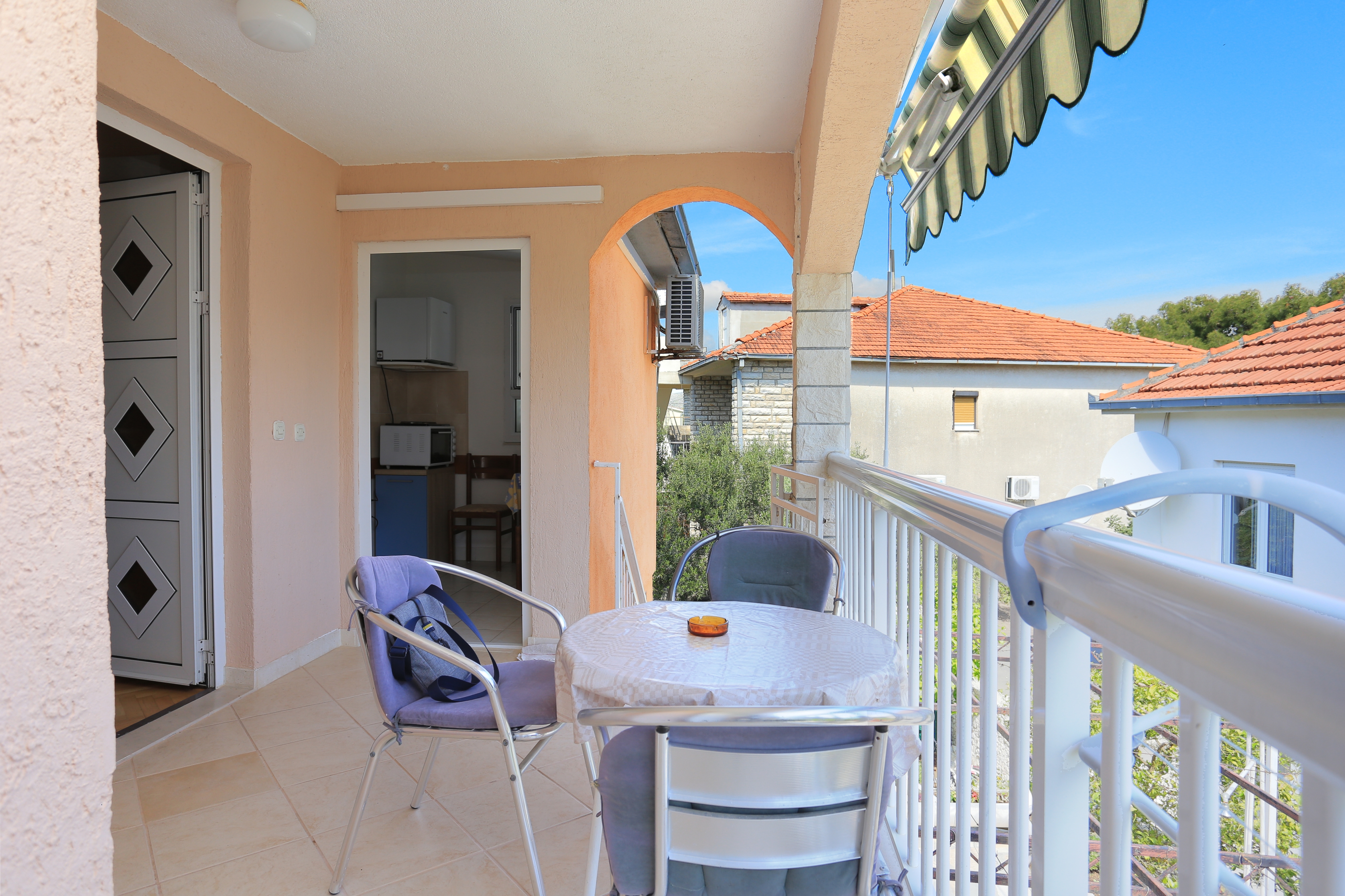 Apartament może przyjąć 2 gości. Łóżka znajdują się w sypialniach, których jest 1, na powierzchni 22m2. Goście mają dostęp do tarasu, by korzystać z ciepłych, letnich wieczorów. Z apartamentu roztacza się widok na morze. Możliwość przygotowywania posiłków poprzez korzystanie ze wspólnego grilla. WLICZONE W CENĘ: taksa pobytowa, sprzątanie końcowe, klimatyzacja, parking, internet, pranie bielizny, żelazko, deska do prasowania, suszarka do włosów. OBOWIĄZKOWE KOSZTY DODATKOWE: dopłata za krótki termin (procent dopłaty w zalezności od liczby noclegów: 30% - 1, 20% - 2, 10% - 3). NIEOBOWIĄZKOWE KOSZTY DODATKOWE: dostawka (10,00 € za nocleg). Dostępność dodatkowych usług w rezerwowanym terminie oraz ich cenę (jeśli nie jest podana) należy sprawdzić wcześniej. Za dodatowe usługi, które nie zostały uwzględnione w kalkulacji ceny, płaci się bezpośrednio właścicielowi obiektu, pod warunkiem śe gość korzysta z tych usług.