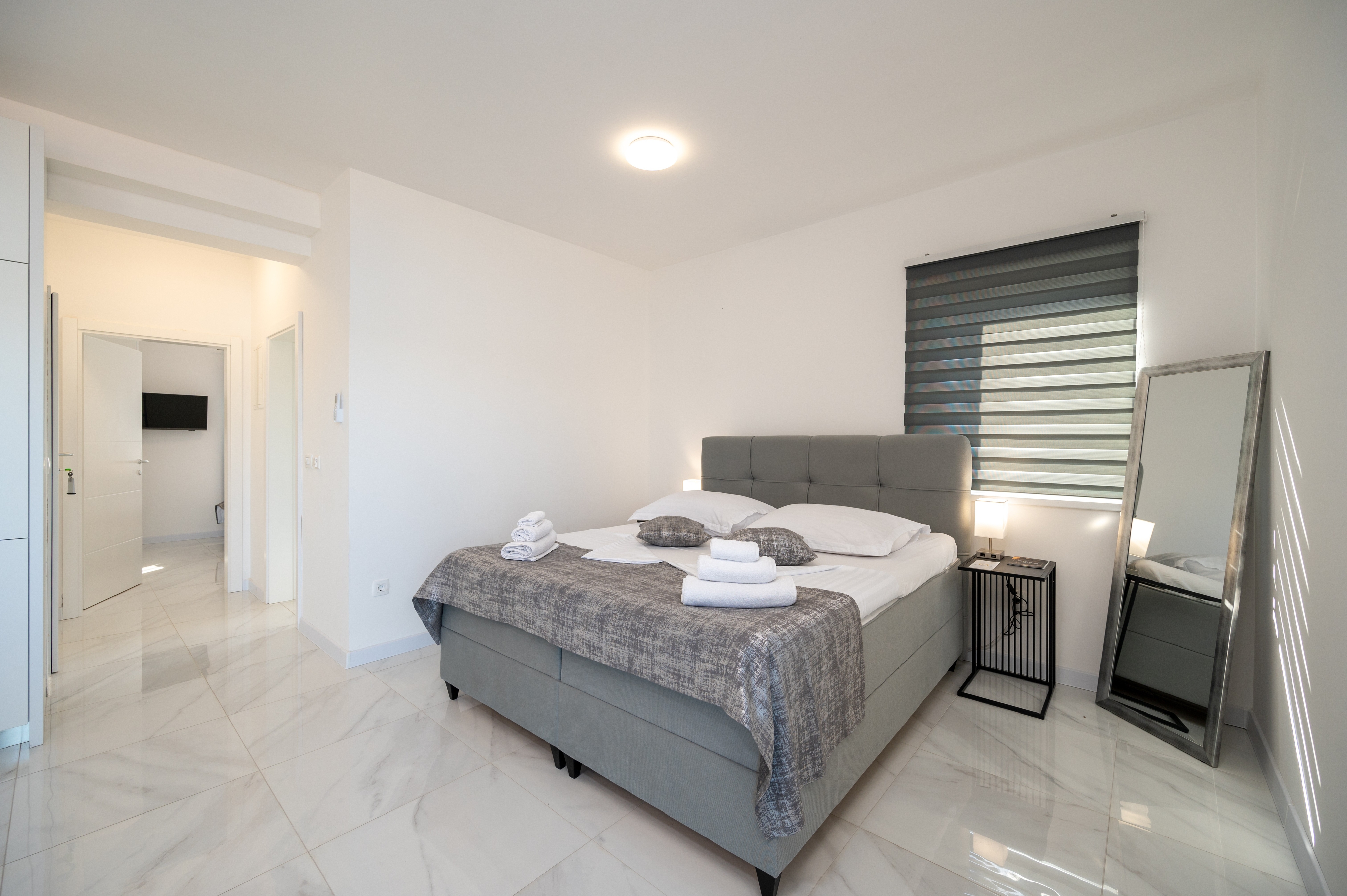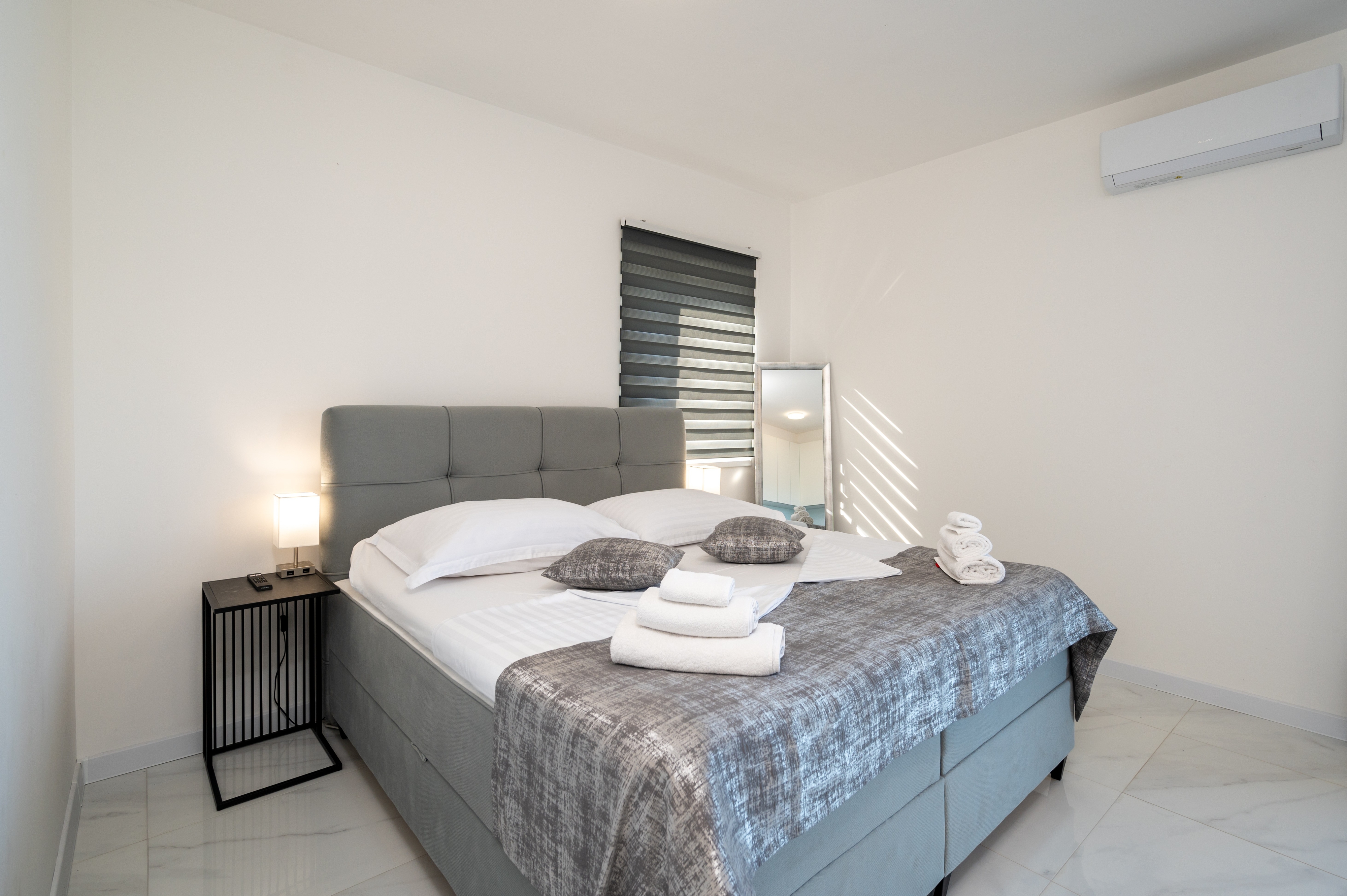 Apartament może przyjąć 4 gości. Łóżka znajdują się w sypialniach, których jest 1, oraz w pokoju dziennym, na powierzchni 38m2. Goście mają dostęp do balkonu, by korzystać z ciepłych, letnich wieczorów. Z apartamentu roztacza się widok na morze. WLICZONE W CENĘ: taksa pobytowa, sprzątanie końcowe, klimatyzacja, parking, internet, łóżeczko dziecięce, żelazko, deska do prasowania, suszarka do włosów. Dostępność dodatkowych usług w rezerwowanym terminie oraz ich cenę (jeśli nie jest podana) należy sprawdzić wcześniej. Za dodatowe usługi, które nie zostały uwzględnione w kalkulacji ceny, płaci się bezpośrednio właścicielowi obiektu, pod warunkiem śe gość korzysta z tych usług. Zniżki od ceny podstawowej: bezpłatny dzień 21=19 (przy pobycie, trwającym co najmniej 21 dni, trzymujecie dwa bezpłatne dni na pobyt do 31.12.2026).