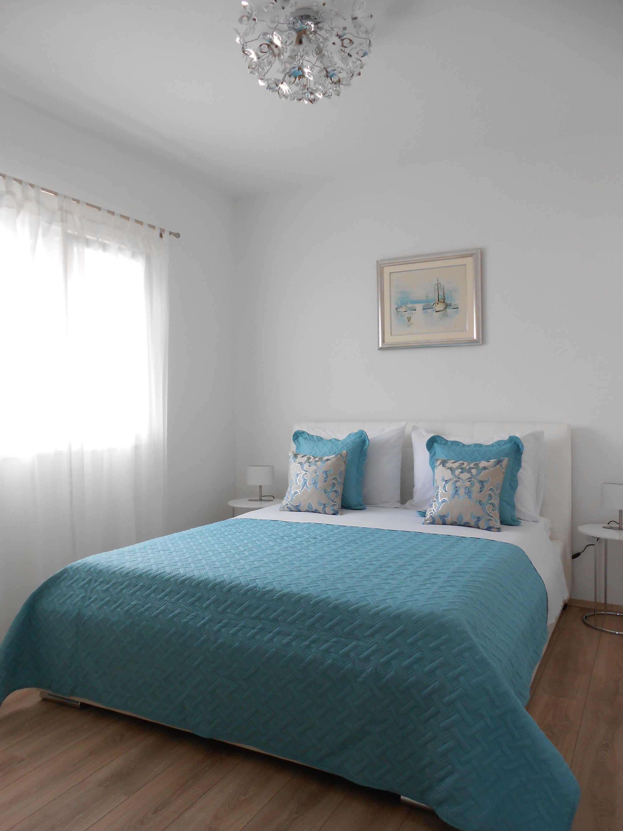 Apartament może przyjąć 4 gości. Łóżka znajdują się w sypialniach, których jest 2, oraz w pokoju dziennym, na powierzchni 43m2. Goście mają dostęp do tarasu, by korzystać z ciepłych, letnich wieczorów. Z apartamentu roztacza się widok na morze. Możliwość przygotowywania posiłków poprzez korzystanie ze wspólnego grilla. WLICZONE W CENĘ: taksa pobytowa, sprzątanie końcowe, klimatyzacja, parking, internet, pranie bielizny, żelazko, deska do prasowania, suszarka do włosów, parasol. Dostępność dodatkowych usług w rezerwowanym terminie oraz ich cenę (jeśli nie jest podana) należy sprawdzić wcześniej. Za dodatowe usługi, które nie zostały uwzględnione w kalkulacji ceny, płaci się bezpośrednio właścicielowi obiektu, pod warunkiem śe gość korzysta z tych usług. Zniżki od ceny podstawowej: bezpłatny dzień 14=13 (przy pobycie, trwającym co najmniej 14 dni, otrzymujecie jeden bezpłatny dzień na pobyt do 31.12.2026).