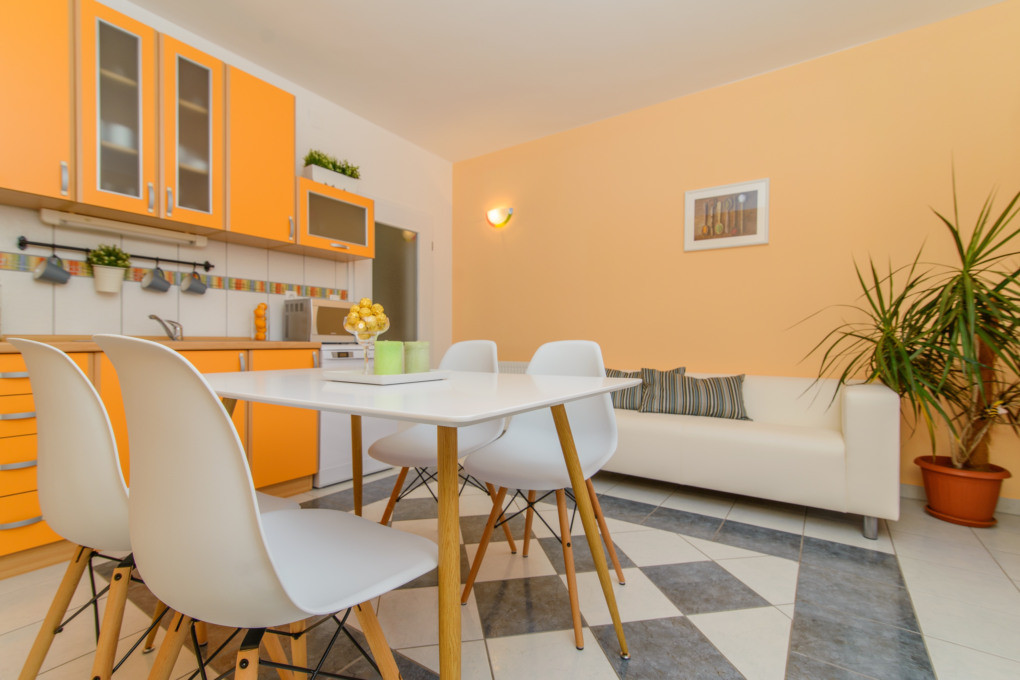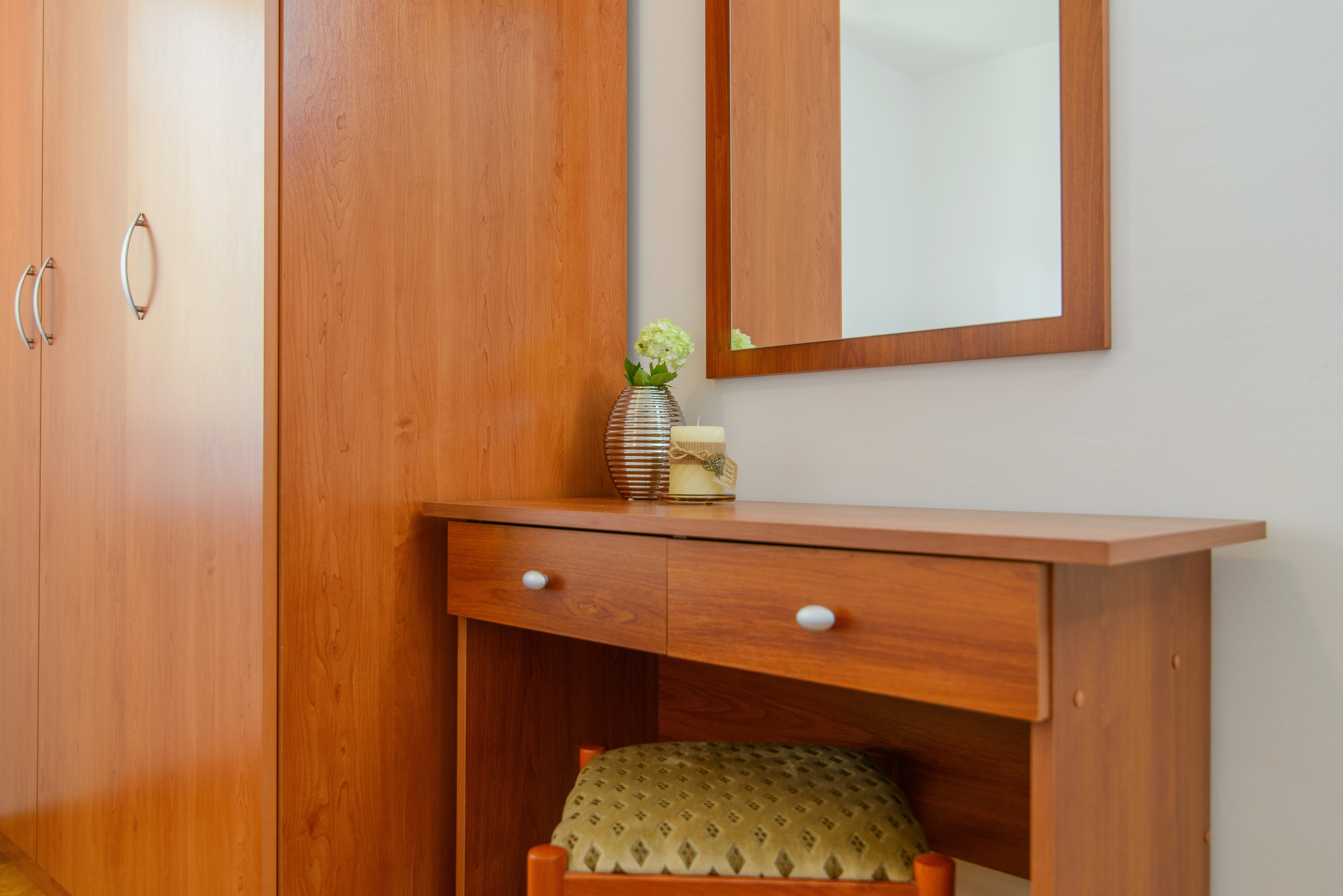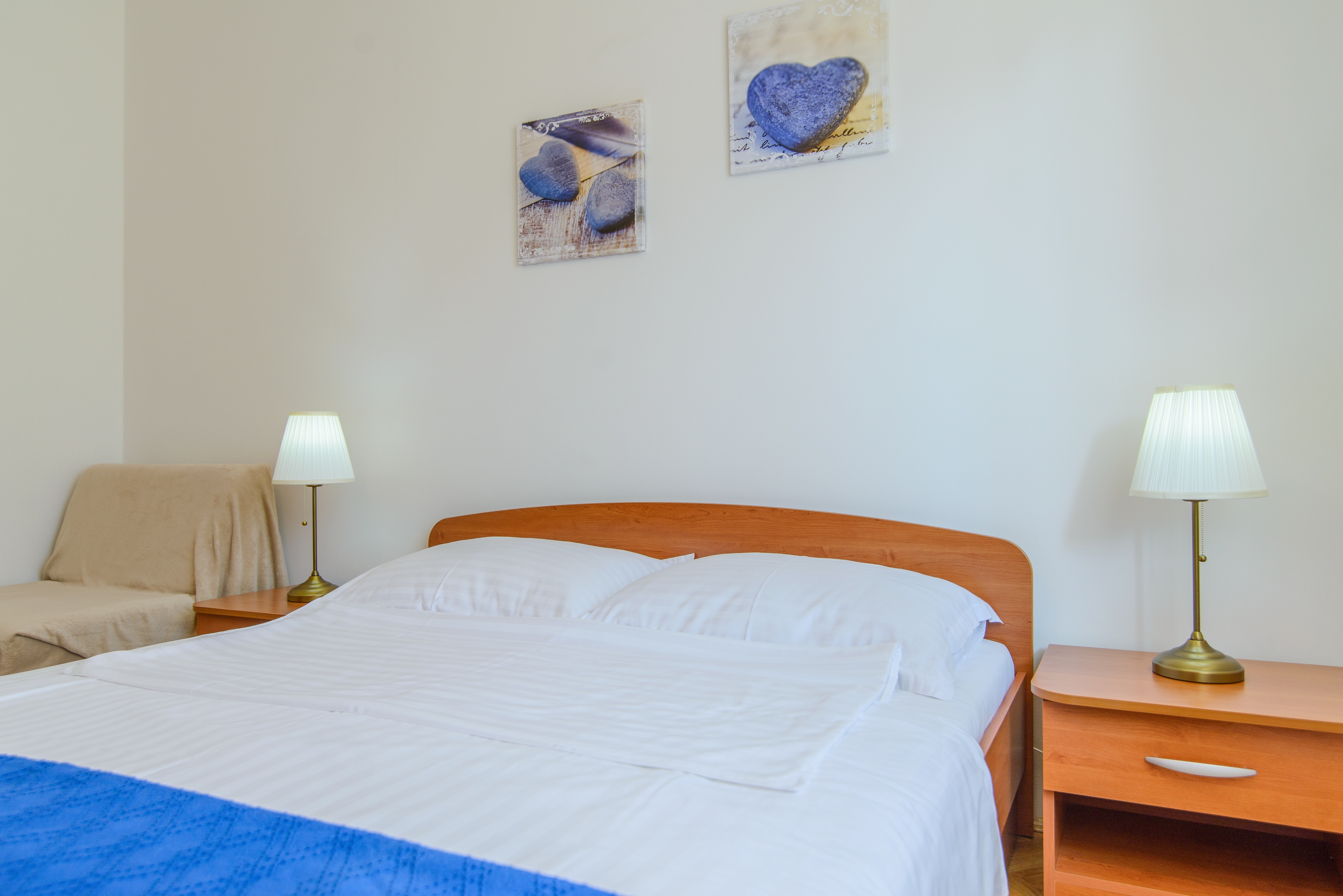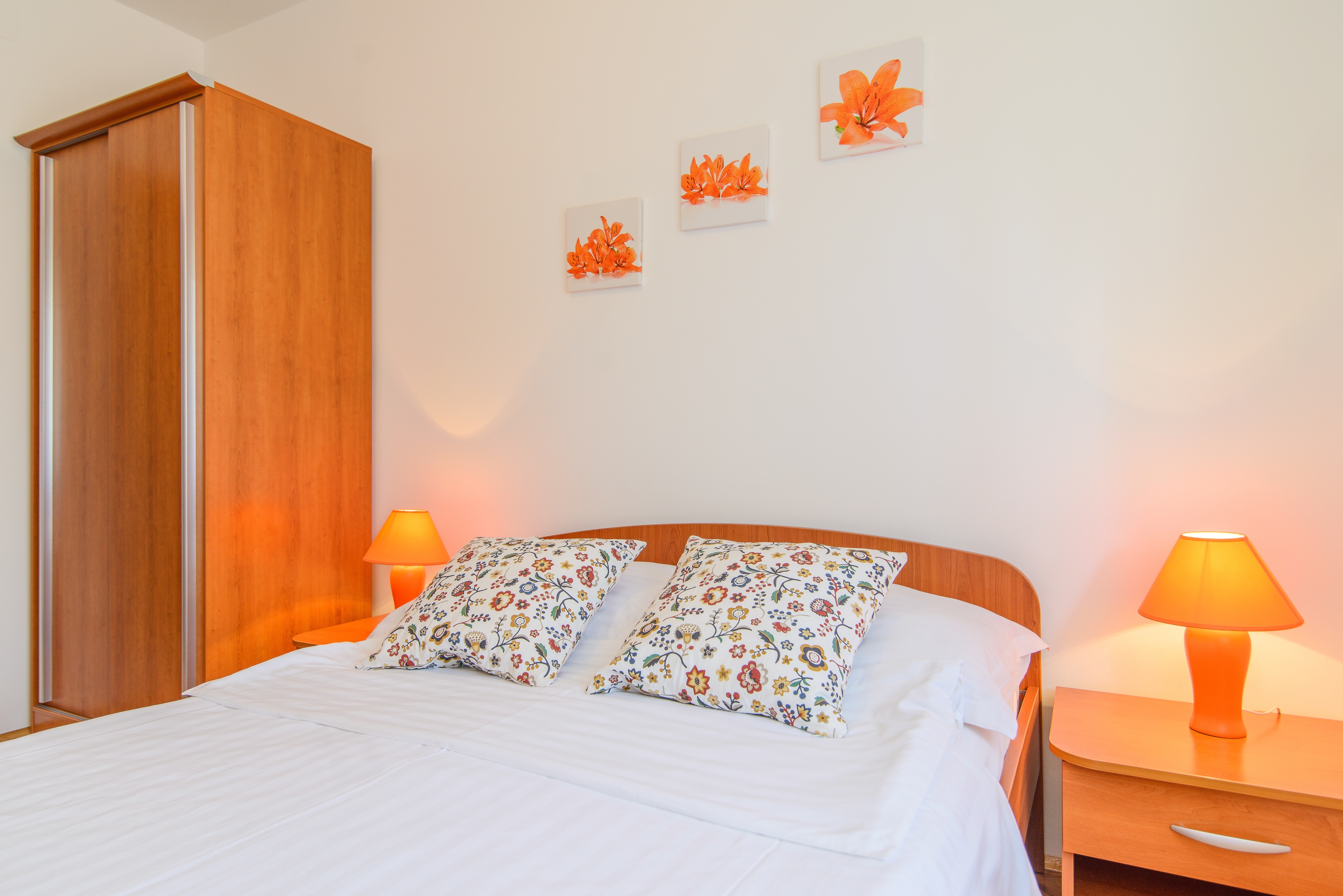 Apartament może przyjąć 5 gości. Łóżka znajdują się w sypialniach, których jest 2, na powierzchni 44m2. Goście mają dostęp do tarasu, by korzystać z ciepłych, letnich wieczorów. Z apartamentu roztacza się widok na morze. Możliwość przygotowywania posiłków poprzez korzystanie ze wspólnego grilla. W trakcie swojego pobytu goście mogą korzystać ze wspólnego basenu. WLICZONE W CENĘ: taksa pobytowa, sprzątanie końcowe, klimatyzacja, centralne ogrzewanie, basen, parking, internet, łóżeczko dziecięce, żelazko, deska do prasowania, suszarka do włosów. Dostępność dodatkowych usług w rezerwowanym terminie oraz ich cenę (jeśli nie jest podana) należy sprawdzić wcześniej. Za dodatowe usługi, które nie zostały uwzględnione w kalkulacji ceny, płaci się bezpośrednio właścicielowi obiektu, pod warunkiem śe gość korzysta z tych usług.