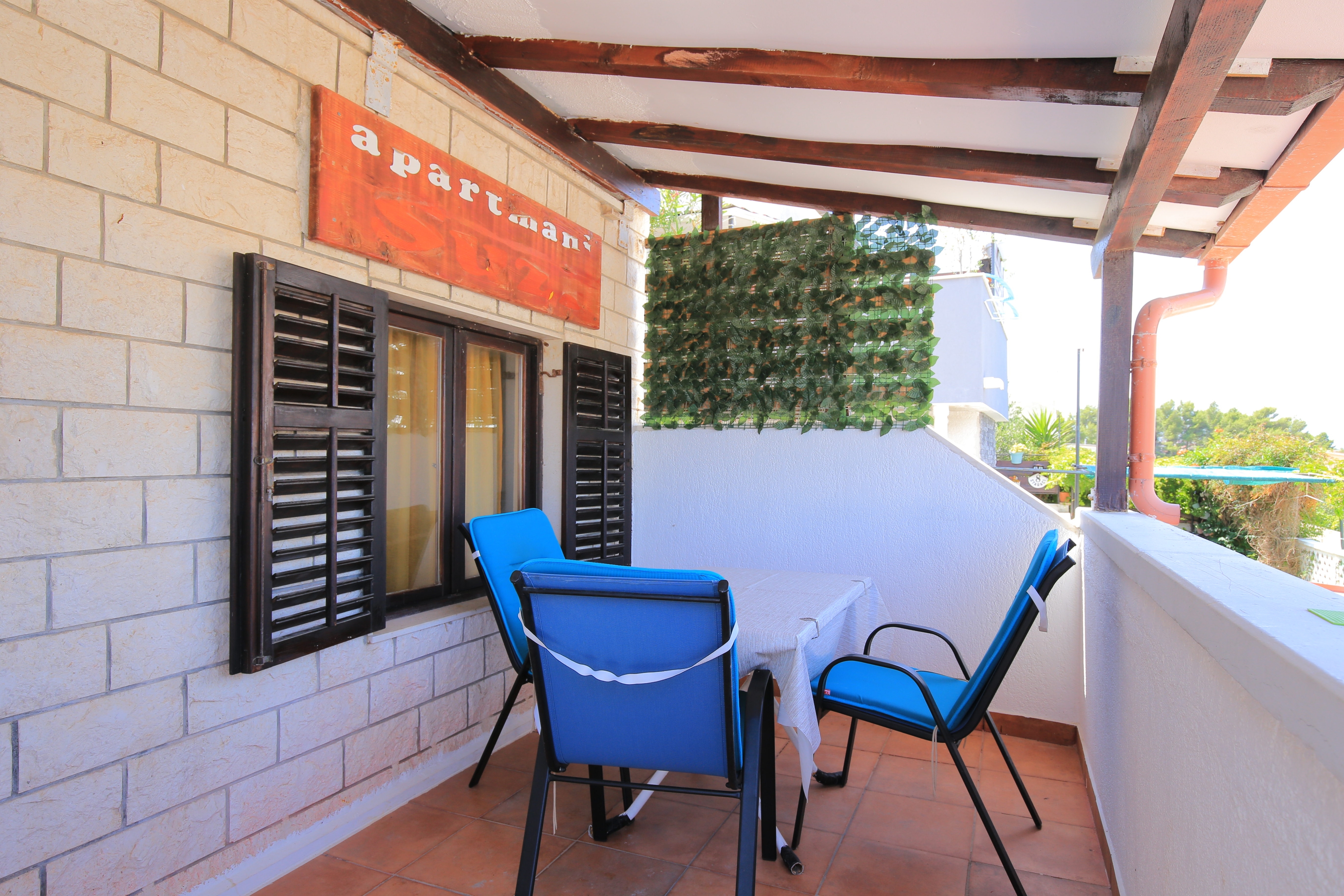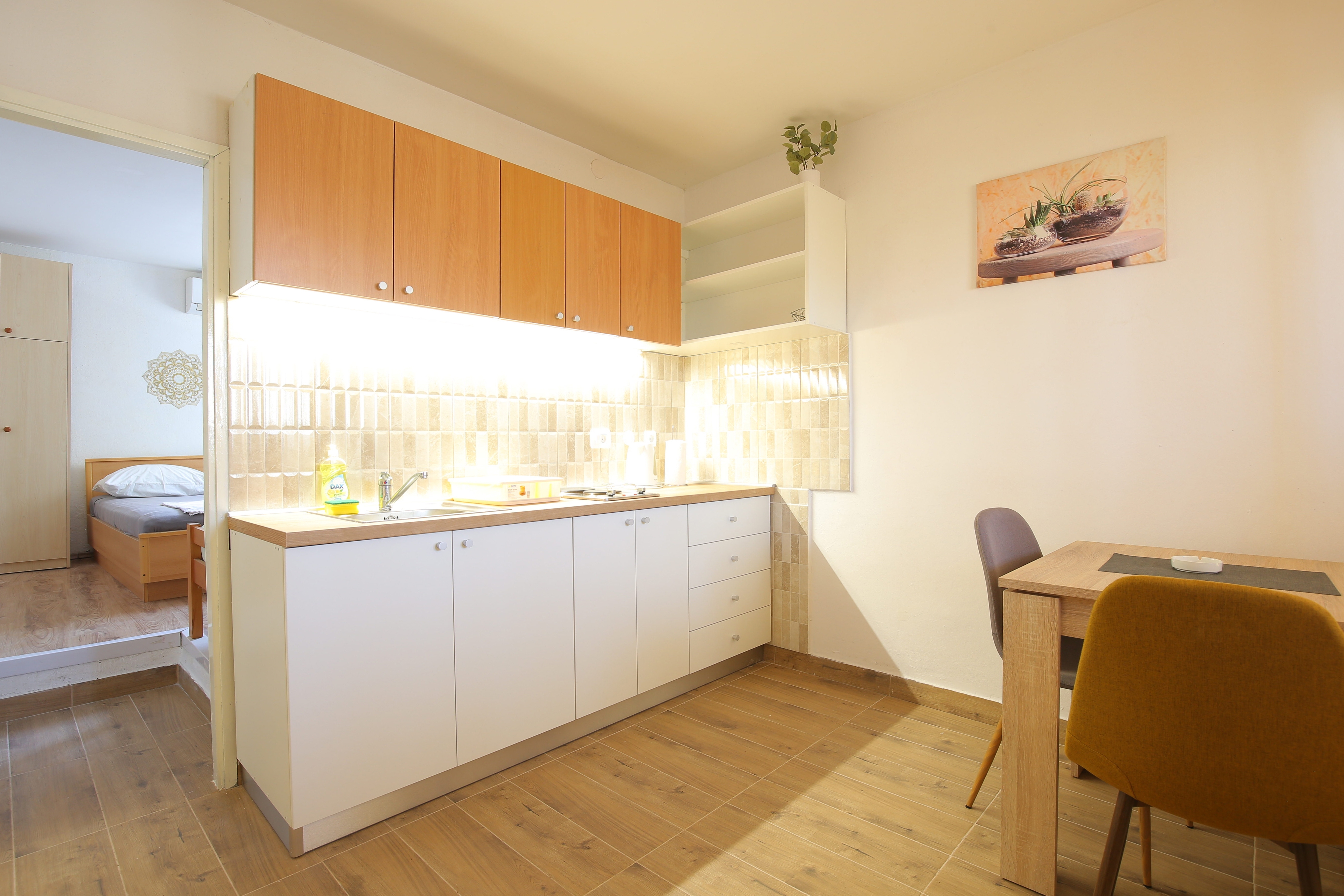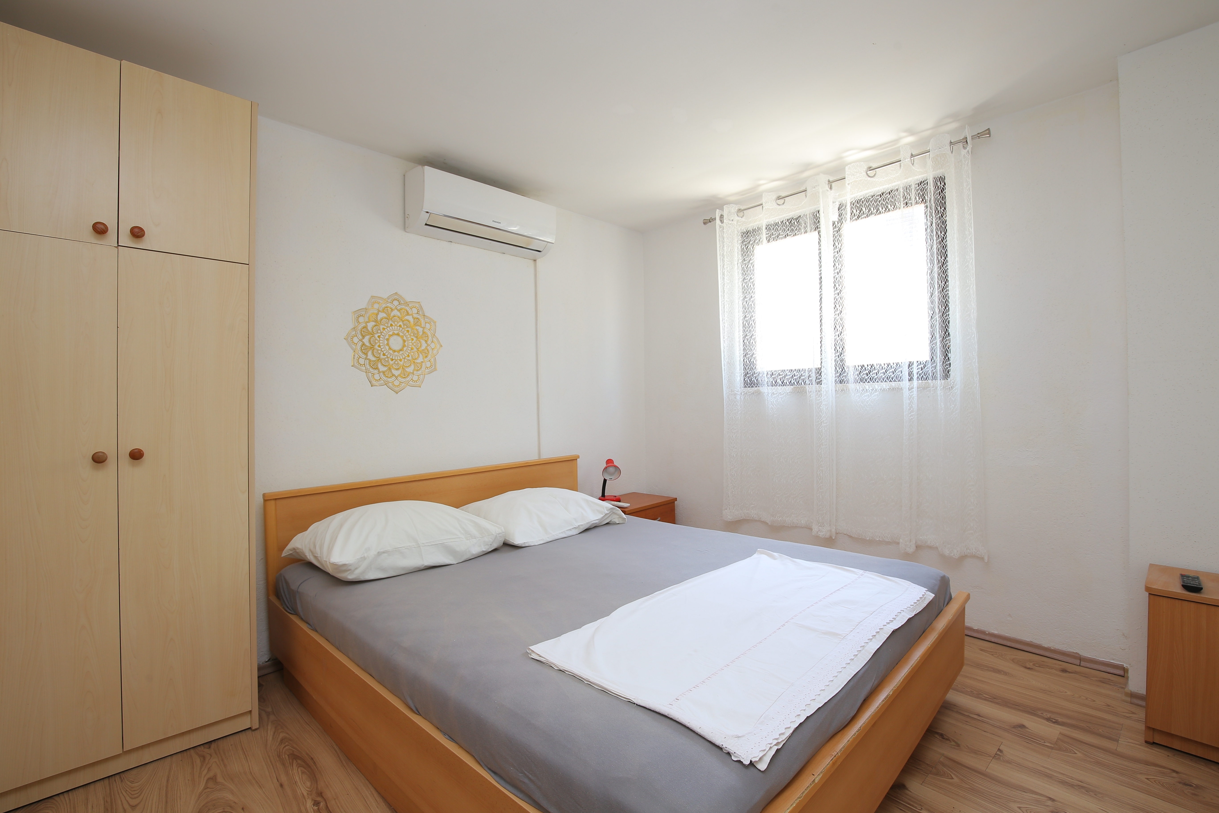 Apartament może przyjąć 3 gości. Łóżka znajdują się w sypialniach, których jest 1, na powierzchni 30m2. Goście mają dostęp do tarasu, by korzystać z ciepłych, letnich wieczorów. Z apartamentu roztacza się widok na morze. Możliwość przygotowywania posiłków poprzez korzystanie ze wspólnego grilla. W kwaterze dozwolony jest pobyt zwierzęcia domowego, za dopłatą. WLICZONE W CENĘ: taksa pobytowa, sprzątanie końcowe, klimatyzacja, parking, internet, pranie bielizny, łóżeczko dziecięce, żelazko, deska do prasowania, suszarka do włosów. NIEOBOWIĄZKOWE KOSZTY DODATKOWE: zwierzęta domowe (5,00 € za nocleg). Dostępność dodatkowych usług w rezerwowanym terminie oraz ich cenę (jeśli nie jest podana) należy sprawdzić wcześniej. Za dodatowe usługi, które nie zostały uwzględnione w kalkulacji ceny, płaci się bezpośrednio właścicielowi obiektu, pod warunkiem śe gość korzysta z tych usług.