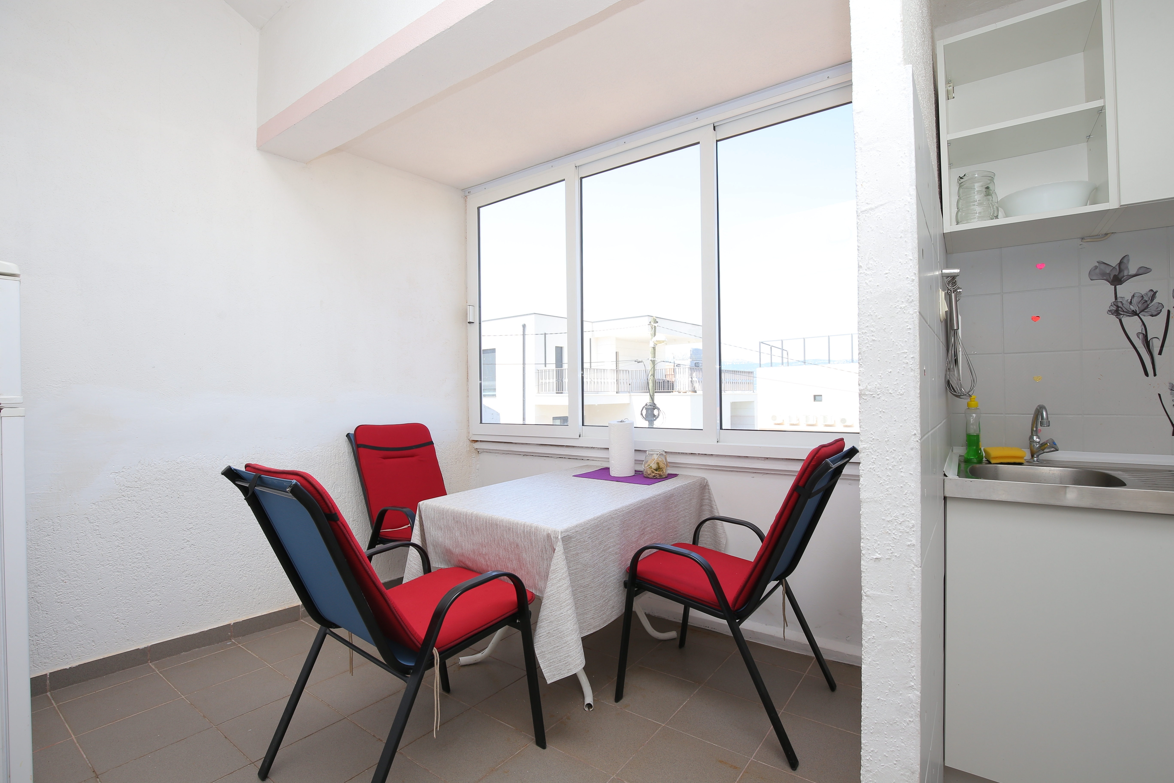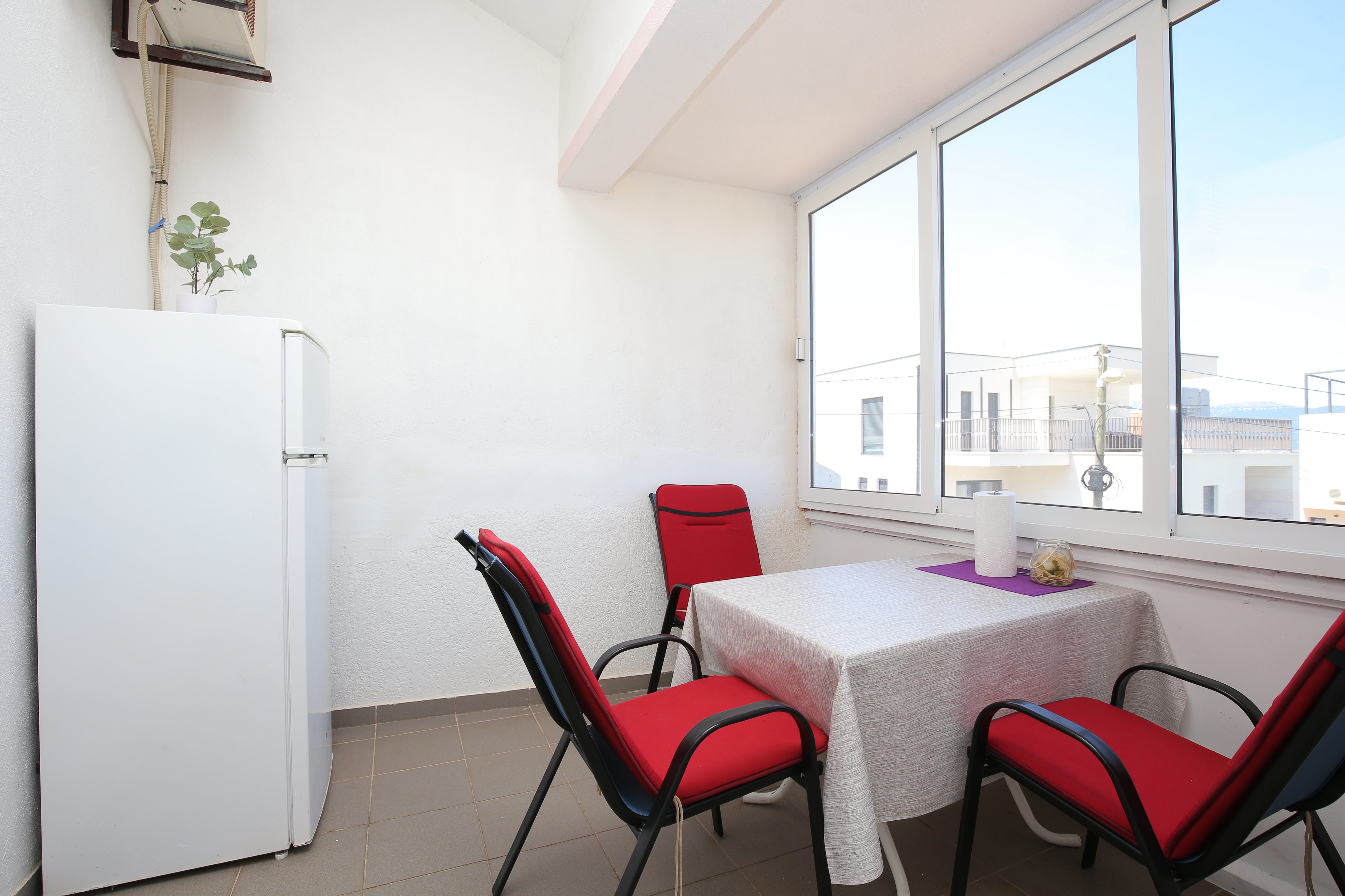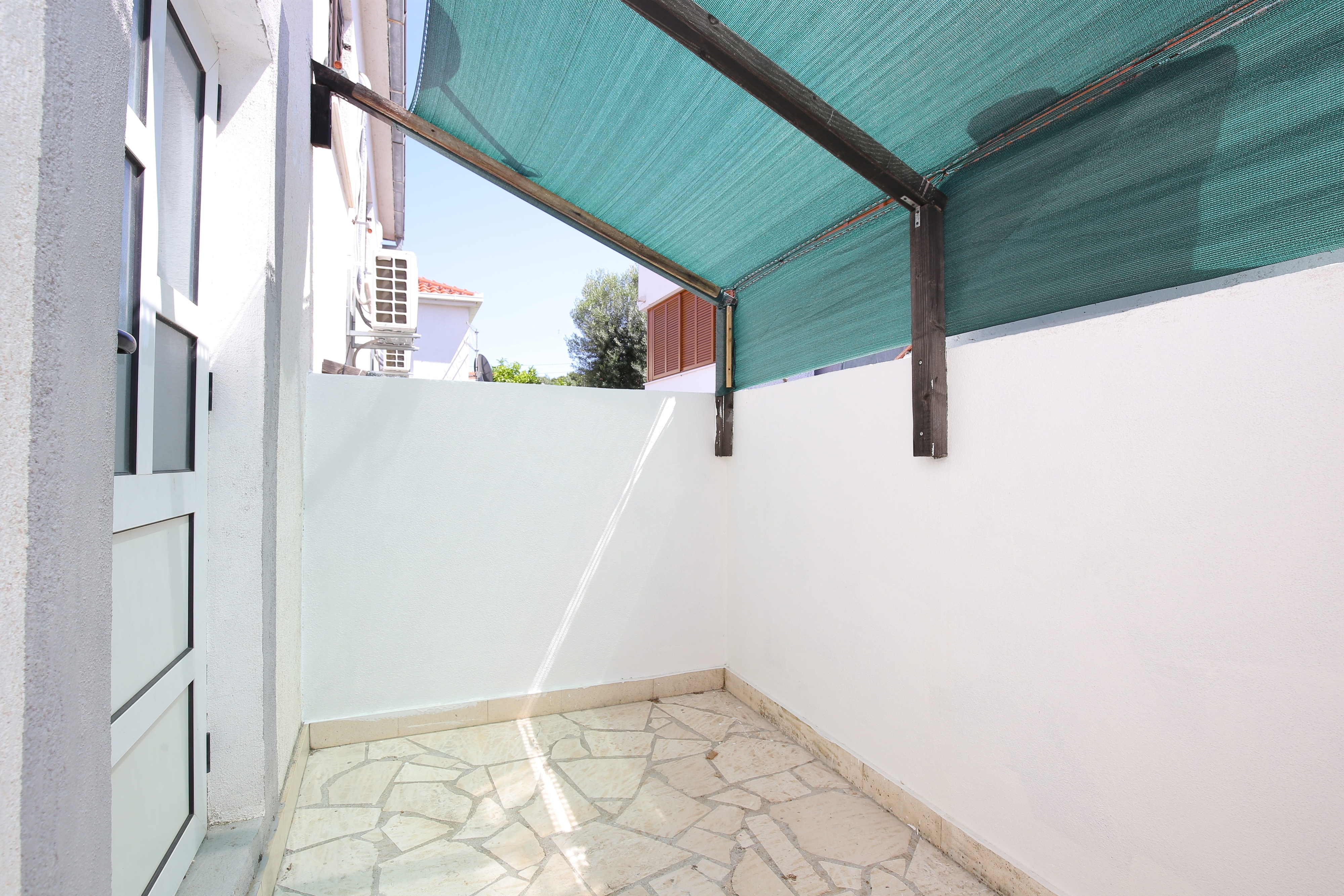 Apartament może przyjąć 3 gości. Łóżka znajdują się w sypialniach, których jest 1, na powierzchni 27m2. Goście mają dostęp do tarasu, by korzystać z ciepłych, letnich wieczorów. Z apartamentu roztacza się widok na morze. Możliwość przygotowywania posiłków poprzez korzystanie ze wspólnego grilla. W kwaterze dozwolony jest pobyt zwierzęcia domowego, za dopłatą. WLICZONE W CENĘ: taksa pobytowa, sprzątanie końcowe, klimatyzacja, parking, internet, pranie bielizny, łóżeczko dziecięce, żelazko, deska do prasowania, suszarka do włosów. NIEOBOWIĄZKOWE KOSZTY DODATKOWE: zwierzęta domowe (5,00 € za nocleg). Dostępność dodatkowych usług w rezerwowanym terminie oraz ich cenę (jeśli nie jest podana) należy sprawdzić wcześniej. Za dodatowe usługi, które nie zostały uwzględnione w kalkulacji ceny, płaci się bezpośrednio właścicielowi obiektu, pod warunkiem śe gość korzysta z tych usług.