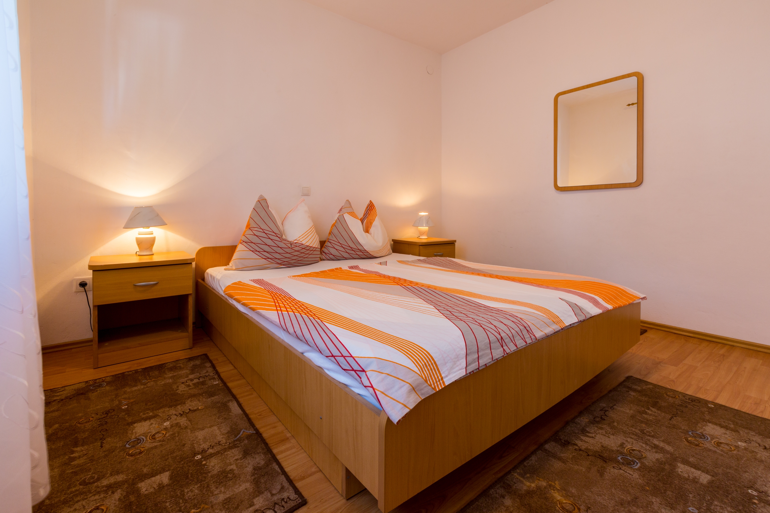 Apartament może przyjąć 2 gości. Łóżka znajdują się w sypialniach, których jest 1, na powierzchni 46m2. Goście mają dostęp do tarasu, by korzystać z ciepłych, letnich wieczorów. Z apartamentu roztacza się widok na morze. Możliwość przygotowywania posiłków poprzez korzystanie ze wspólnego grilla. W trakcie swojego pobytu goście mogą korzystać ze wspólnego basenu. WLICZONE W CENĘ: taksa pobytowa, sprzątanie końcowe, basen, parking, internet, łóżeczko dziecięce. OBOWIĄZKOWE KOSZTY DODATKOWE: dopłata za krótki termin (procent dopłaty w zalezności od liczby noclegów: 30% - 1, 20% - 2, 10% - 3). NIEOBOWIĄZKOWE KOSZTY DODATKOWE: klimatyzacja (7,00 € za nocleg). Dostępność dodatkowych usług w rezerwowanym terminie oraz ich cenę (jeśli nie jest podana) należy sprawdzić wcześniej. Za dodatowe usługi, które nie zostały uwzględnione w kalkulacji ceny, płaci się bezpośrednio właścicielowi obiektu, pod warunkiem śe gość korzysta z tych usług.