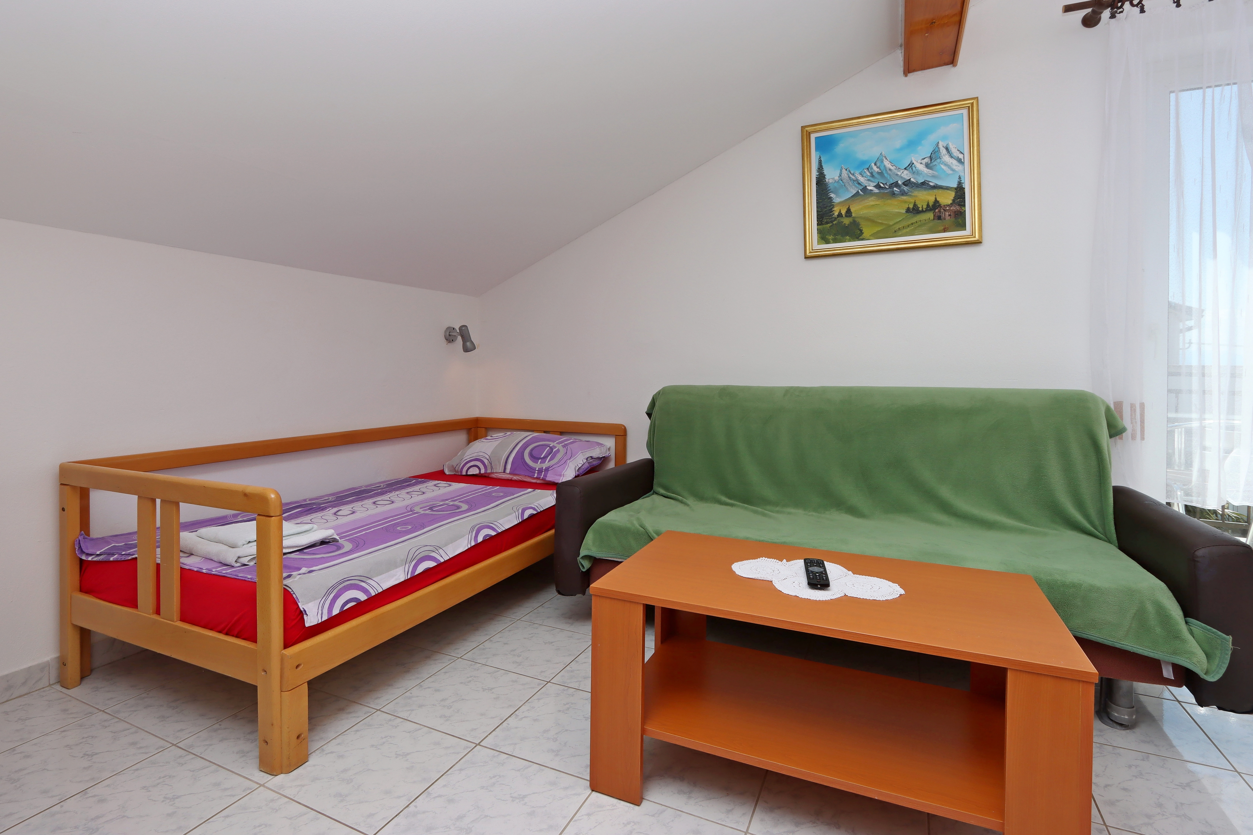 Apartament może przyjąć 4 gości. Łóżka znajdują się w sypialniach, których jest 1, oraz w pokoju dziennym, na powierzchni 38m2. Goście mają dostęp do balkonu, by korzystać z ciepłych, letnich wieczorów. Z apartamentu roztacza się widok na morze. Możliwość przygotowywania posiłków poprzez korzystanie ze wspólnego grilla. W kwaterze dozwolony jest pobyt zwierzęcia domowego, za dopłatą. WLICZONE W CENĘ: taksa pobytowa, sprzątanie końcowe, parking, internet, suszarka do włosów. OBOWIĄZKOWE KOSZTY DODATKOWE: dopłata za krótki termin (procent dopłaty w zalezności od liczby noclegów: 30% - 1, 20% - 2, 10% - 3). NIEOBOWIĄZKOWE KOSZTY DODATKOWE: klimatyzacja (8,00 € za nocleg), pranie bielizny (5,00 € pranie), zwierzęta domowe (10,00 € za nocleg). Dostępność dodatkowych usług w rezerwowanym terminie oraz ich cenę (jeśli nie jest podana) należy sprawdzić wcześniej. Za dodatowe usługi, które nie zostały uwzględnione w kalkulacji ceny, płaci się bezpośrednio właścicielowi obiektu, pod warunkiem śe gość korzysta z tych usług.