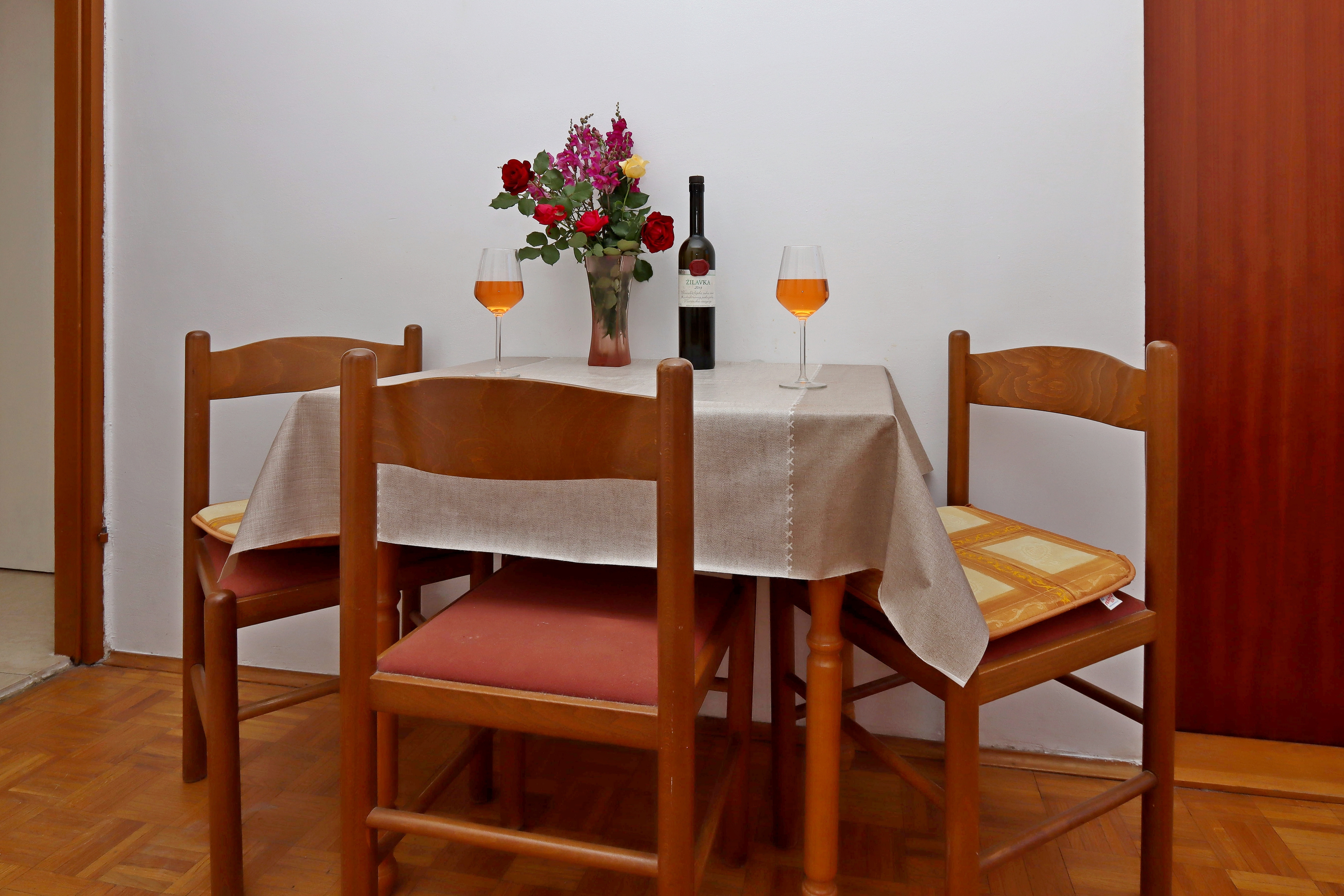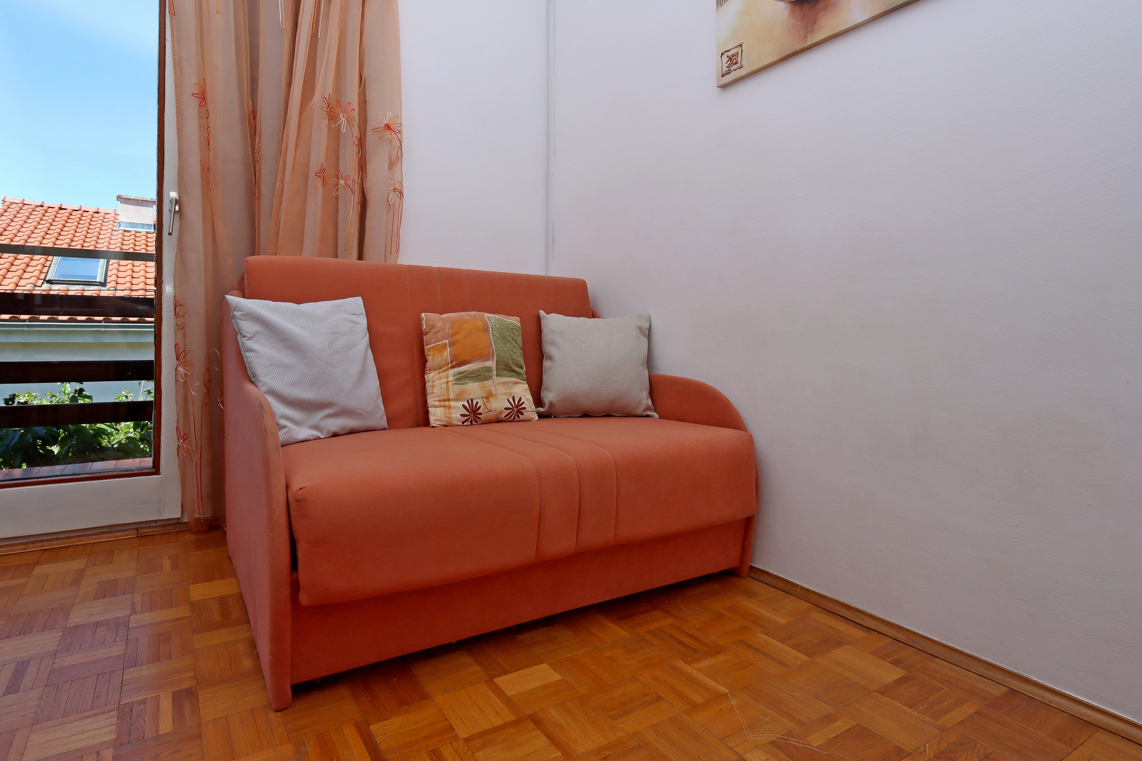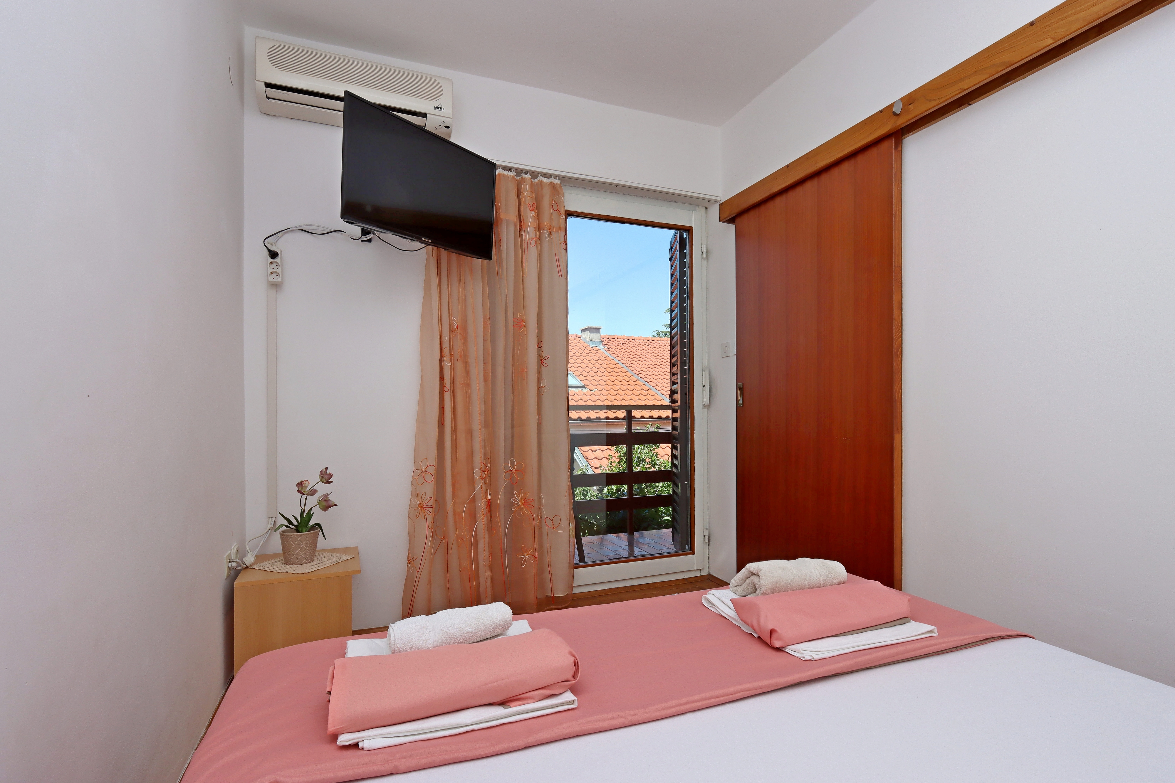 Apartament może przyjąć 4 gości. Łóżka znajdują się w sypialniach, których jest 1, oraz w pokoju dziennym, na powierzchni 33m2. Goście mają dostęp do balkonu, by korzystać z ciepłych, letnich wieczorów. Z apartamentu roztacza się widok na morze. W kwaterze dozwolony jest pobyt zwierzęcia domowego, za dopłatą. WLICZONE W CENĘ: taksa pobytowa, sprzątanie końcowe, parking, internet, żelazko, deska do prasowania, suszarka do włosów. OBOWIĄZKOWE KOSZTY DODATKOWE: dopłata za krótki termin (procent dopłaty w zalezności od liczby noclegów: 30% - 1, 20% - 2, 10% - 3). NIEOBOWIĄZKOWE KOSZTY DODATKOWE: klimatyzacja (5,00 € za nocleg), zwierzęta domowe (10,00 € za nocleg). Dostępność dodatkowych usług w rezerwowanym terminie oraz ich cenę (jeśli nie jest podana) należy sprawdzić wcześniej. Za dodatowe usługi, które nie zostały uwzględnione w kalkulacji ceny, płaci się bezpośrednio właścicielowi obiektu, pod warunkiem śe gość korzysta z tych usług.