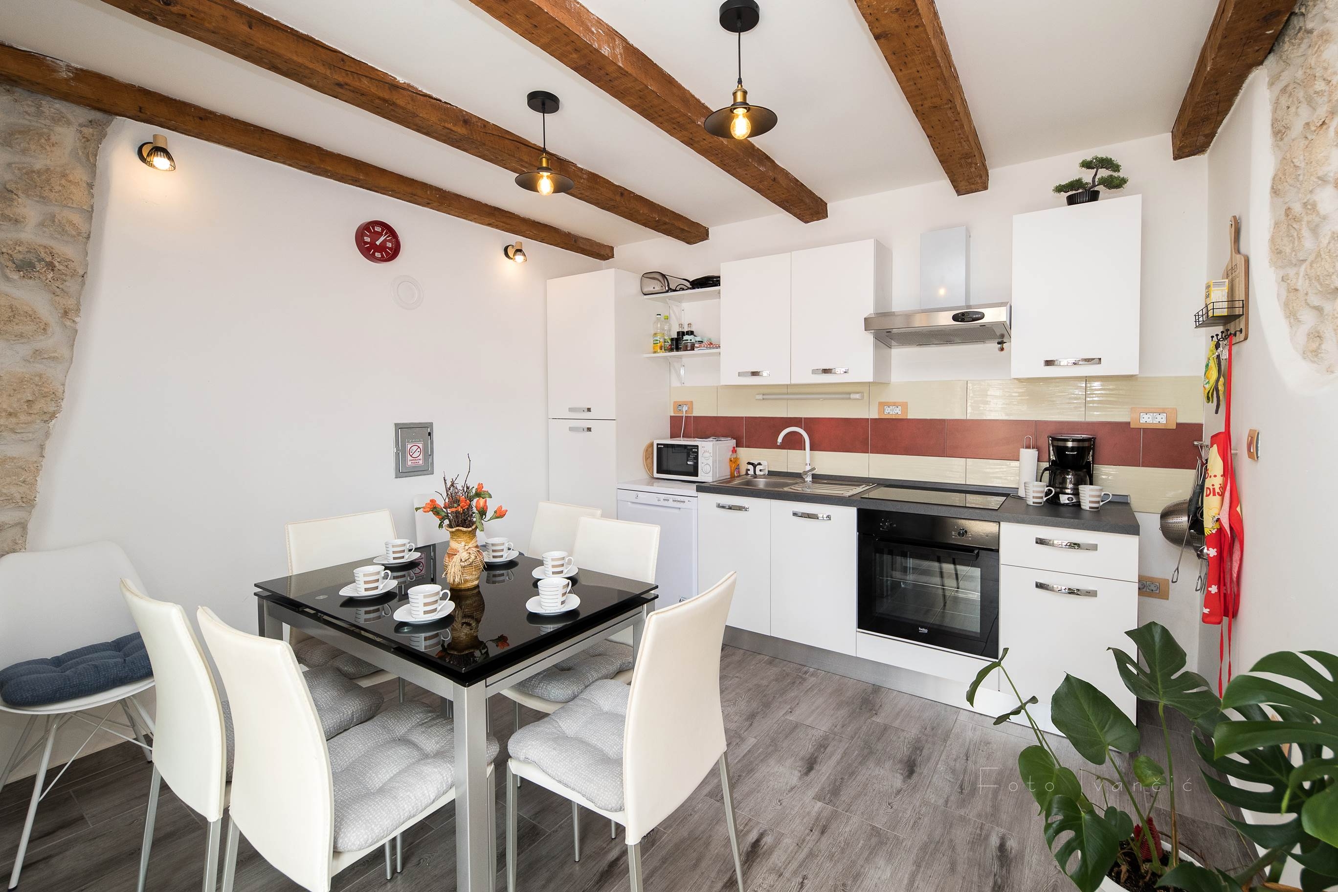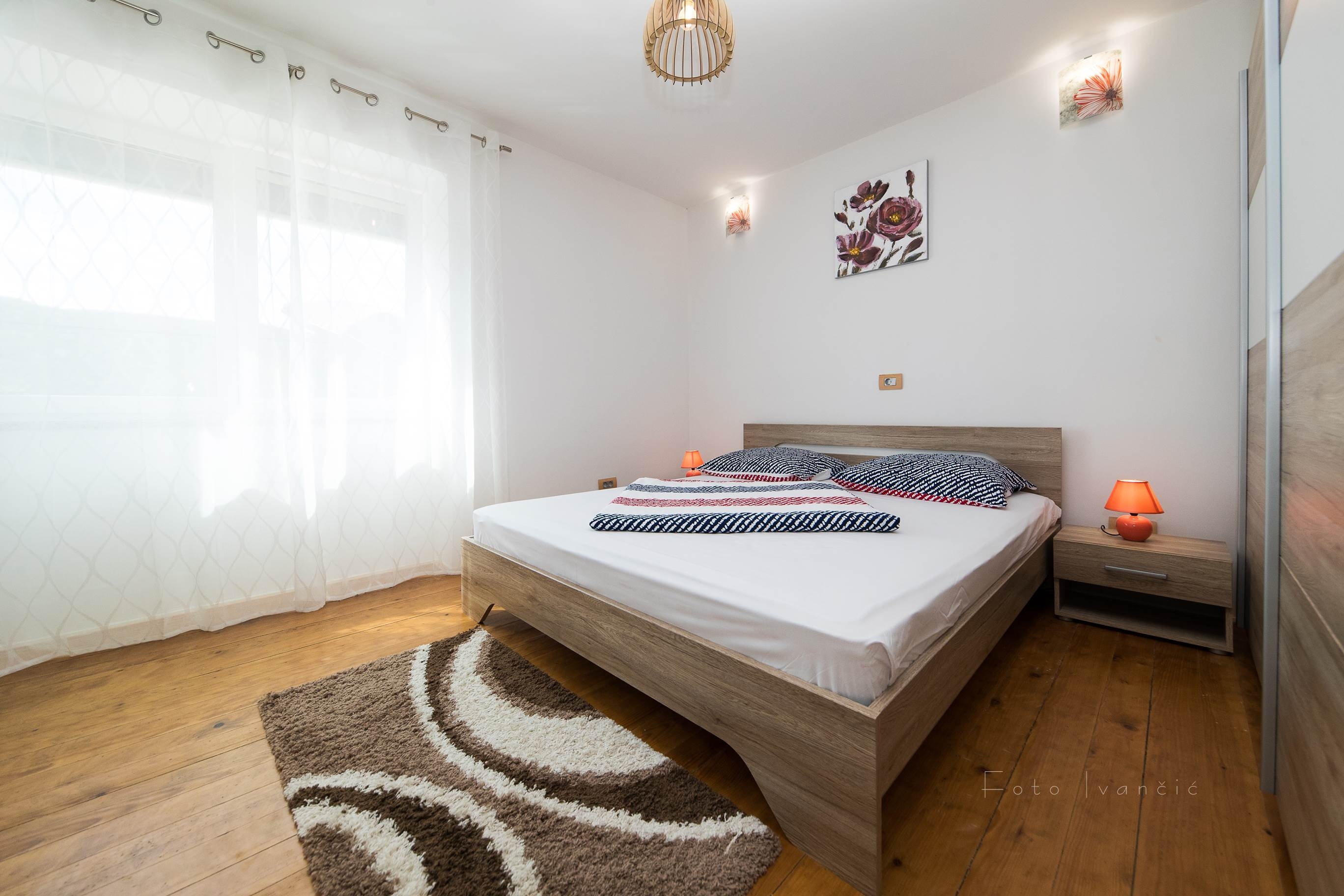 Dom może przyjąć 6 gości. Łóżka znajdują się w sypialniach, których jest 3, na powierzchni 105m2. Goście mają dostęp do tarasu, by korzystać z ciepłych, letnich wieczorów. Grill jest dostępny tylko do użytku gości z tej kwatery. W trakcie swojego pobytu goście mogą zrelakswować się w prywatnym basenie. W rezerwowanej kwaterze na miejscu jest pobierana kaucja (jej wysokość jest podana na stronie). WLICZONE W CENĘ: taksa pobytowa, sprzątanie końcowe, basen, parking, internet, łóżeczko dziecięce, żelazko, deska do prasowania, suszarka do włosów, 2 łóżka dla dzieci (zawarte w cenie). OBOWIĄZKOWE KOSZTY DODATKOWE: depozyt (200,00 € jednorazowo), dopłata za krótki termin (procent dopłaty w zalezności od liczby noclegów: 30% - 1, 20% - 2, 10% - 3). NIEOBOWIĄZKOWE KOSZTY DODATKOWE: klimatyzacja (16,00 € za nocleg). Dostępność dodatkowych usług w rezerwowanym terminie oraz ich cenę (jeśli nie jest podana) należy sprawdzić wcześniej. Za dodatowe usługi, które nie zostały uwzględnione w kalkulacji ceny, płaci się bezpośrednio właścicielowi obiektu, pod warunkiem śe gość korzysta z tych usług.