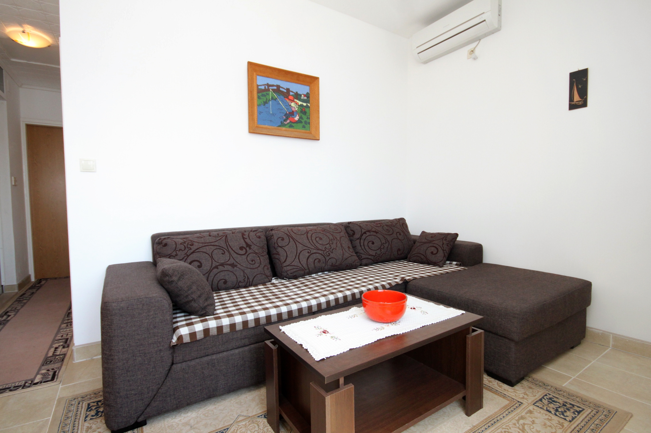 Apartament może przyjąć 4 gości. Łóżka znajdują się w sypialniach, których jest 2, na powierzchni 40m2. Goście mają dostęp do tarasu, by korzystać z ciepłych, letnich wieczorów. Z apartamentu roztacza się widok na morze. Możliwość przygotowywania posiłków poprzez korzystanie ze wspólnego grilla. WLICZONE W CENĘ: taksa pobytowa, sprzątanie końcowe, parking, internet, miejsce do cumowania łodzi, żelazko, deska do prasowania, suszarka do włosów, parasol, leżaki. OBOWIĄZKOWE KOSZTY DODATKOWE: dopłata za krótki termin (procent dopłaty w zalezności od liczby noclegów: 30% - 1, 20% - 2, 10% - 3). NIEOBOWIĄZKOWE KOSZTY DODATKOWE: śniadanie (5,00 €, 50% zniżki dla dzieci od 4 do 12 lat, Bezpłatne dla dzieci do 4 lat), śniadanie i kolacja (20,00 €, 50% zniżki dla dzieci od 4 do 12 lat, Bezpłatne dla dzieci do 4 lat), klimatyzacja (5,00 € za nocleg), pranie bielizny (5,00 € pranie). Dostępność dodatkowych usług w rezerwowanym terminie oraz ich cenę (jeśli nie jest podana) należy sprawdzić wcześniej. Za dodatowe usługi, które nie zostały uwzględnione w kalkulacji ceny, płaci się bezpośrednio właścicielowi obiektu, pod warunkiem śe gość korzysta z tych usług. Zniżki od ceny podstawowej: bezpłatny dzień 14=13 (przy pobycie, trwającym co najmniej 14 dni, otrzymujecie jeden bezpłatny dzień na pobyt do 31.12.2026).
