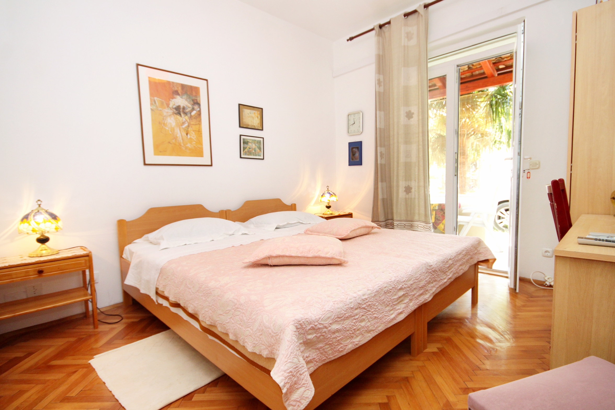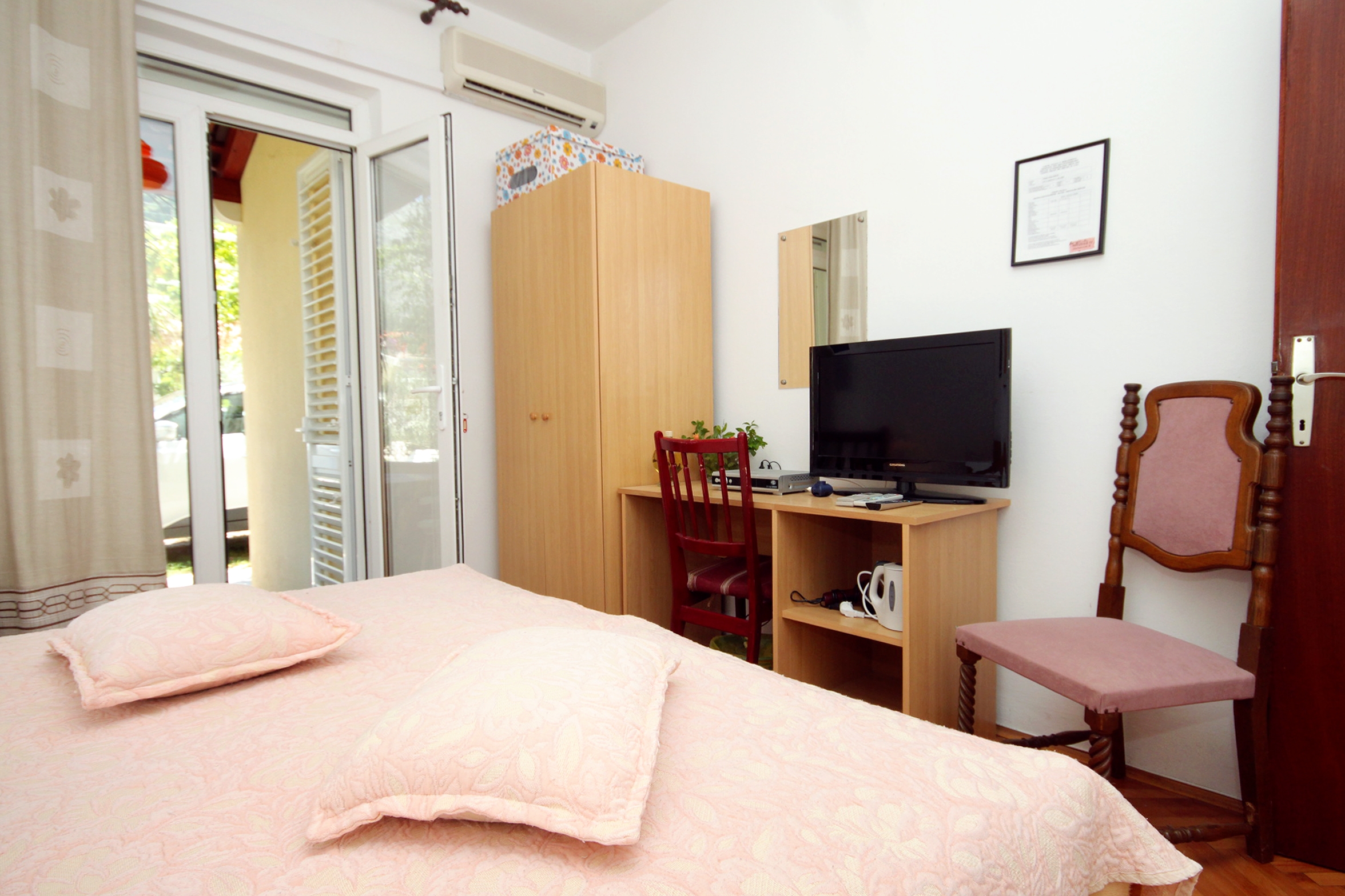Studio może przyjąć 2 gości. Łóżka znajdują się w sypialniach, których jest 1, na powierzchni 15m2. Goście mają dostęp do tarasu, by korzystać z ciepłych, letnich wieczorów. Możliwość przygotowywania posiłków poprzez korzystanie ze wspólnego grilla. W trakcie swojego pobytu goście mogą korzystać ze wspólnego basenu. W kwaterze dozwolony jest pobyt zwierzęcia domowego, za dopłatą. WLICZONE W CENĘ: taksa pobytowa, sprzątanie końcowe, klimatyzacja, basen, parking, internet, żelazko, deska do prasowania, suszarka do włosów, przenośny grill. OBOWIĄZKOWE KOSZTY DODATKOWE: dopłata za krótki termin (procent dopłaty w zalezności od liczby noclegów: 30% - 1, 20% - 2, 10% - 3). NIEOBOWIĄZKOWE KOSZTY DODATKOWE: zwierzęta domowe (10,00 € za nocleg). Dostępność dodatkowych usług w rezerwowanym terminie oraz ich cenę (jeśli nie jest podana) należy sprawdzić wcześniej. Za dodatowe usługi, które nie zostały uwzględnione w kalkulacji ceny, płaci się bezpośrednio właścicielowi obiektu, pod warunkiem śe gość korzysta z tych usług.