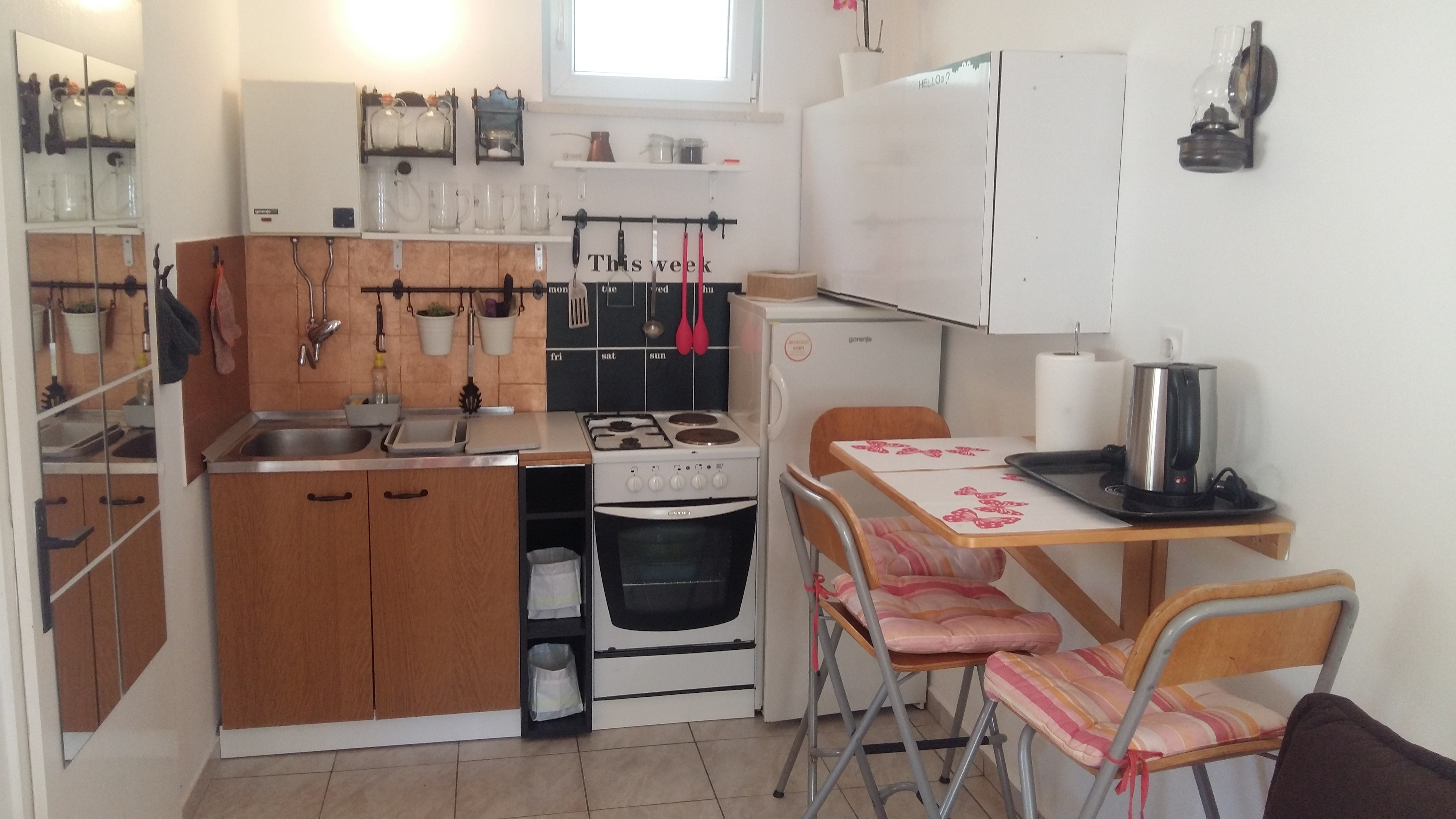 Studio może przyjąć 4 gości. Łóżka znajdują się w sypialniach, których jest 1, na powierzchni 20m2. Goście mają dostęp do tarasu, by korzystać z ciepłych, letnich wieczorów. Możliwość przygotowywania posiłków poprzez korzystanie ze wspólnego grilla. W trakcie swojego pobytu goście mogą korzystać ze wspólnego basenu. W kwaterze dozwolony jest pobyt zwierzęcia domowego, za dopłatą. WLICZONE W CENĘ: taksa pobytowa, sprzątanie końcowe, klimatyzacja, basen, parking, internet, żelazko, deska do prasowania, suszarka do włosów, przenośny grill. OBOWIĄZKOWE KOSZTY DODATKOWE: dopłata za krótki termin (procent dopłaty w zalezności od liczby noclegów: 30% - 1, 20% - 2, 10% - 3). NIEOBOWIĄZKOWE KOSZTY DODATKOWE: zwierzęta domowe (10,00 € za nocleg). Dostępność dodatkowych usług w rezerwowanym terminie oraz ich cenę (jeśli nie jest podana) należy sprawdzić wcześniej. Za dodatowe usługi, które nie zostały uwzględnione w kalkulacji ceny, płaci się bezpośrednio właścicielowi obiektu, pod warunkiem śe gość korzysta z tych usług.