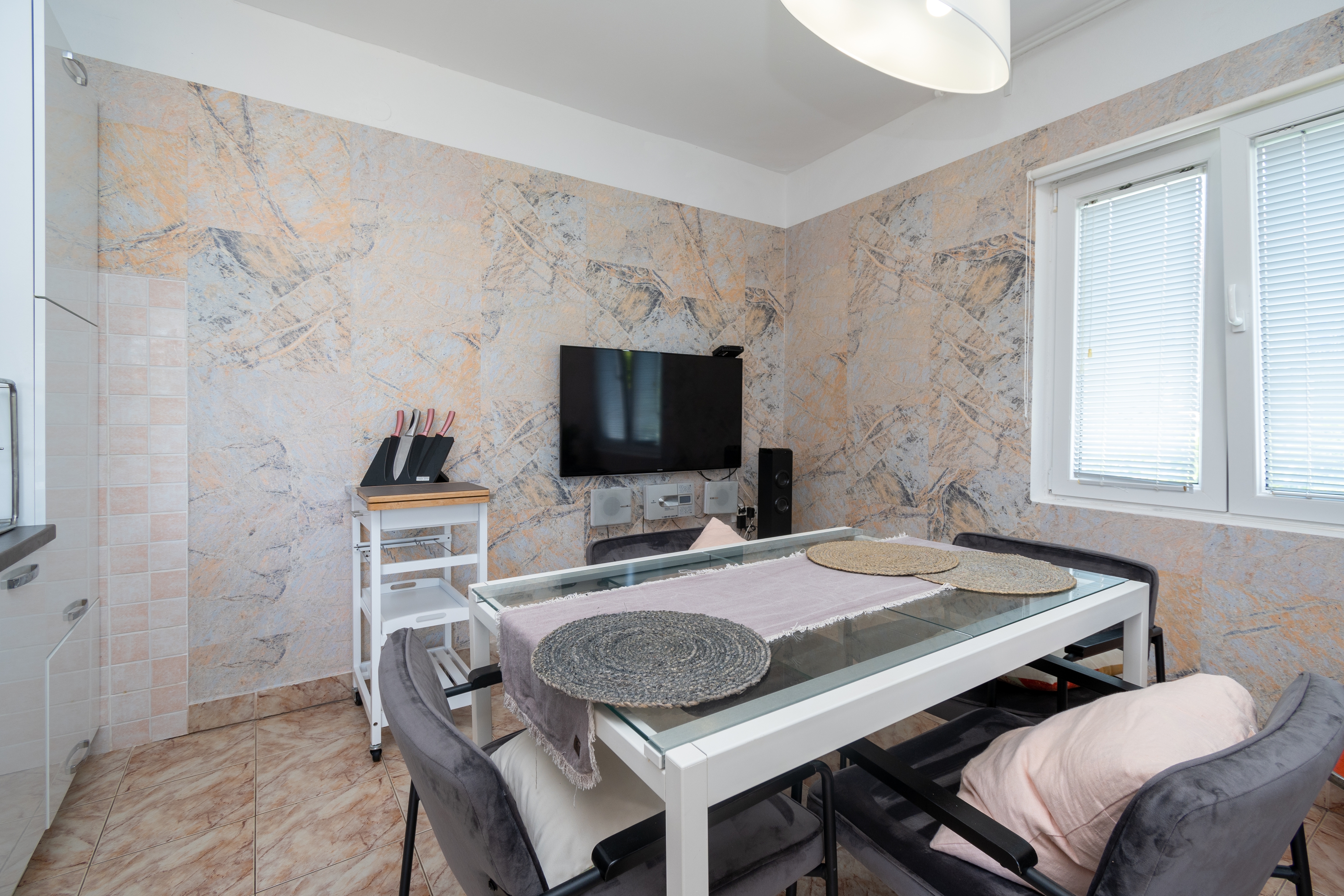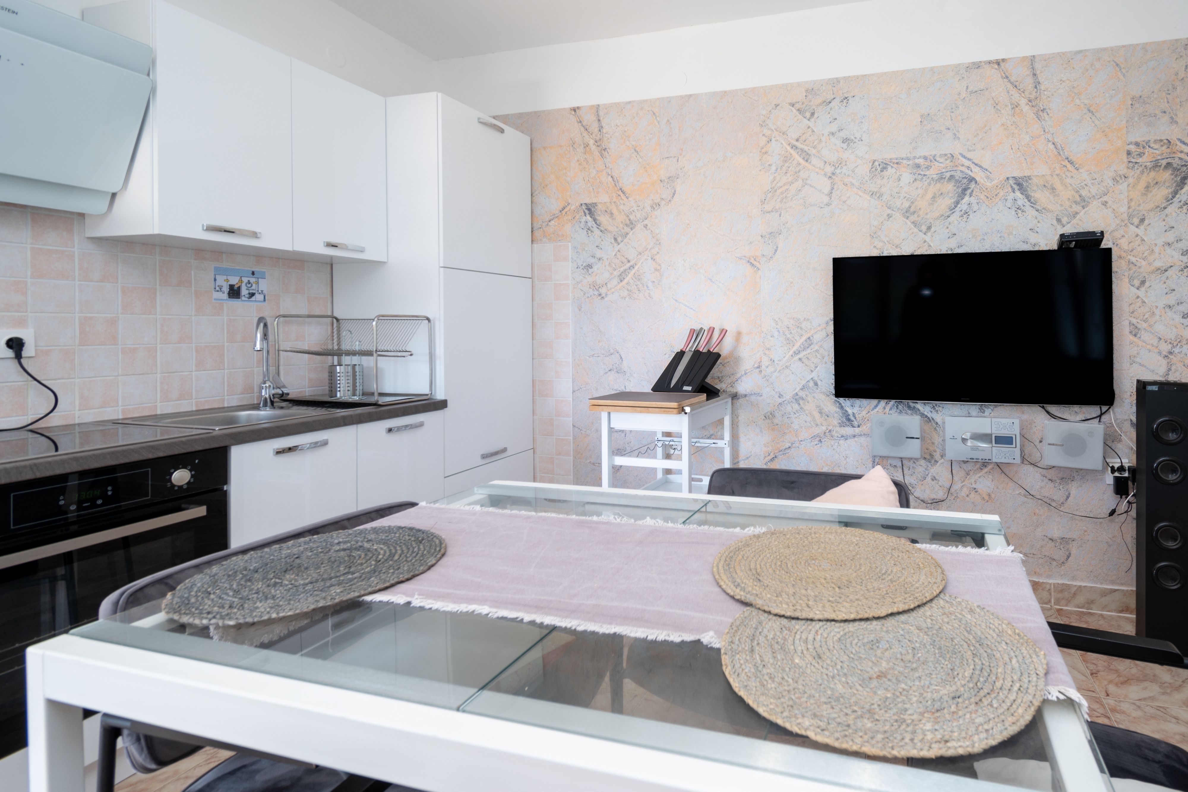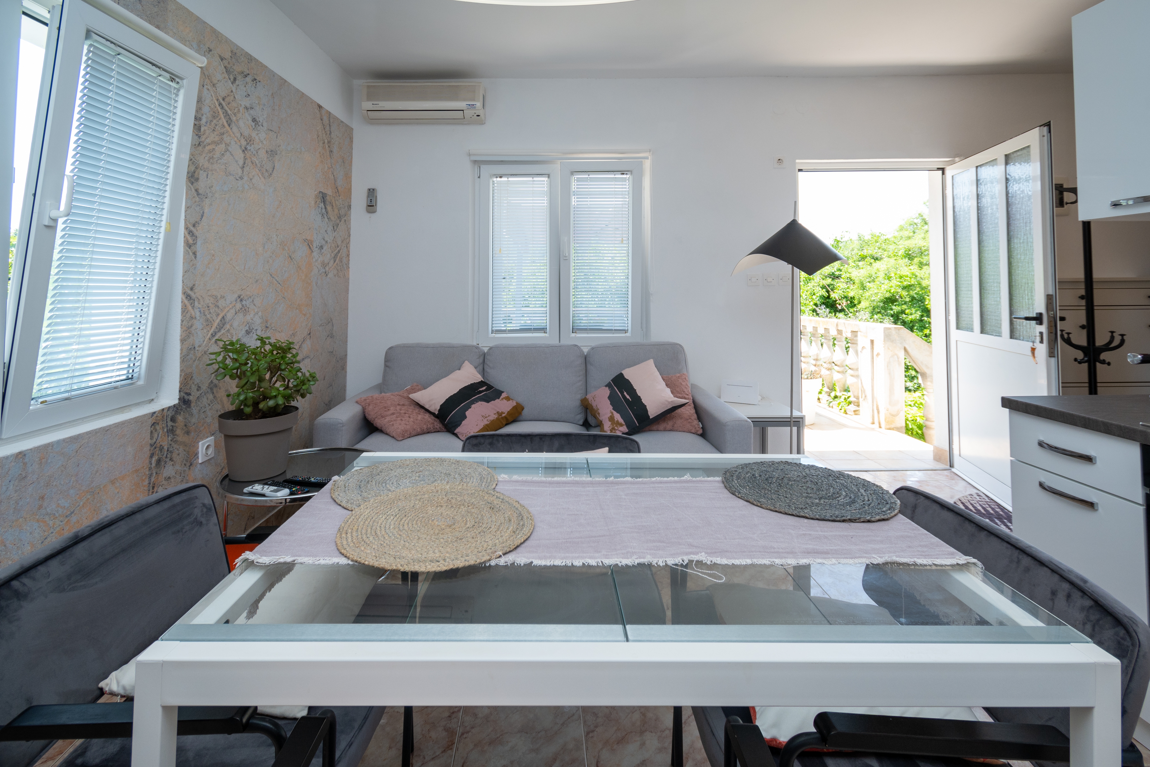 Apartament może przyjąć 3 gości. Łóżka znajdują się w sypialniach, których jest 1, oraz w jadalni, na powierzchni 35m2. Goście mają dostęp do tarasu, by korzystać z ciepłych, letnich wieczorów. Możliwość przygotowywania posiłków poprzez korzystanie ze wspólnego grilla. WLICZONE W CENĘ: taksa pobytowa, sprzątanie końcowe, klimatyzacja, internet, pranie bielizny, żelazko, deska do prasowania, suszarka do włosów, parasol. OBOWIĄZKOWE KOSZTY DODATKOWE: dopłata za krótki termin (procent dopłaty w zalezności od liczby noclegów: 30% - 1, 20% - 2, 10% - 3). Dostępność dodatkowych usług w rezerwowanym terminie oraz ich cenę (jeśli nie jest podana) należy sprawdzić wcześniej. Za dodatowe usługi, które nie zostały uwzględnione w kalkulacji ceny, płaci się bezpośrednio właścicielowi obiektu, pod warunkiem śe gość korzysta z tych usług. Zniżki od ceny podstawowej: bezpłatny dzień 14=13 (przy pobycie, trwającym co najmniej 14 dni, otrzymujecie jeden bezpłatny dzień na pobyt do 31.12.2026).