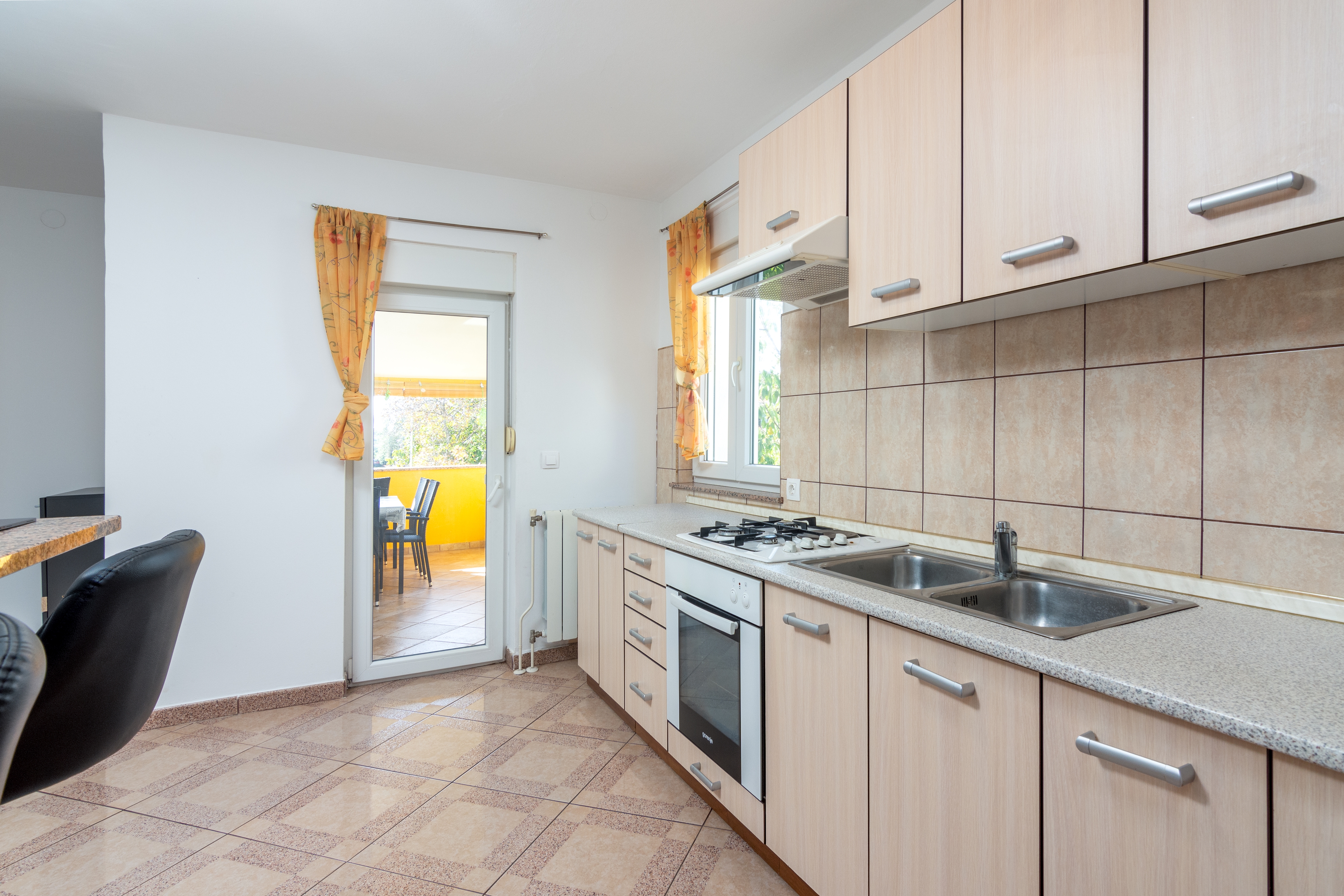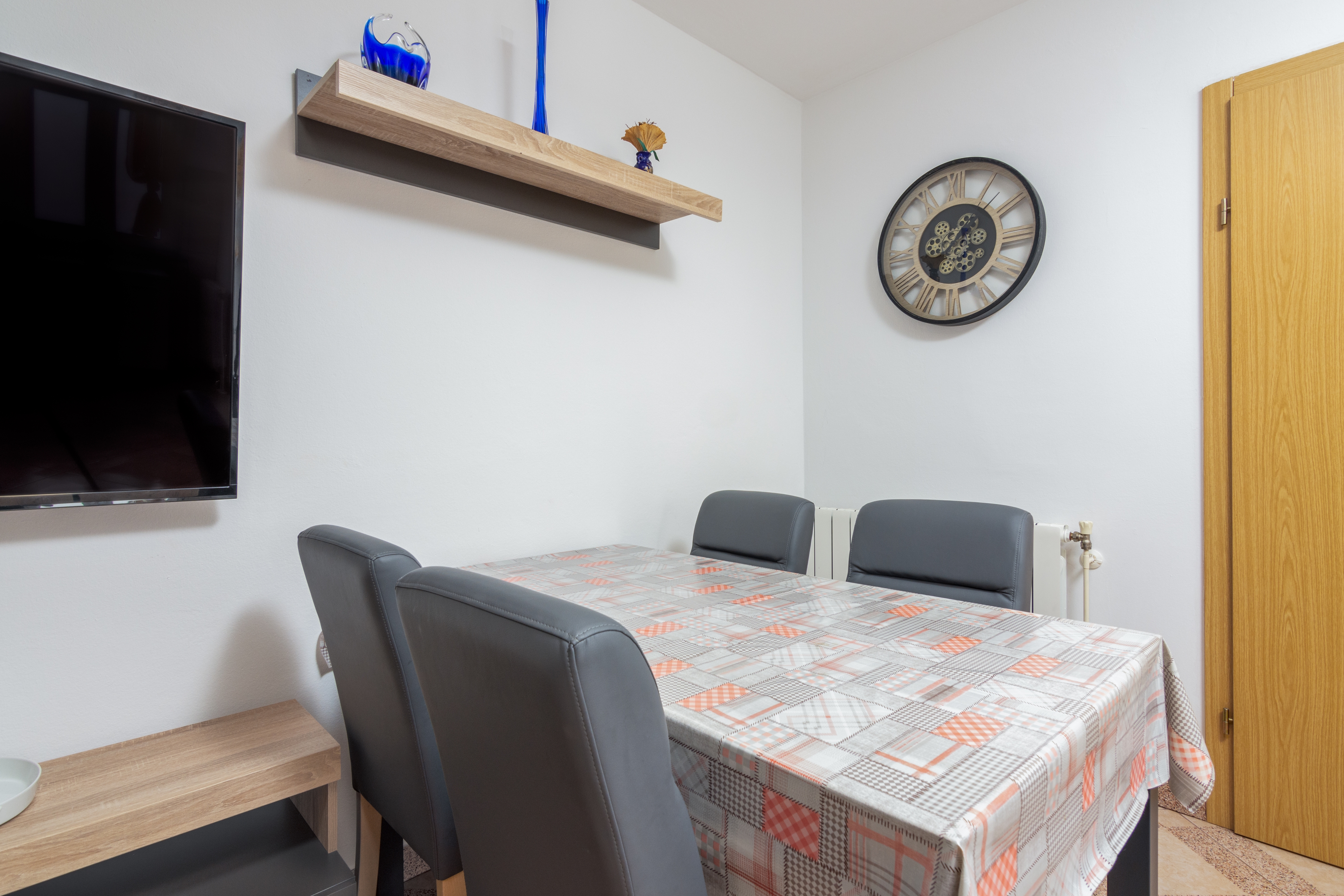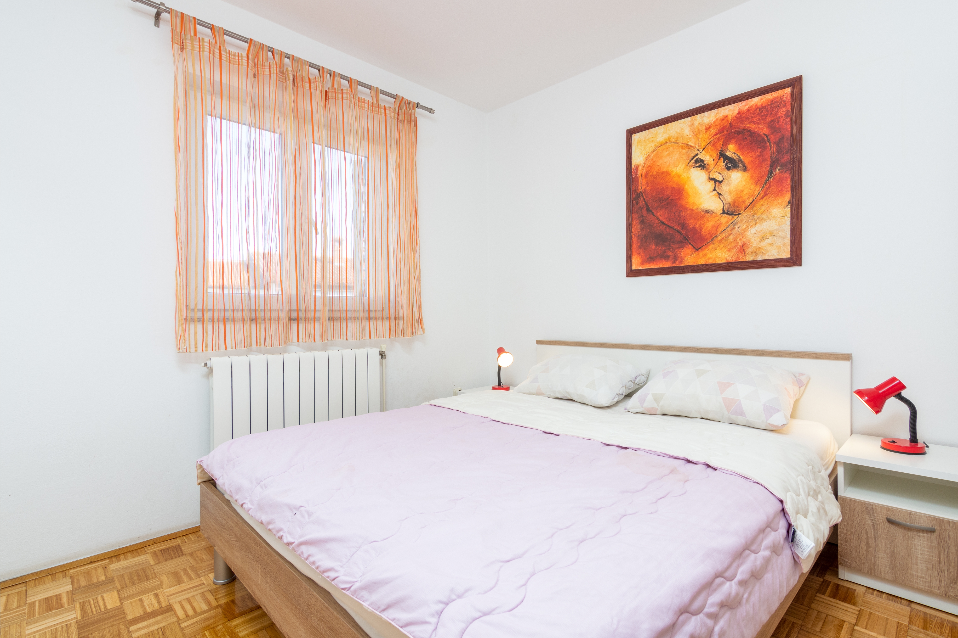 Apartament może przyjąć 6 gości. Łóżka znajdują się w sypialniach, których jest 3, oraz w pokoju dziennym, na powierzchni 68m2. Goście mają dostęp do tarasu, by korzystać z ciepłych, letnich wieczorów. Możliwość przygotowywania posiłków poprzez korzystanie ze wspólnego grilla. W kwaterze dozwolony jest pobyt zwierzęcia domowego, za dopłatą. WLICZONE W CENĘ: taksa pobytowa, sprzątanie końcowe, klimatyzacja, centralne ogrzewanie, parking, internet, żelazko, deska do prasowania, suszarka do włosów. OBOWIĄZKOWE KOSZTY DODATKOWE: dopłata za krótki termin (procent dopłaty w zalezności od liczby noclegów: 30% - 1, 20% - 2, 10% - 3). NIEOBOWIĄZKOWE KOSZTY DODATKOWE: zwierzęta domowe (5,00 € za nocleg). Dostępność dodatkowych usług w rezerwowanym terminie oraz ich cenę (jeśli nie jest podana) należy sprawdzić wcześniej. Za dodatowe usługi, które nie zostały uwzględnione w kalkulacji ceny, płaci się bezpośrednio właścicielowi obiektu, pod warunkiem śe gość korzysta z tych usług.