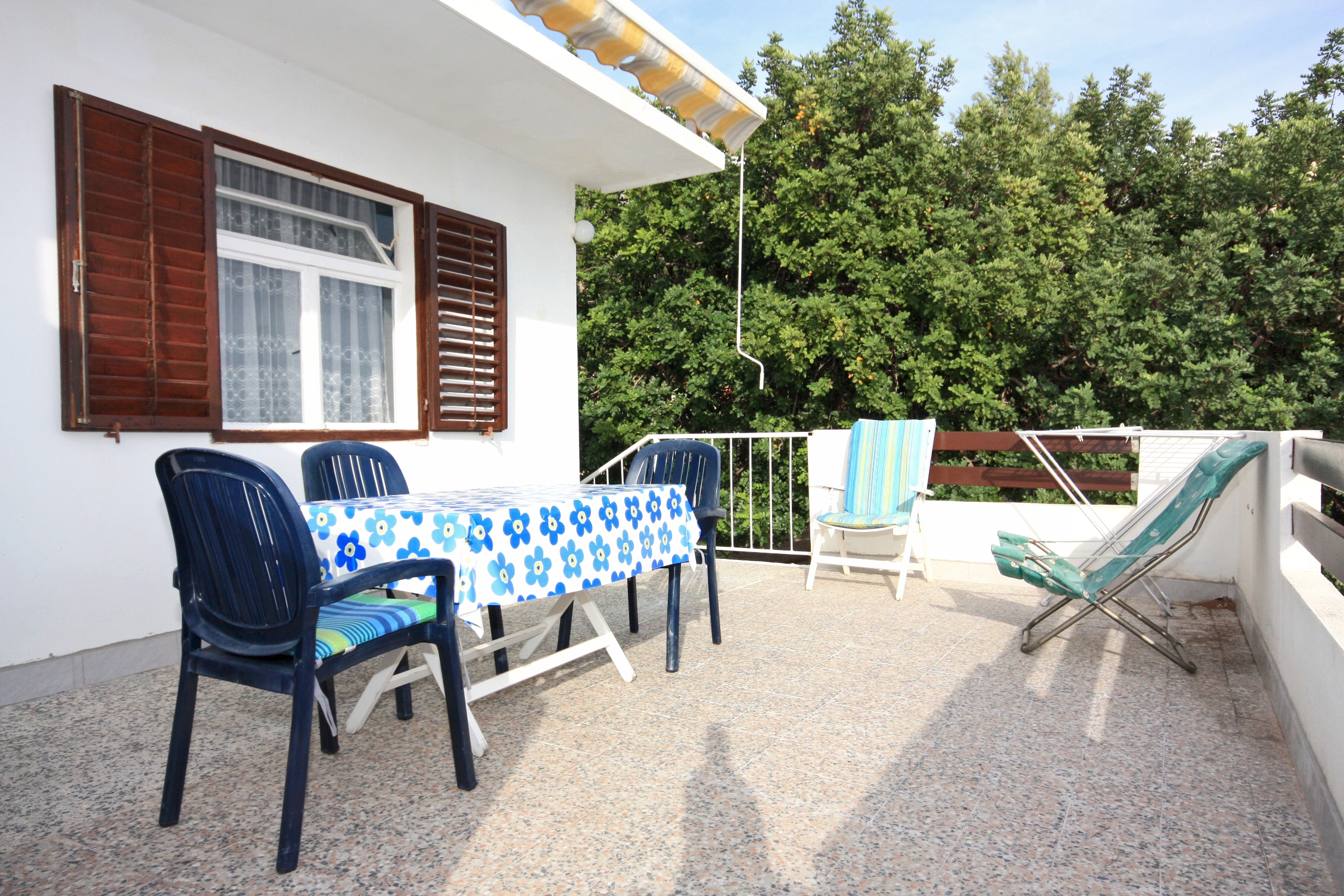 Studio może przyjąć 3 gości. Łóżka znajdują się w sypialniach, których jest 1, na powierzchni 20m2. Goście mają dostęp do tarasu, by korzystać z ciepłych, letnich wieczorów. Z apartamentu typu studio roztacza się widok na morze. Możliwość przygotowywania posiłków poprzez korzystanie ze wspólnego grilla. W kwaterze dozwolony jest pobyt zwierzęcia domowego, za dopłatą. Przez taras rezerwowanej kwatery przechodzą także inni goście lub gospodarze. WLICZONE W CENĘ: taksa pobytowa, sprzątanie końcowe, parking, internet, łóżeczko dziecięce. OBOWIĄZKOWE KOSZTY DODATKOWE: dopłata za krótki termin (procent dopłaty w zalezności od liczby noclegów: 30% - 1, 20% - 2, 10% - 3). NIEOBOWIĄZKOWE KOSZTY DODATKOWE: klimatyzacja (5,00 € za nocleg), pranie bielizny (5,00 € pranie), zwierzęta domowe (5,00 € za nocleg). Dostępność dodatkowych usług w rezerwowanym terminie oraz ich cenę (jeśli nie jest podana) należy sprawdzić wcześniej. Za dodatowe usługi, które nie zostały uwzględnione w kalkulacji ceny, płaci się bezpośrednio właścicielowi obiektu, pod warunkiem śe gość korzysta z tych usług. Zniżki od ceny podstawowej: bezpłatny dzień 14=13 (przy pobycie, trwającym co najmniej 14 dni, otrzymujecie jeden bezpłatny dzień na pobyt do 31.12.2026).