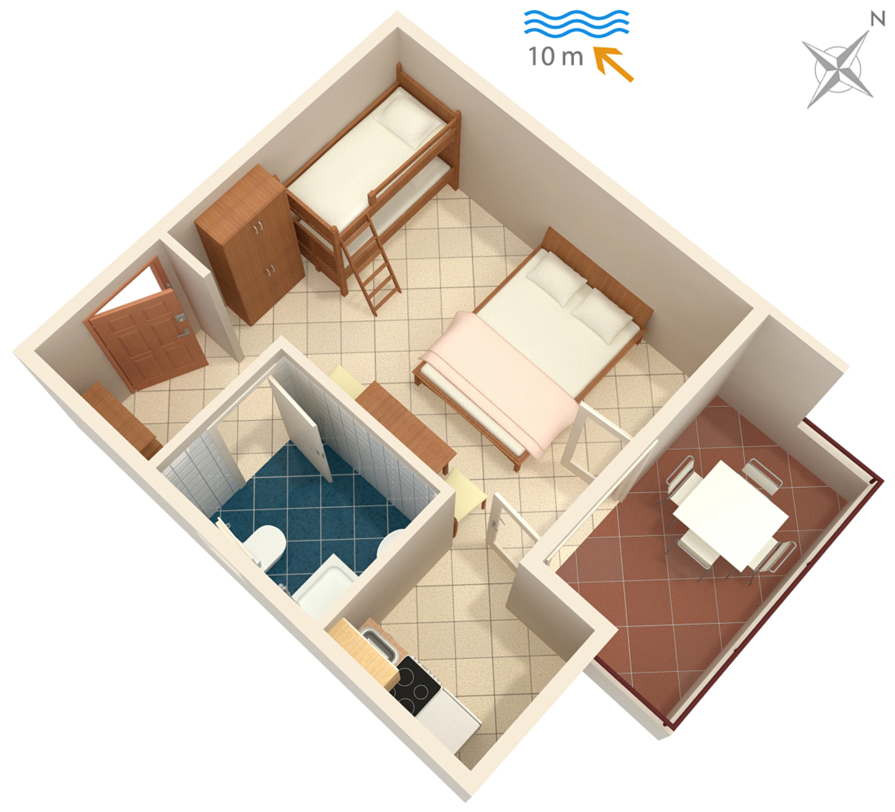 Studio może przyjąć 4 gości. Łóżka znajdują się w sypialniach, których jest 1, na powierzchni 22m2. Goście mają dostęp do tarasu, by korzystać z ciepłych, letnich wieczorów. Z apartamentu typu studio roztacza się widok na morze. Możliwość przygotowywania posiłków poprzez korzystanie ze wspólnego grilla. W kwaterze dozwolony jest pobyt zwierzęcia domowego, za dopłatą. WLICZONE W CENĘ: taksa pobytowa, sprzątanie końcowe, klimatyzacja, parking, internet, miejsce do cumowania łodzi, łóżeczko dziecięce. NIEOBOWIĄZKOWE KOSZTY DODATKOWE: łódź (115,00 € za nocleg), zwierzęta domowe (13,00 € za nocleg). Dostępność dodatkowych usług w rezerwowanym terminie oraz ich cenę (jeśli nie jest podana) należy sprawdzić wcześniej. Za dodatowe usługi, które nie zostały uwzględnione w kalkulacji ceny, płaci się bezpośrednio właścicielowi obiektu, pod warunkiem śe gość korzysta z tych usług.