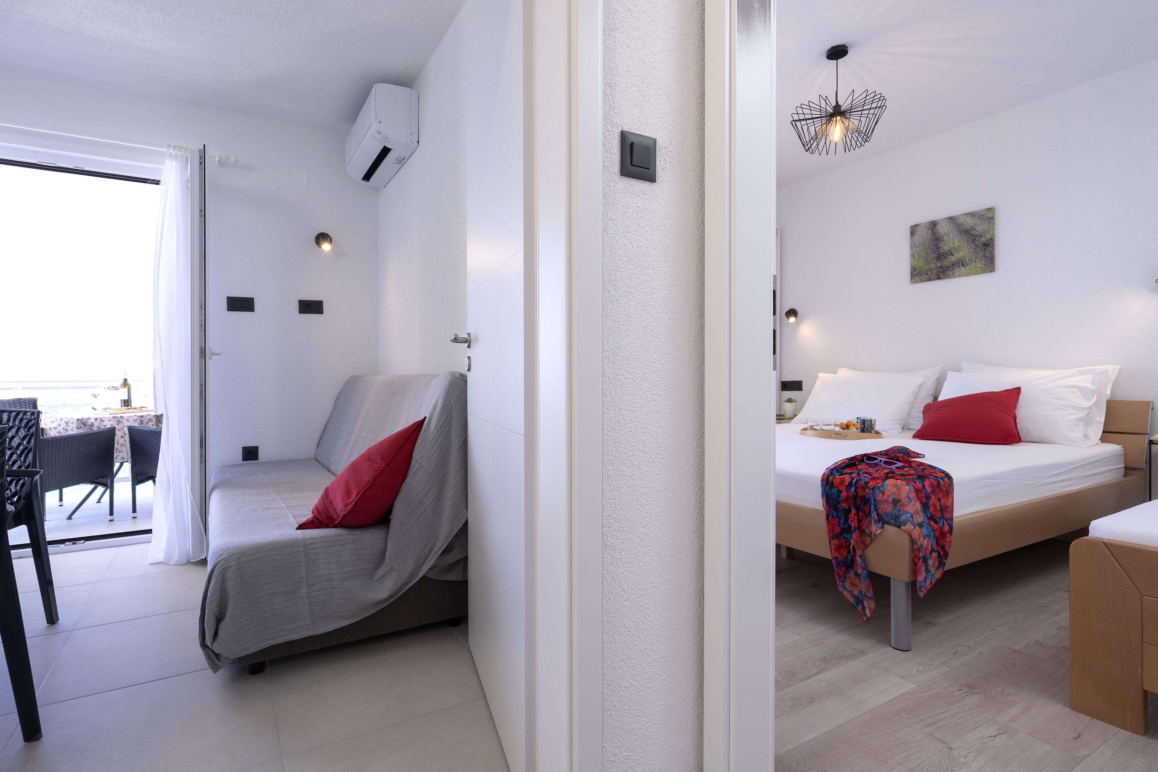 Dom może przyjąć 8 gości. Łóżka znajdują się w sypialniach, których jest 2, oraz w jadalni, na powierzchni 62m2. Goście mają dostęp do tarasu, by korzystać z ciepłych, letnich wieczorów. Z domu wakacyjnego roztacza się widok na morze. Grill jest dostępny tylko do użytku gości z tej kwatery. Pomieszczenia rezerwowanej kwatery nie są połączone w jedną całość. WLICZONE W CENĘ: taksa pobytowa, sprzątanie końcowe, klimatyzacja, parking, internet, łódź, miejsce do cumowania łodzi, łóżeczko dziecięce, suszarka do włosów, leżaki. Dostępność dodatkowych usług w rezerwowanym terminie oraz ich cenę (jeśli nie jest podana) należy sprawdzić wcześniej. Za dodatowe usługi, które nie zostały uwzględnione w kalkulacji ceny, płaci się bezpośrednio właścicielowi obiektu, pod warunkiem śe gość korzysta z tych usług.