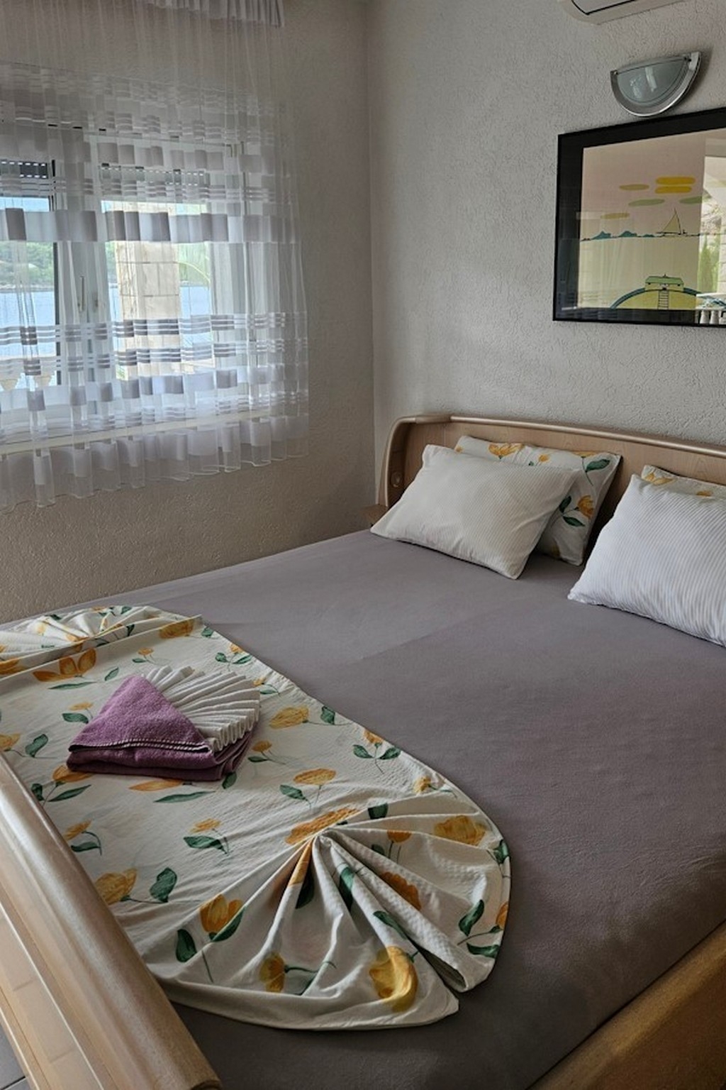 Apartament może przyjąć 4 gości. Łóżka znajdują się w sypialniach, których jest 2, na powierzchni 38m2. Goście mają dostęp do tarasu, by korzystać z ciepłych, letnich wieczorów. Z apartamentu roztacza się widok na morze. Możliwość przygotowywania posiłków poprzez korzystanie ze wspólnego grilla. W trakcie swojego pobytu goście mogą korzystać ze wspólnego basenu. Do kwatery można przyjechać ze zwierzęciem domowym, a usługa jest wliczona w cenę wynajęcia kwatery. WLICZONE W CENĘ: taksa pobytowa, sprzątanie końcowe, klimatyzacja, basen, parking, internet, pranie bielizny, zwierzęta domowe, leżaki. Dostępność dodatkowych usług w rezerwowanym terminie oraz ich cenę (jeśli nie jest podana) należy sprawdzić wcześniej. Za dodatowe usługi, które nie zostały uwzględnione w kalkulacji ceny, płaci się bezpośrednio właścicielowi obiektu, pod warunkiem śe gość korzysta z tych usług. Zniżki od ceny podstawowej: bezpłatny dzień 14=13 (przy pobycie, trwającym co najmniej 14 dni, otrzymujecie jeden bezpłatny dzień na pobyt do 31.12.2026).
