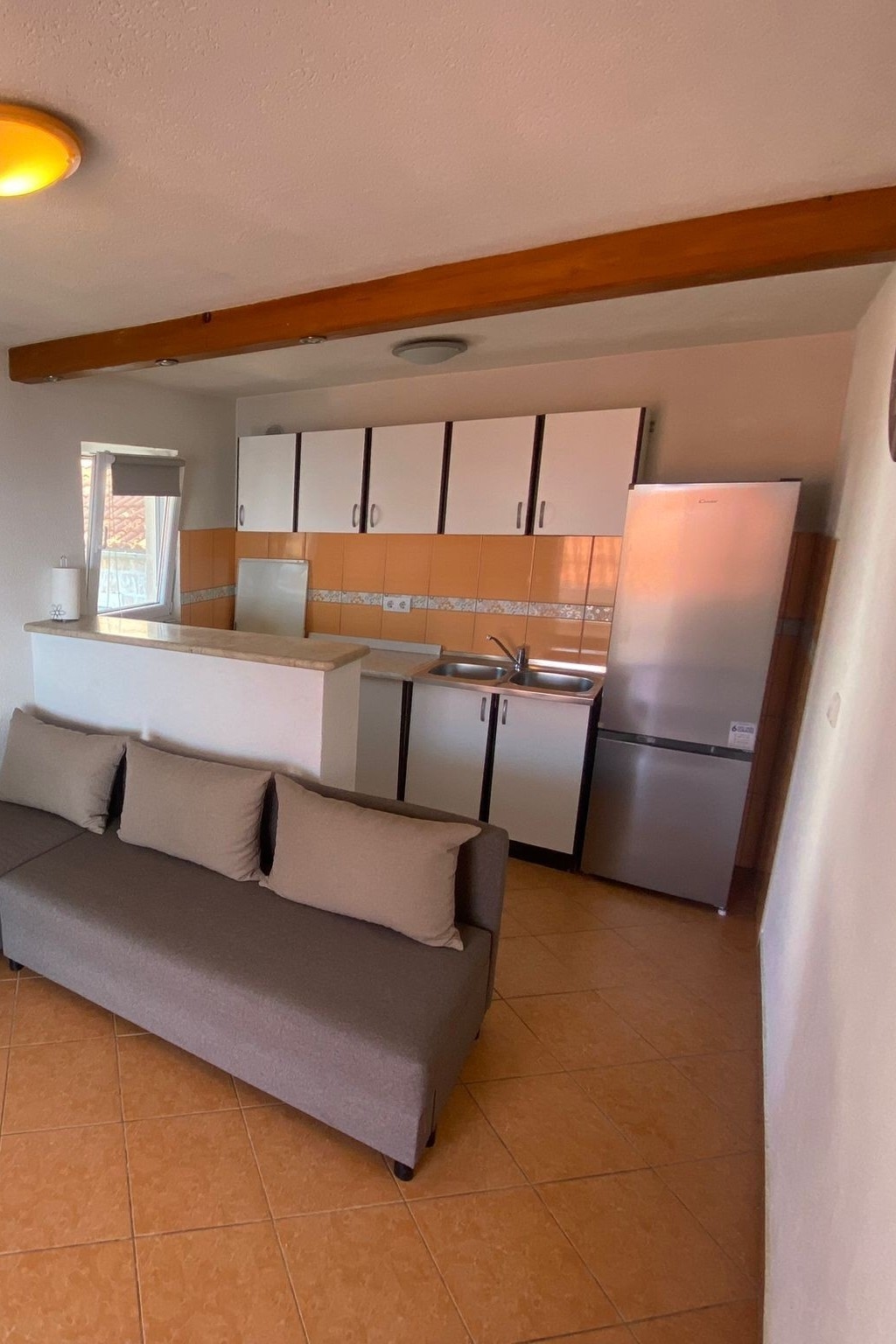 Apartament może przyjąć 4 gości. Łóżka znajdują się w sypialniach, których jest 1, oraz w pokoju dziennym, na powierzchni 23m2. Goście mają dostęp do tarasu, by korzystać z ciepłych, letnich wieczorów. Z apartamentu roztacza się widok na morze. Grill jest dostępny tylko do użytku gości z tej kwatery. WLICZONE W CENĘ: taksa pobytowa, sprzątanie końcowe, parking, internet, miejsce do cumowania łodzi. OBOWIĄZKOWE KOSZTY DODATKOWE: dopłata za krótki termin (procent dopłaty w zalezności od liczby noclegów: 30% - 1, 20% - 2, 10% - 3). NIEOBOWIĄZKOWE KOSZTY DODATKOWE: dostawka (5,00 € za nocleg). Dostępność dodatkowych usług w rezerwowanym terminie oraz ich cenę (jeśli nie jest podana) należy sprawdzić wcześniej. Za dodatowe usługi, które nie zostały uwzględnione w kalkulacji ceny, płaci się bezpośrednio właścicielowi obiektu, pod warunkiem śe gość korzysta z tych usług.