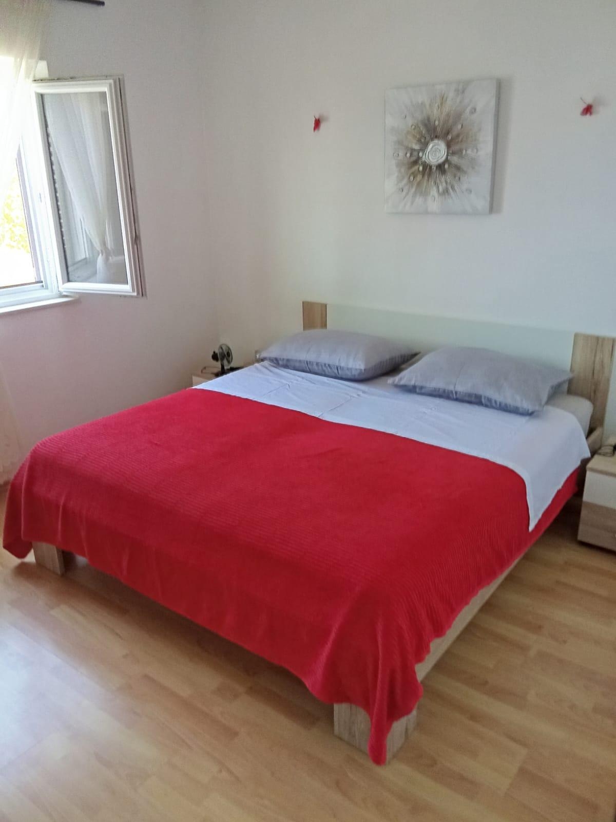 Apartament może przyjąć 6 gości. Łóżka znajdują się w sypialniach, których jest 3, na powierzchni 67m2. Goście mają dostęp do tarasu, by korzystać z ciepłych, letnich wieczorów. Z apartamentu roztacza się widok na morze. Grill jest dostępny tylko do użytku gości z tej kwatery. WLICZONE W CENĘ: taksa pobytowa, sprzątanie końcowe, parking, internet, leżaki. Dostępność dodatkowych usług w rezerwowanym terminie oraz ich cenę (jeśli nie jest podana) należy sprawdzić wcześniej. Za dodatowe usługi, które nie zostały uwzględnione w kalkulacji ceny, płaci się bezpośrednio właścicielowi obiektu, pod warunkiem śe gość korzysta z tych usług.