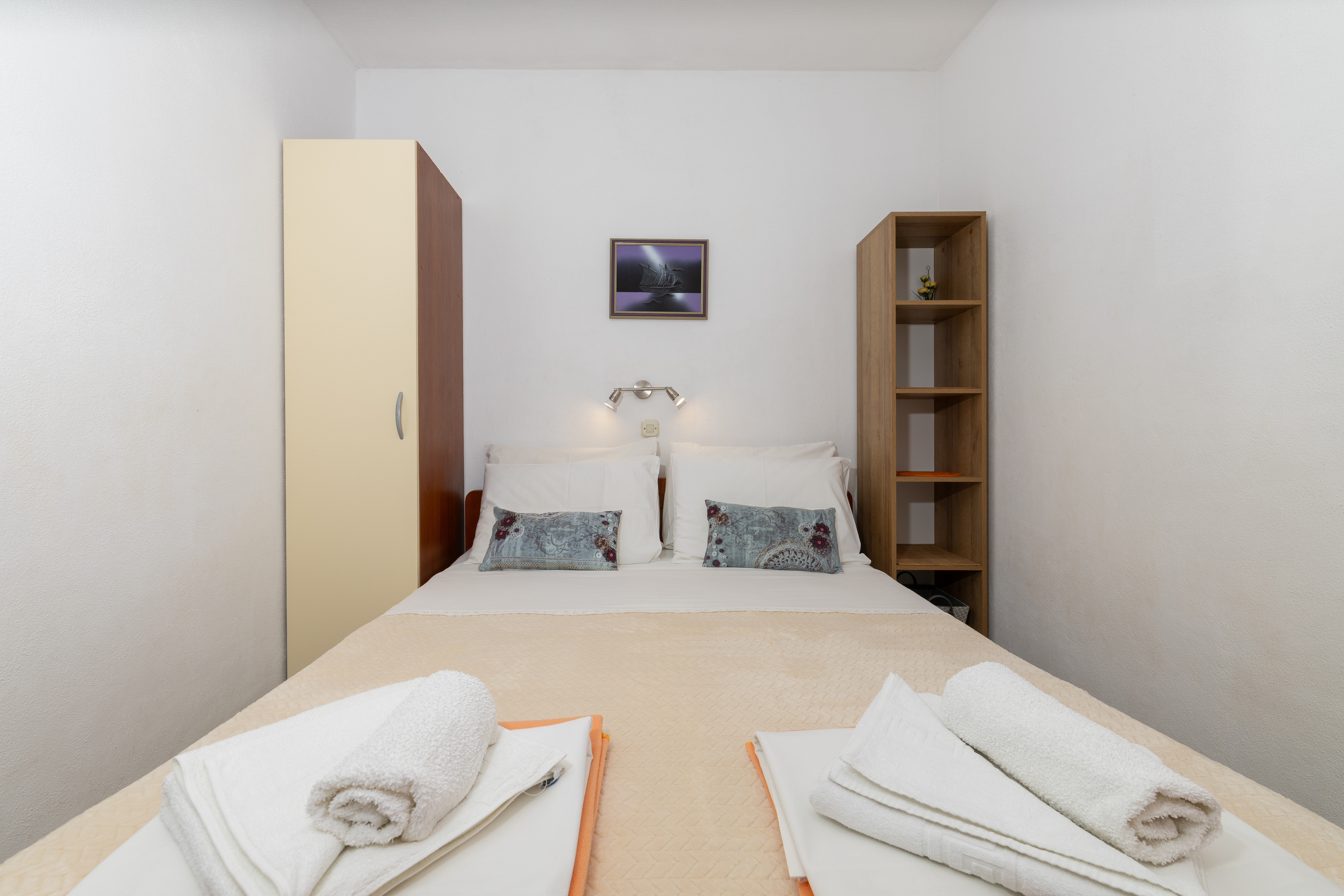 Studio może przyjąć 3 gości. Łóżka znajdują się w sypialniach, których jest 1, oraz w pokoju dziennym, na powierzchni 23m2. Goście mają dostęp do tarasu, by korzystać z ciepłych, letnich wieczorów. Z apartamentu typu studio roztacza się widok na morze. Grill jest dostępny tylko do użytku gości z tej kwatery. WLICZONE W CENĘ: taksa pobytowa, sprzątanie końcowe, klimatyzacja, parking, internet, pranie bielizny, łóżeczko dziecięce, żelazko, deska do prasowania, suszarka do włosów. OBOWIĄZKOWE KOSZTY DODATKOWE: dopłata za krótki termin (procent dopłaty w zalezności od liczby noclegów: 30% - 1, 20% - 2, 10% - 3). Dostępność dodatkowych usług w rezerwowanym terminie oraz ich cenę (jeśli nie jest podana) należy sprawdzić wcześniej. Za dodatowe usługi, które nie zostały uwzględnione w kalkulacji ceny, płaci się bezpośrednio właścicielowi obiektu, pod warunkiem śe gość korzysta z tych usług. Zniżki od ceny podstawowej: bezpłatny dzień 21=19 (przy pobycie, trwającym co najmniej 21 dni, trzymujecie dwa bezpłatne dni na pobyt do 31.12.2026).