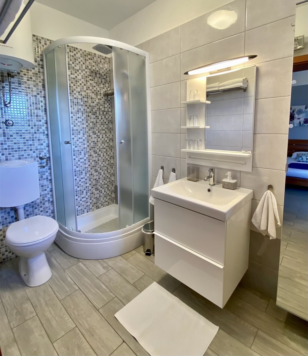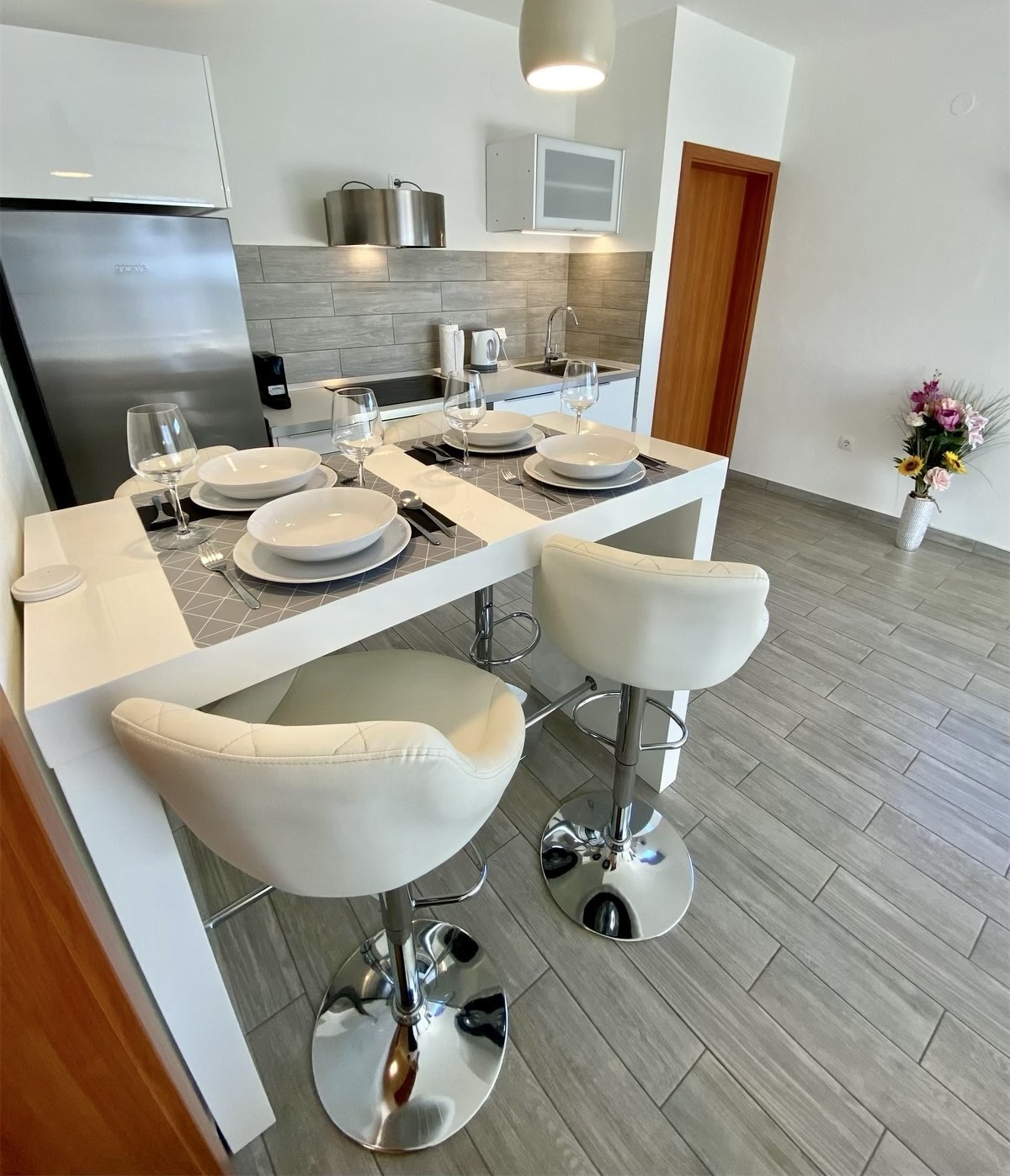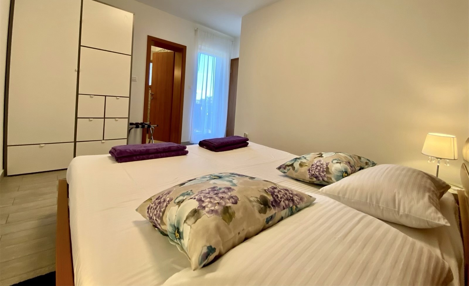Apartament może przyjąć 4 gości. Łóżka znajdują się w sypialniach, których jest 1, oraz w pokoju dziennym, na powierzchni 43m2. Goście mają dostęp do tarasu, by korzystać z ciepłych, letnich wieczorów. Z apartamentu roztacza się widok na morze. Możliwość przygotowywania posiłków poprzez korzystanie ze wspólnego grilla. WLICZONE W CENĘ: taksa pobytowa, sprzątanie końcowe, klimatyzacja, internet, żelazko, deska do prasowania, suszarka do włosów. NIEOBOWIĄZKOWE KOSZTY DODATKOWE: pranie bielizny (5,00 € pranie). Dostępność dodatkowych usług w rezerwowanym terminie oraz ich cenę (jeśli nie jest podana) należy sprawdzić wcześniej. Za dodatowe usługi, które nie zostały uwzględnione w kalkulacji ceny, płaci się bezpośrednio właścicielowi obiektu, pod warunkiem śe gość korzysta z tych usług. Zniżki od ceny podstawowej: bezpłatny dzień 14=13 (przy pobycie, trwającym co najmniej 14 dni, otrzymujecie jeden bezpłatny dzień na pobyt do 31.12.2026).
