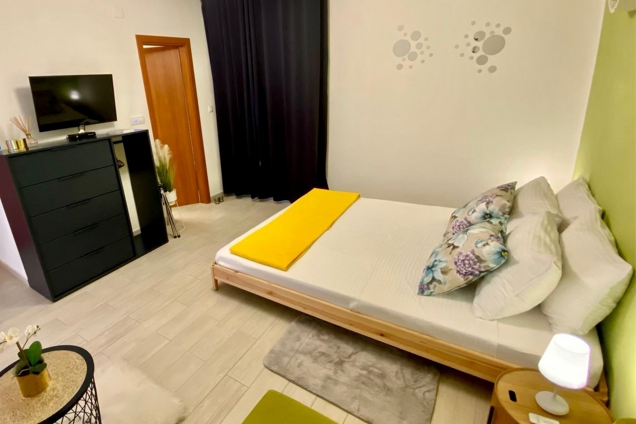 Studio może przyjąć 2 gości. Łóżka znajdują się w sypialniach, których jest 1, na powierzchni 23m2. Goście mają dostęp do balkonu, by korzystać z ciepłych, letnich wieczorów. Możliwość przygotowywania posiłków poprzez korzystanie ze wspólnego grilla. WLICZONE W CENĘ: taksa pobytowa, sprzątanie końcowe, klimatyzacja, internet, żelazko, deska do prasowania, suszarka do włosów. NIEOBOWIĄZKOWE KOSZTY DODATKOWE: pranie bielizny (5,00 € pranie). Dostępność dodatkowych usług w rezerwowanym terminie oraz ich cenę (jeśli nie jest podana) należy sprawdzić wcześniej. Za dodatowe usługi, które nie zostały uwzględnione w kalkulacji ceny, płaci się bezpośrednio właścicielowi obiektu, pod warunkiem śe gość korzysta z tych usług. Zniżki od ceny podstawowej: bezpłatny dzień 14=13 (przy pobycie, trwającym co najmniej 14 dni, otrzymujecie jeden bezpłatny dzień na pobyt do 31.12.2026).