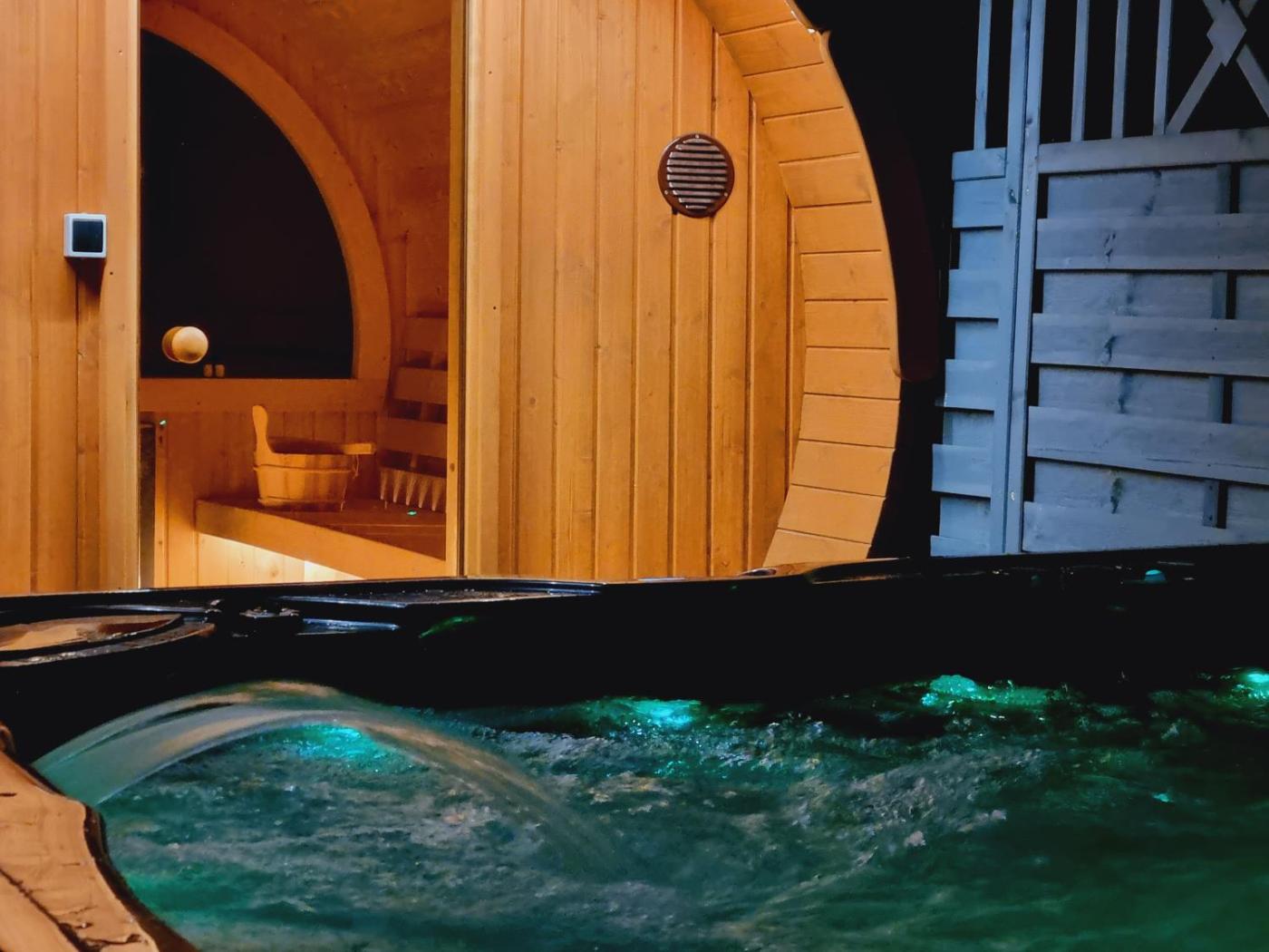 Zaplecze odnowy biologicznej obiektu Apartament Paula obejmuje saunę i wannę z hydromasażem.