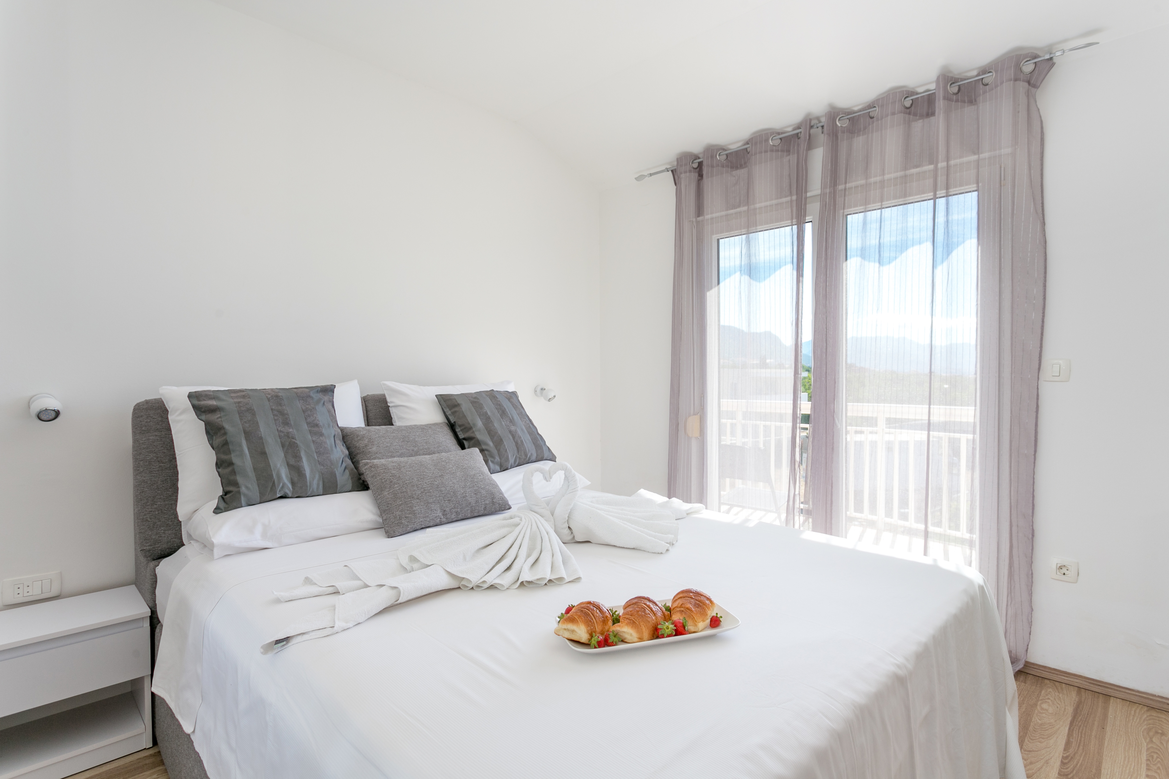 Apartament może przyjąć 6 gości. Łóżka znajdują się w sypialniach, których jest 2, oraz w pokoju dziennym, na powierzchni 73m2. Goście mają dostęp do tarasu, by korzystać z ciepłych, letnich wieczorów. Z apartamentu roztacza się widok na morze. Możliwość przygotowywania posiłków poprzez korzystanie ze wspólnego grilla. W trakcie swojego pobytu goście mogą korzystać ze wspólnego basenu. WLICZONE W CENĘ: taksa pobytowa, sprzątanie końcowe, klimatyzacja, basen, parking, internet, łóżeczko dziecięce, żelazko, deska do prasowania, suszarka do włosów. Dostępność dodatkowych usług w rezerwowanym terminie oraz ich cenę (jeśli nie jest podana) należy sprawdzić wcześniej. Za dodatowe usługi, które nie zostały uwzględnione w kalkulacji ceny, płaci się bezpośrednio właścicielowi obiektu, pod warunkiem śe gość korzysta z tych usług.