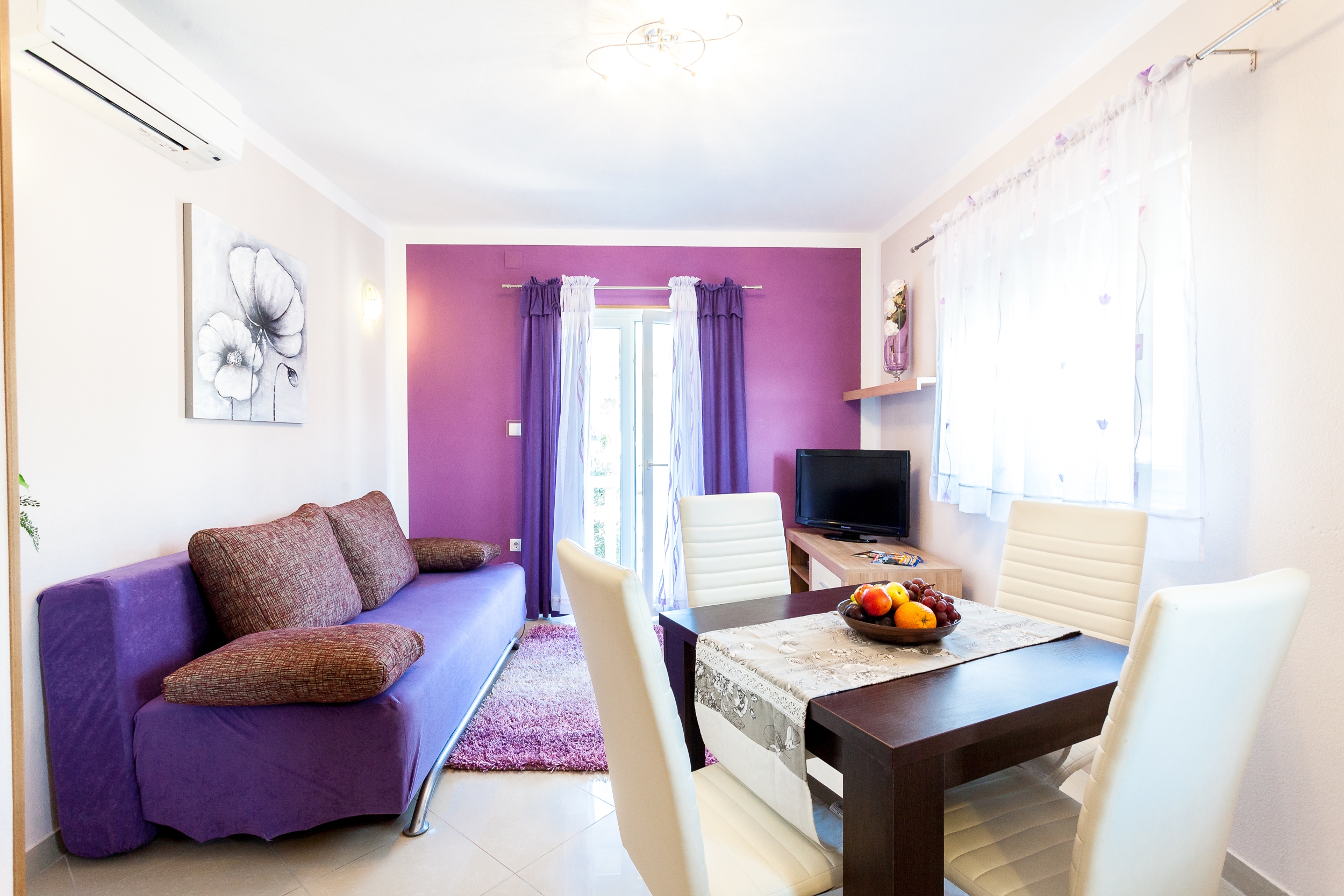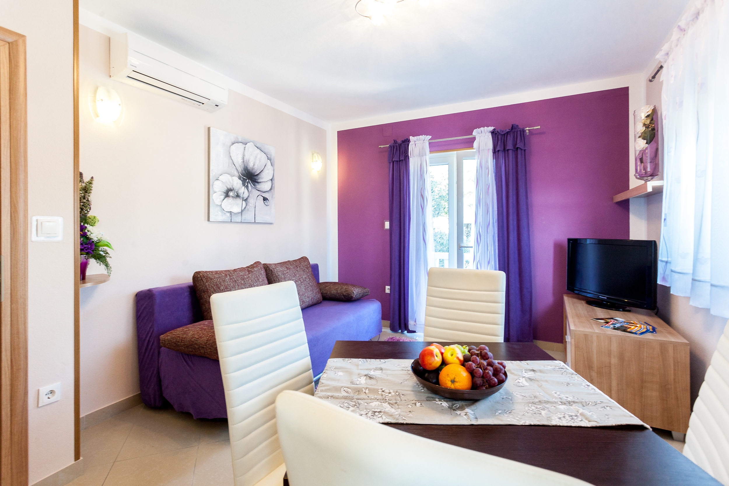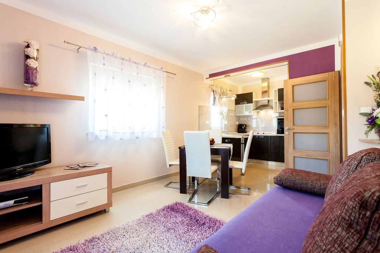 Apartament może przyjąć 10 gości. Łóżka znajdują się w sypialniach, których jest 3, oraz w pokoju dziennym, na powierzchni 101m2. Goście mają dostęp do tarasu, by korzystać z ciepłych, letnich wieczorów. Z apartamentu roztacza się widok na morze. Możliwość przygotowywania posiłków poprzez korzystanie ze wspólnego grilla. WLICZONE W CENĘ: taksa pobytowa, sprzątanie końcowe, klimatyzacja, parking, garaż, internet, łóżeczko dziecięce, żelazko, deska do prasowania, suszarka do włosów. Dostępność dodatkowych usług w rezerwowanym terminie oraz ich cenę (jeśli nie jest podana) należy sprawdzić wcześniej. Za dodatowe usługi, które nie zostały uwzględnione w kalkulacji ceny, płaci się bezpośrednio właścicielowi obiektu, pod warunkiem śe gość korzysta z tych usług.
