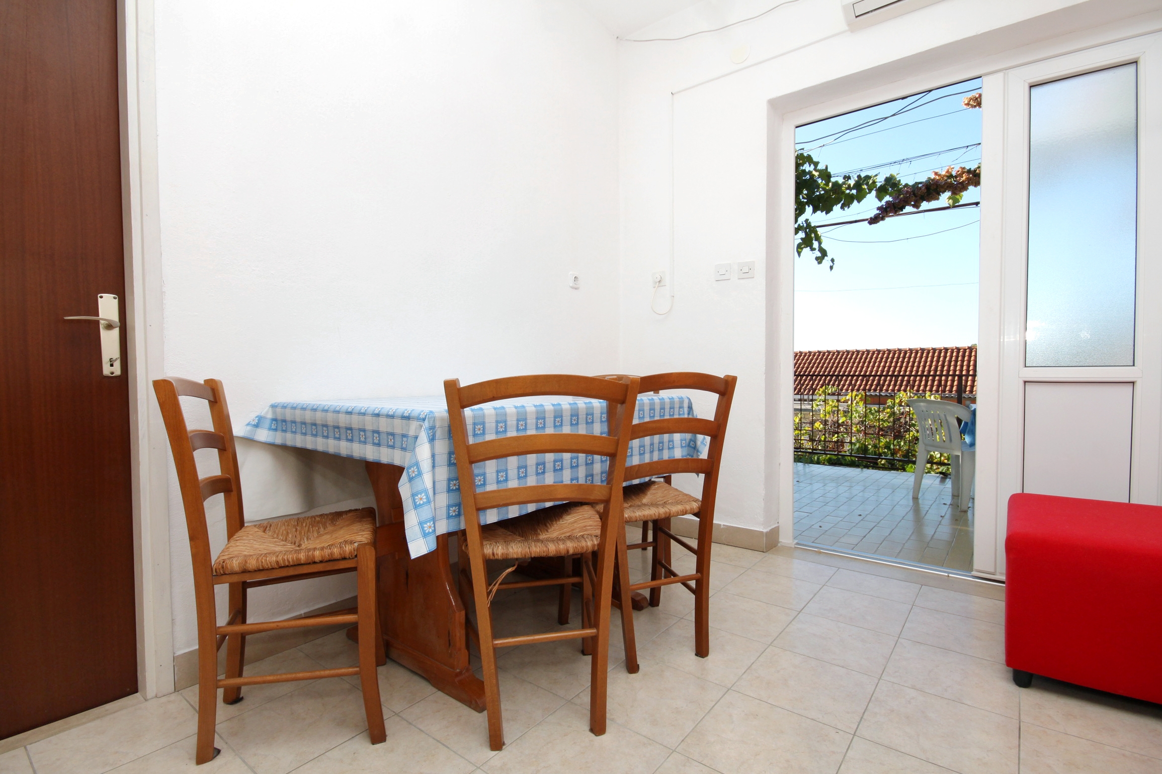 Apartament może przyjąć 5 gości. Łóżka znajdują się w sypialniach, których jest 2, oraz w jadalni, na powierzchni 32m2. Goście mają dostęp do tarasu, by korzystać z ciepłych, letnich wieczorów. Z apartamentu roztacza się widok na morze. Możliwość przygotowywania posiłków poprzez korzystanie ze wspólnego grilla. Do kwatery można przyjechać ze zwierzęciem domowym, a usługa jest wliczona w cenę wynajęcia kwatery. WLICZONE W CENĘ: taksa pobytowa, sprzątanie końcowe, klimatyzacja, parking, internet, zwierzęta domowe, żelazko, deska do prasowania, suszarka do włosów. OBOWIĄZKOWE KOSZTY DODATKOWE: dopłata za krótki termin (procent dopłaty w zalezności od liczby noclegów: 30% - 1, 20% - 2, 10% - 3). Dostępność dodatkowych usług w rezerwowanym terminie oraz ich cenę (jeśli nie jest podana) należy sprawdzić wcześniej. Za dodatowe usługi, które nie zostały uwzględnione w kalkulacji ceny, płaci się bezpośrednio właścicielowi obiektu, pod warunkiem śe gość korzysta z tych usług.