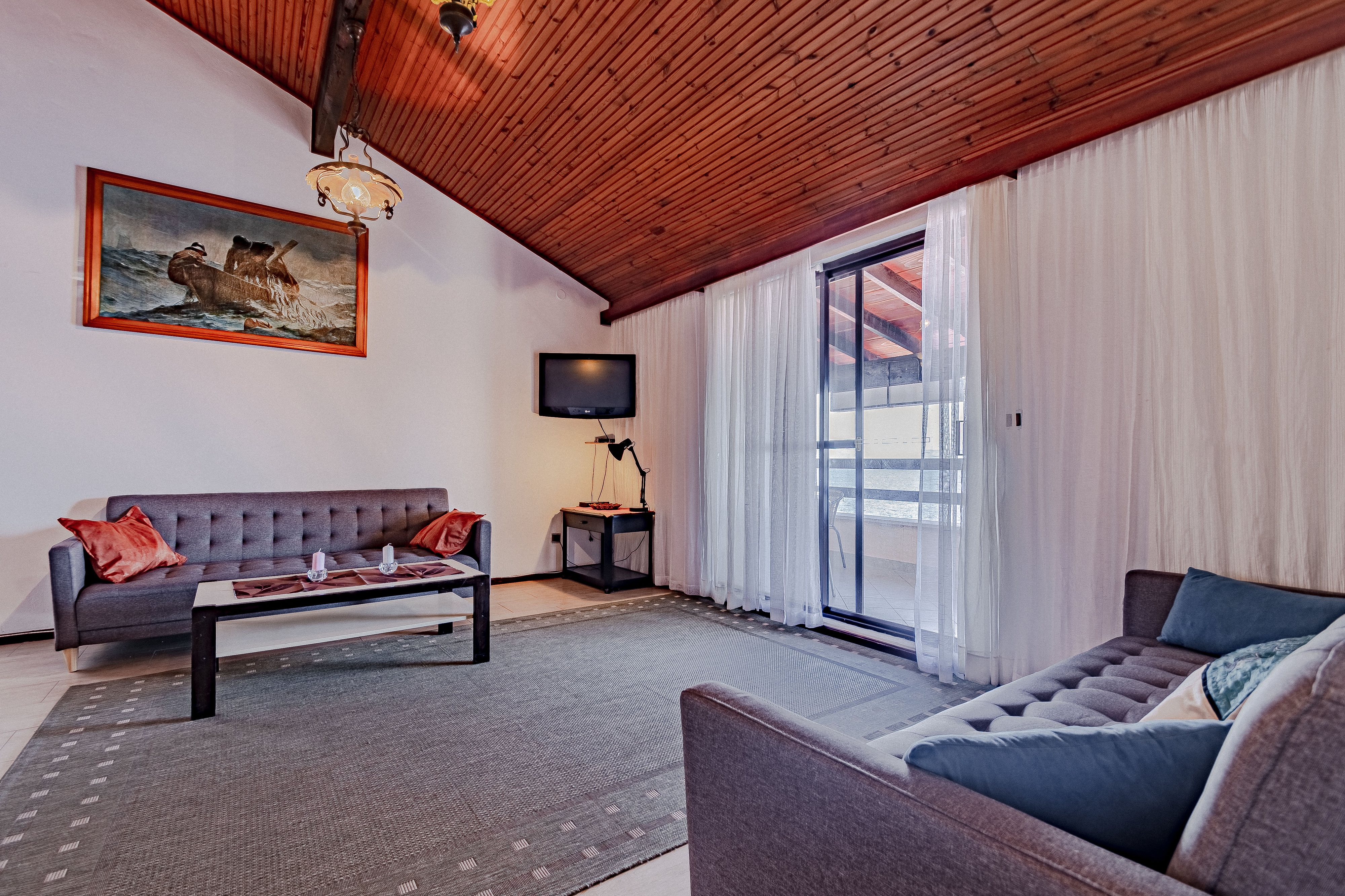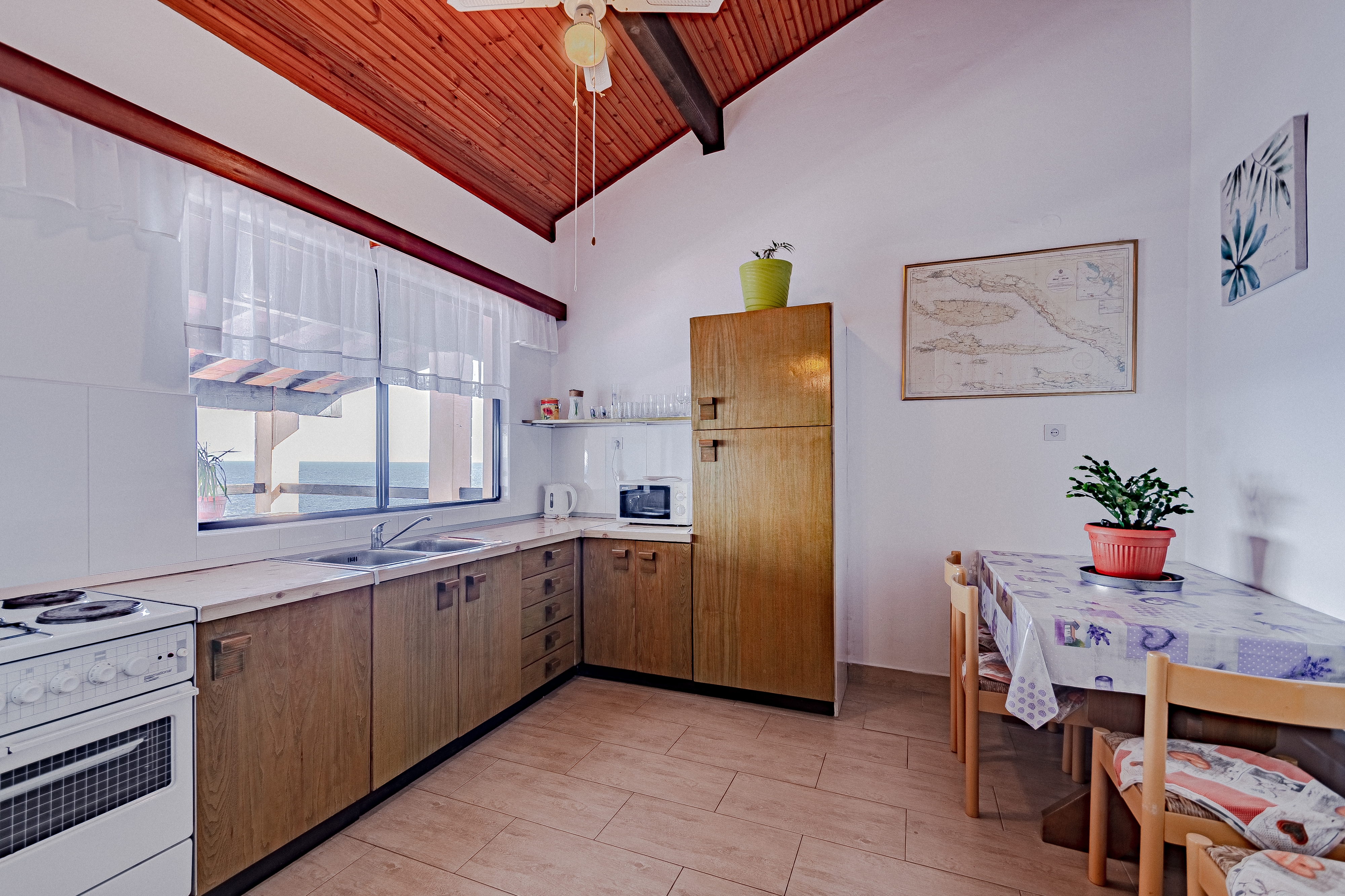 Apartament może przyjąć 8 gości. Łóżka znajdują się w sypialniach, których jest 3, oraz w pokoju dziennym, na powierzchni 96m2. Goście mają dostęp do tarasu, by korzystać z ciepłych, letnich wieczorów. Z apartamentu roztacza się widok na morze. Grill jest dostępny tylko do użytku gości z tej kwatery. W kwaterze dozwolony jest pobyt zwierzęcia domowego, za dopłatą. WLICZONE W CENĘ: taksa pobytowa, sprzątanie końcowe, klimatyzacja, parking, internet, łóżeczko dziecięce, żelazko, deska do prasowania, suszarka do włosów, parasol. OBOWIĄZKOWE KOSZTY DODATKOWE: dopłata za krótki termin (procent dopłaty w zalezności od liczby noclegów: 30% - 1, 20% - 2, 10% - 3). NIEOBOWIĄZKOWE KOSZTY DODATKOWE: centralne ogrzewanie (10,00 € za nocleg), zwierzęta domowe (8,00 € za nocleg). Dostępność dodatkowych usług w rezerwowanym terminie oraz ich cenę (jeśli nie jest podana) należy sprawdzić wcześniej. Za dodatowe usługi, które nie zostały uwzględnione w kalkulacji ceny, płaci się bezpośrednio właścicielowi obiektu, pod warunkiem śe gość korzysta z tych usług. Zniżki od ceny podstawowej: bezpłatny dzień 28=25 (na pobyt na 28 dni lub więcej otrzymują Państwo 3 dni gratis na pobyt do 31.12.2026).