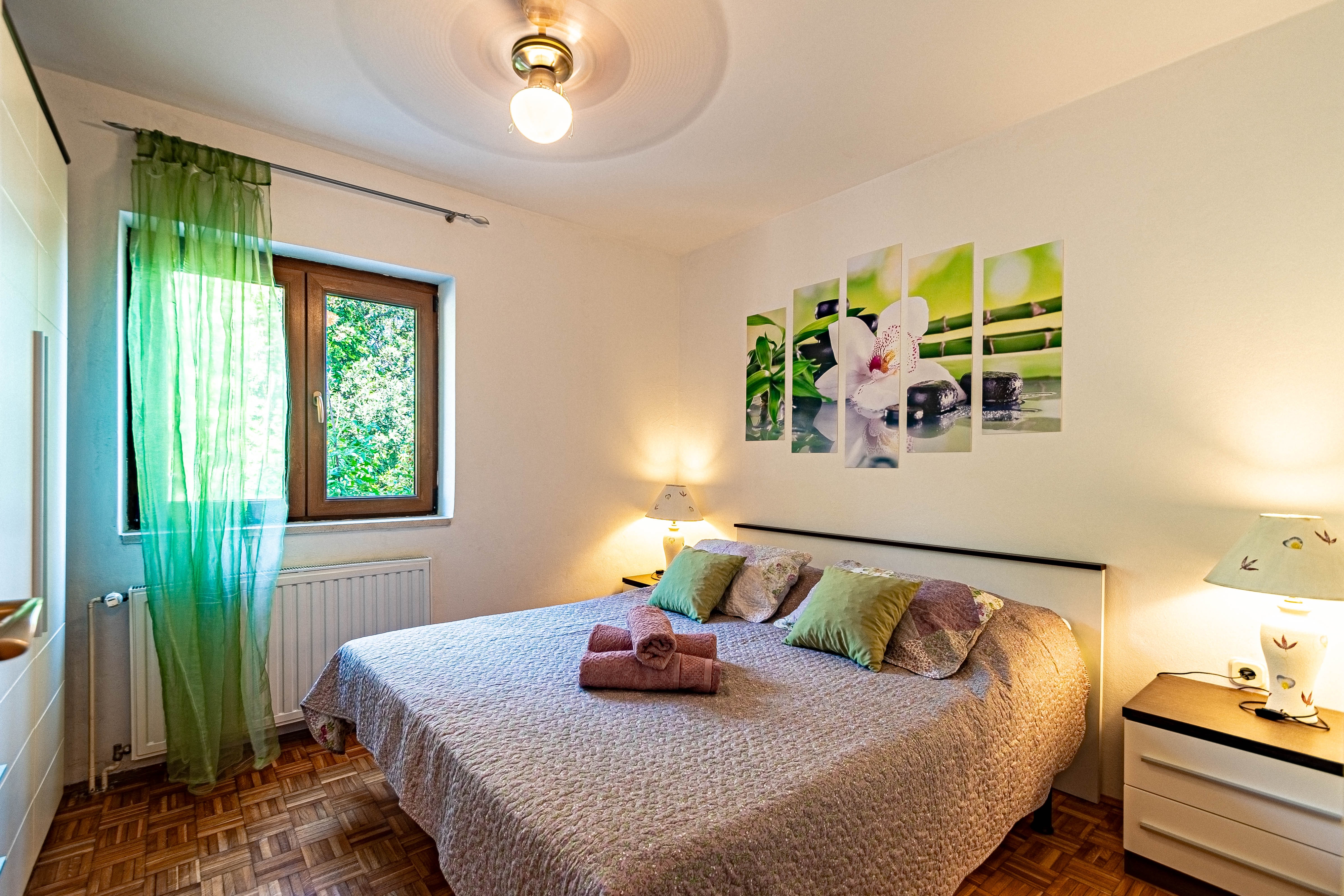 Apartament może przyjąć 6 gości. Łóżka znajdują się w sypialniach, których jest 3, na powierzchni 89m2. Goście mają dostęp do tarasu, by korzystać z ciepłych, letnich wieczorów. Z apartamentu roztacza się widok na morze. Możliwość przygotowywania posiłków poprzez korzystanie ze wspólnego grilla. WLICZONE W CENĘ: taksa pobytowa, sprzątanie końcowe, klimatyzacja, centralne ogrzewanie, parking, garaż, internet, pranie bielizny, miejsce do cumowania łodzi, łóżeczko dziecięce, żelazko, deska do prasowania, suszarka do włosów, przenośny grill, parasol, leżaki. OBOWIĄZKOWE KOSZTY DODATKOWE: dopłata za krótki termin (procent dopłaty w zalezności od liczby noclegów: 30% - 1, 20% - 2, 10% - 3). NIEOBOWIĄZKOWE KOSZTY DODATKOWE: śniadanie (10,00 €, 50% zniżki dla dzieci od 4 do 12 lat, Bezpłatne dla dzieci do 4 lat), śniadanie i kolacja (30,00 €, 50% zniżki dla dzieci od 4 do 12 lat, Bezpłatne dla dzieci do 4 lat). Dostępność dodatkowych usług w rezerwowanym terminie oraz ich cenę (jeśli nie jest podana) należy sprawdzić wcześniej. Za dodatowe usługi, które nie zostały uwzględnione w kalkulacji ceny, płaci się bezpośrednio właścicielowi obiektu, pod warunkiem śe gość korzysta z tych usług.