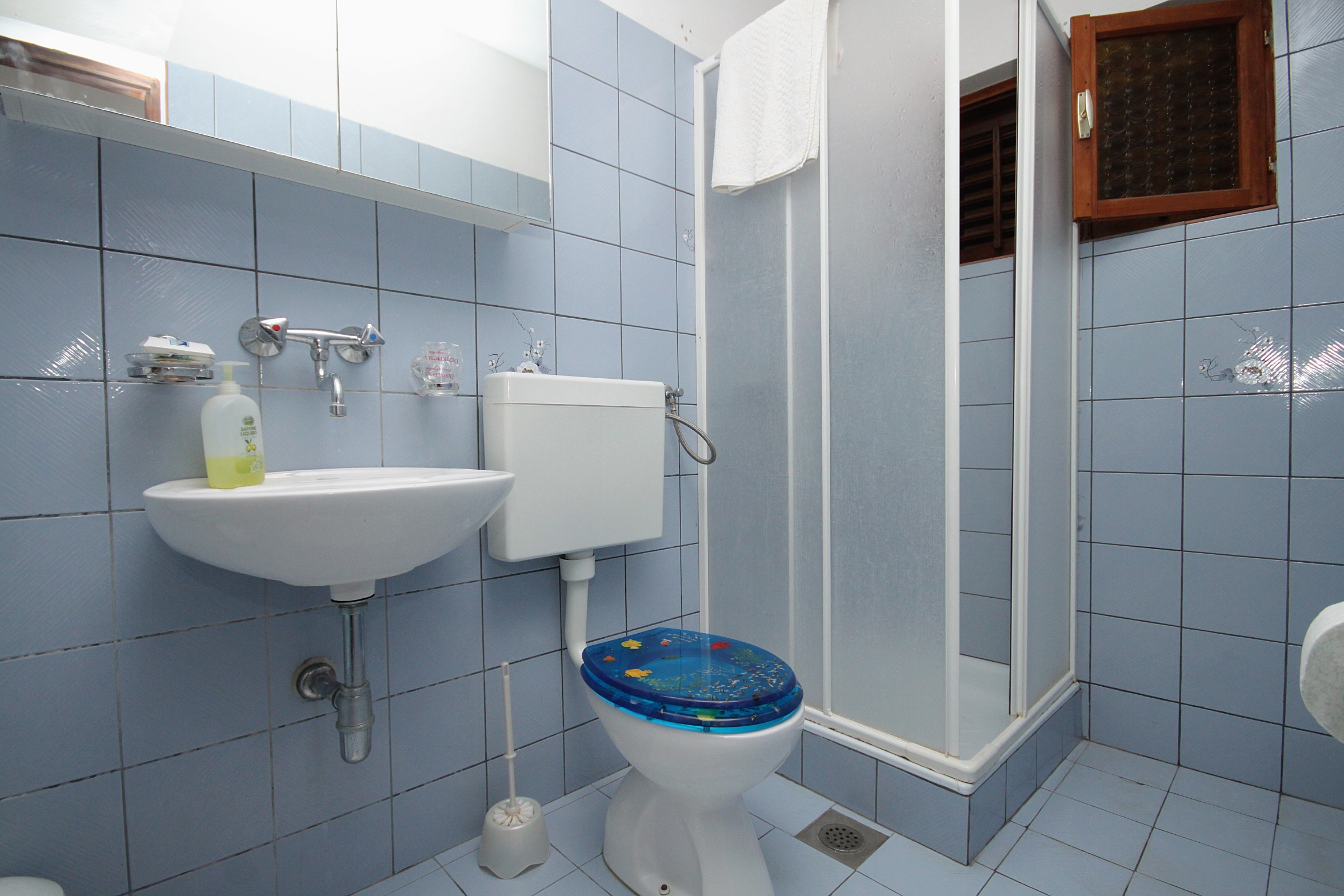 Apartament może przyjąć 5 gości. Łóżka znajdują się w sypialniach, których jest 2, oraz w jadalni, na powierzchni 51m2. Goście mają dostęp do tarasu, by korzystać z ciepłych, letnich wieczorów. Z apartamentu roztacza się widok na morze. Możliwość przygotowywania posiłków poprzez korzystanie ze wspólnego grilla. W kwaterze dozwolony jest pobyt zwierzęcia domowego, za dopłatą. WLICZONE W CENĘ: taksa pobytowa, sprzątanie końcowe, klimatyzacja, parking, internet, dostawka, żelazko, deska do prasowania, suszarka do włosów. OBOWIĄZKOWE KOSZTY DODATKOWE: dopłata za krótki termin (procent dopłaty w zalezności od liczby noclegów: 30% - 1, 20% - 2, 10% - 3). NIEOBOWIĄZKOWE KOSZTY DODATKOWE: zwierzęta domowe (5,00 € za nocleg). Dostępność dodatkowych usług w rezerwowanym terminie oraz ich cenę (jeśli nie jest podana) należy sprawdzić wcześniej. Za dodatowe usługi, które nie zostały uwzględnione w kalkulacji ceny, płaci się bezpośrednio właścicielowi obiektu, pod warunkiem śe gość korzysta z tych usług.