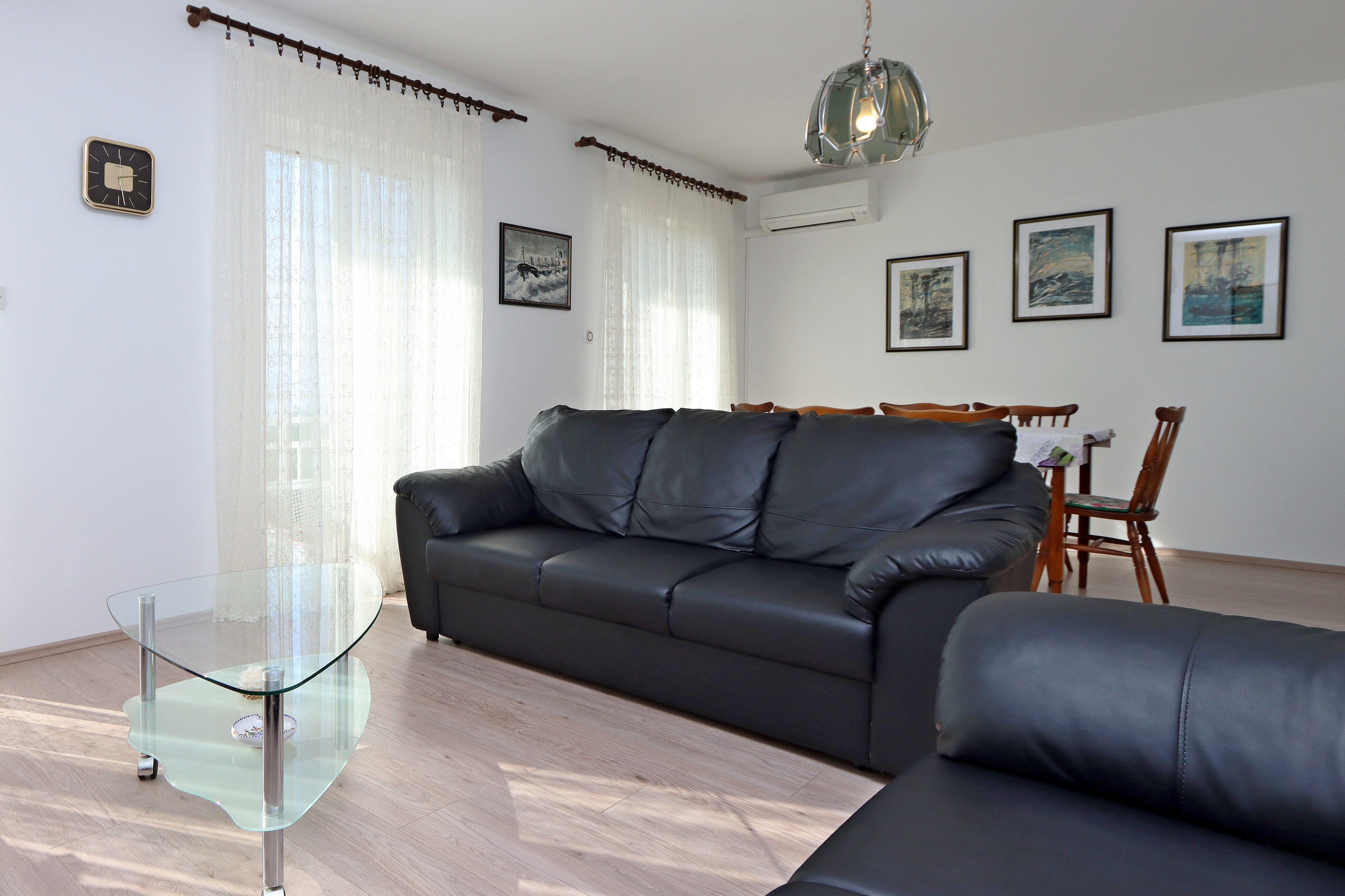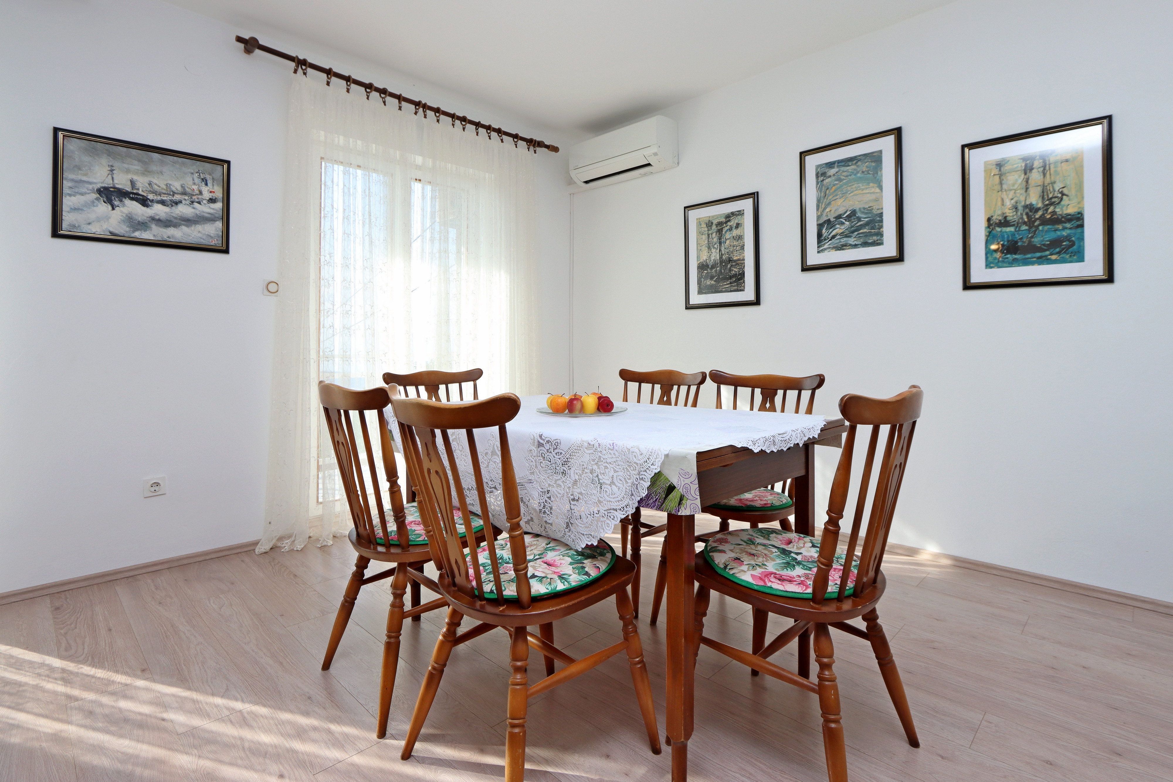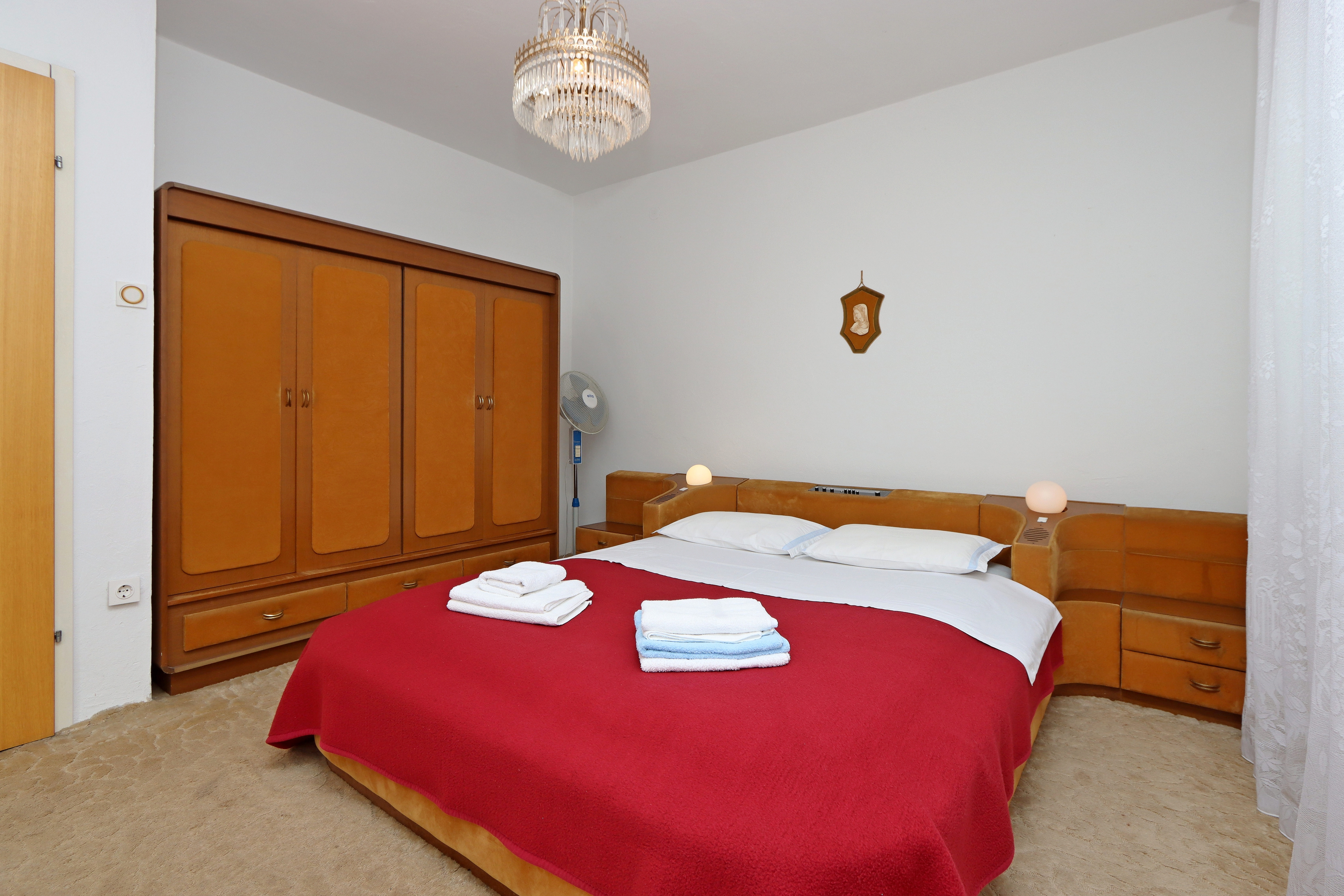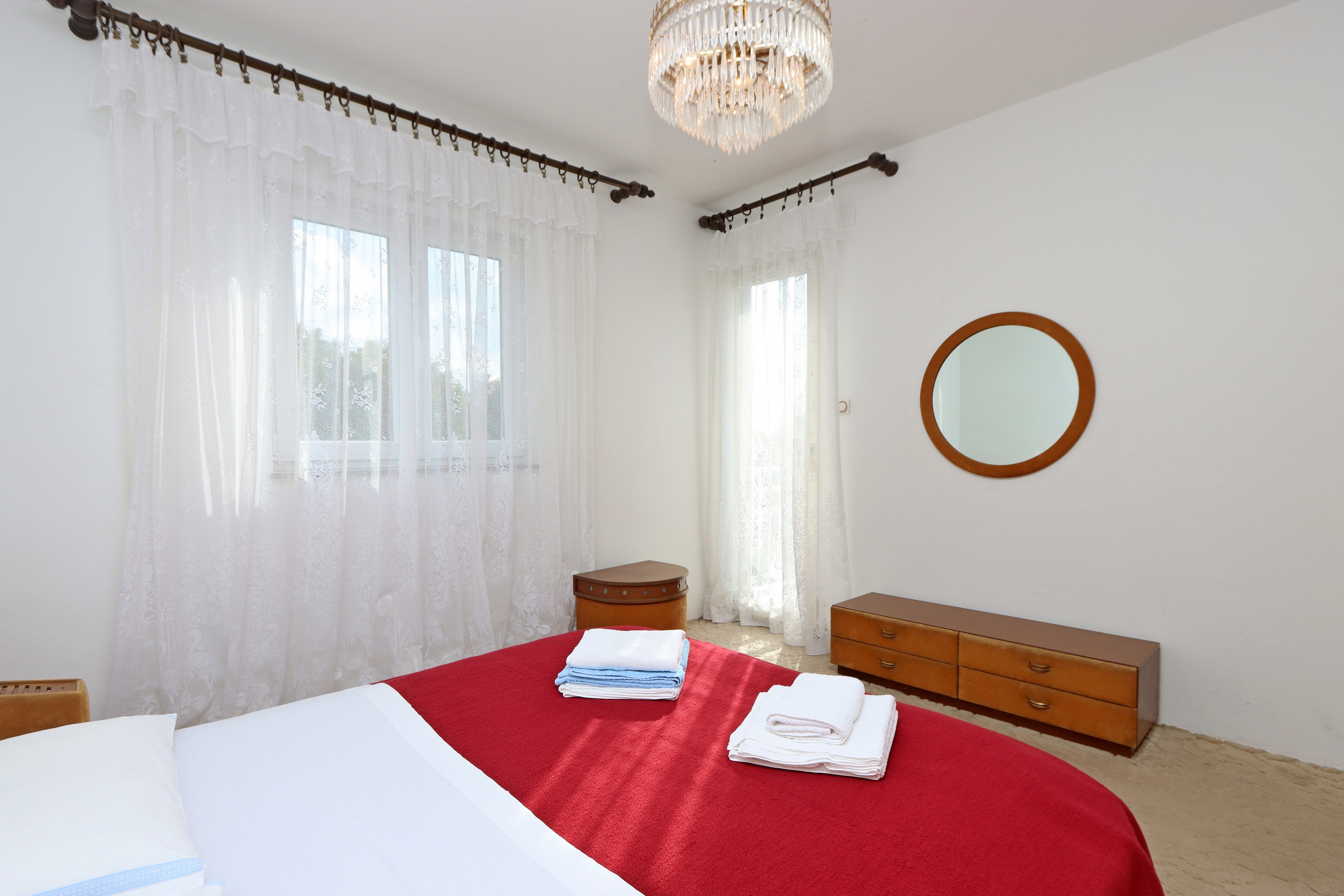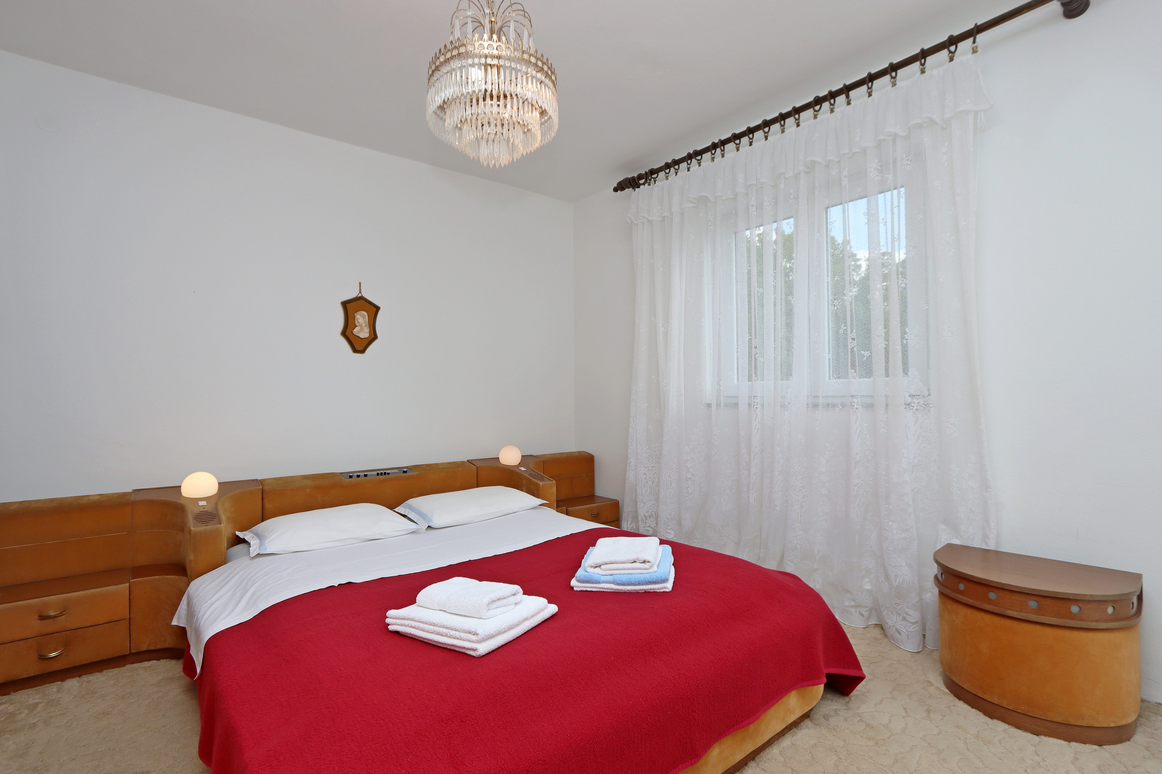 Apartament może przyjąć 4 gości. Łóżka znajdują się w sypialniach, których jest 2, na powierzchni 73m2. Goście mają dostęp do balkonu, by korzystać z ciepłych, letnich wieczorów. Z apartamentu roztacza się widok na morze. Możliwość przygotowywania posiłków poprzez korzystanie ze wspólnego grilla. WLICZONE W CENĘ: taksa pobytowa, sprzątanie końcowe, klimatyzacja, parking, internet, żelazko, deska do prasowania, suszarka do włosów. OBOWIĄZKOWE KOSZTY DODATKOWE: dopłata za krótki termin (procent dopłaty w zalezności od liczby noclegów: 30% - 1, 20% - 2, 10% - 3). NIEOBOWIĄZKOWE KOSZTY DODATKOWE: pranie bielizny (5,00 € pranie). Dostępność dodatkowych usług w rezerwowanym terminie oraz ich cenę (jeśli nie jest podana) należy sprawdzić wcześniej. Za dodatowe usługi, które nie zostały uwzględnione w kalkulacji ceny, płaci się bezpośrednio właścicielowi obiektu, pod warunkiem śe gość korzysta z tych usług. Zniżki od ceny podstawowej: bezpłatny dzień 14=13 (przy pobycie, trwającym co najmniej 14 dni, otrzymujecie jeden bezpłatny dzień na pobyt do 31.12.2026).