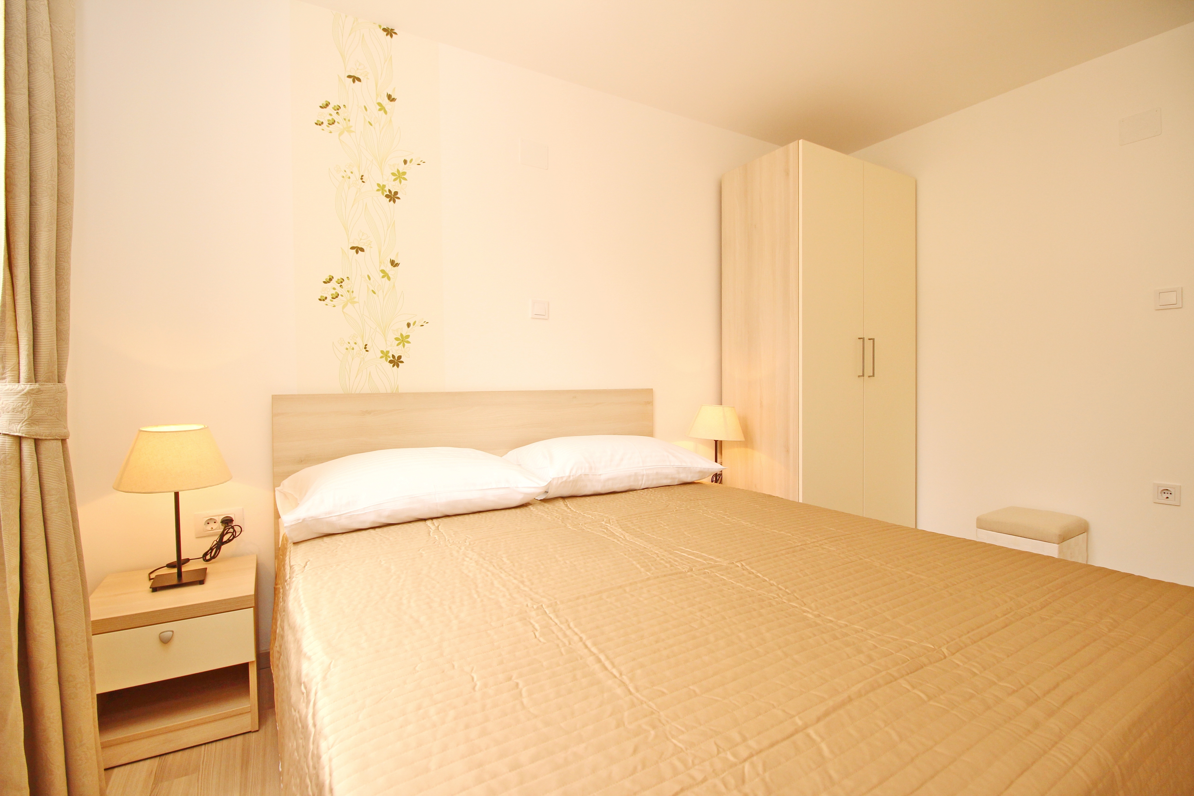 Apartament może przyjąć 4 gości. Łóżka znajdują się w sypialniach, których jest 1, oraz w pokoju dziennym, na powierzchni 52m2. Goście mają dostęp do tarasu, by korzystać z ciepłych, letnich wieczorów. Możliwość przygotowywania posiłków poprzez korzystanie ze wspólnego grilla. W trakcie swojego pobytu goście mogą korzystać ze wspólnego basenu. WLICZONE W CENĘ: sprzątanie końcowe, klimatyzacja, basen, parking, internet. OBOWIĄZKOWE KOSZTY DODATKOWE: taksa pobytowa (dorośli 0,93 € - 2,20 € noclegosoba, zniżka dla dzieci w wieku 12 - 17 lat), dopłata za krótki termin (procent dopłaty w zalezności od liczby noclegów: 30% - 1, 20% - 2, 10% - 3). Dostępność dodatkowych usług w rezerwowanym terminie oraz ich cenę (jeśli nie jest podana) należy sprawdzić wcześniej. Za dodatowe usługi, które nie zostały uwzględnione w kalkulacji ceny, płaci się bezpośrednio właścicielowi obiektu, pod warunkiem śe gość korzysta z tych usług.