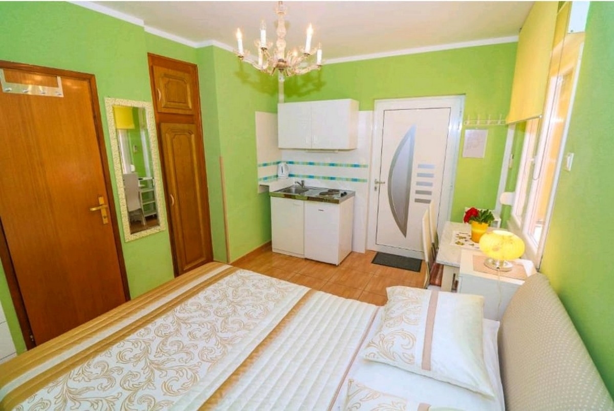 Studio może przyjąć 2 gości. Łóżka znajdują się w sypialniach, których jest 1, na powierzchni 24m2. Goście mają dostęp do tarasu, by korzystać z ciepłych, letnich wieczorów. Możliwość przygotowywania posiłków poprzez korzystanie ze wspólnego grilla. WLICZONE W CENĘ: taksa pobytowa, sprzątanie końcowe, klimatyzacja, centralne ogrzewanie, parking, internet, żelazko, deska do prasowania, suszarka do włosów. OBOWIĄZKOWE KOSZTY DODATKOWE: dopłata za krótki termin (procent dopłaty w zalezności od liczby noclegów: 30% - 1, 20% - 2, 10% - 3). Dostępność dodatkowych usług w rezerwowanym terminie oraz ich cenę (jeśli nie jest podana) należy sprawdzić wcześniej. Za dodatowe usługi, które nie zostały uwzględnione w kalkulacji ceny, płaci się bezpośrednio właścicielowi obiektu, pod warunkiem śe gość korzysta z tych usług.