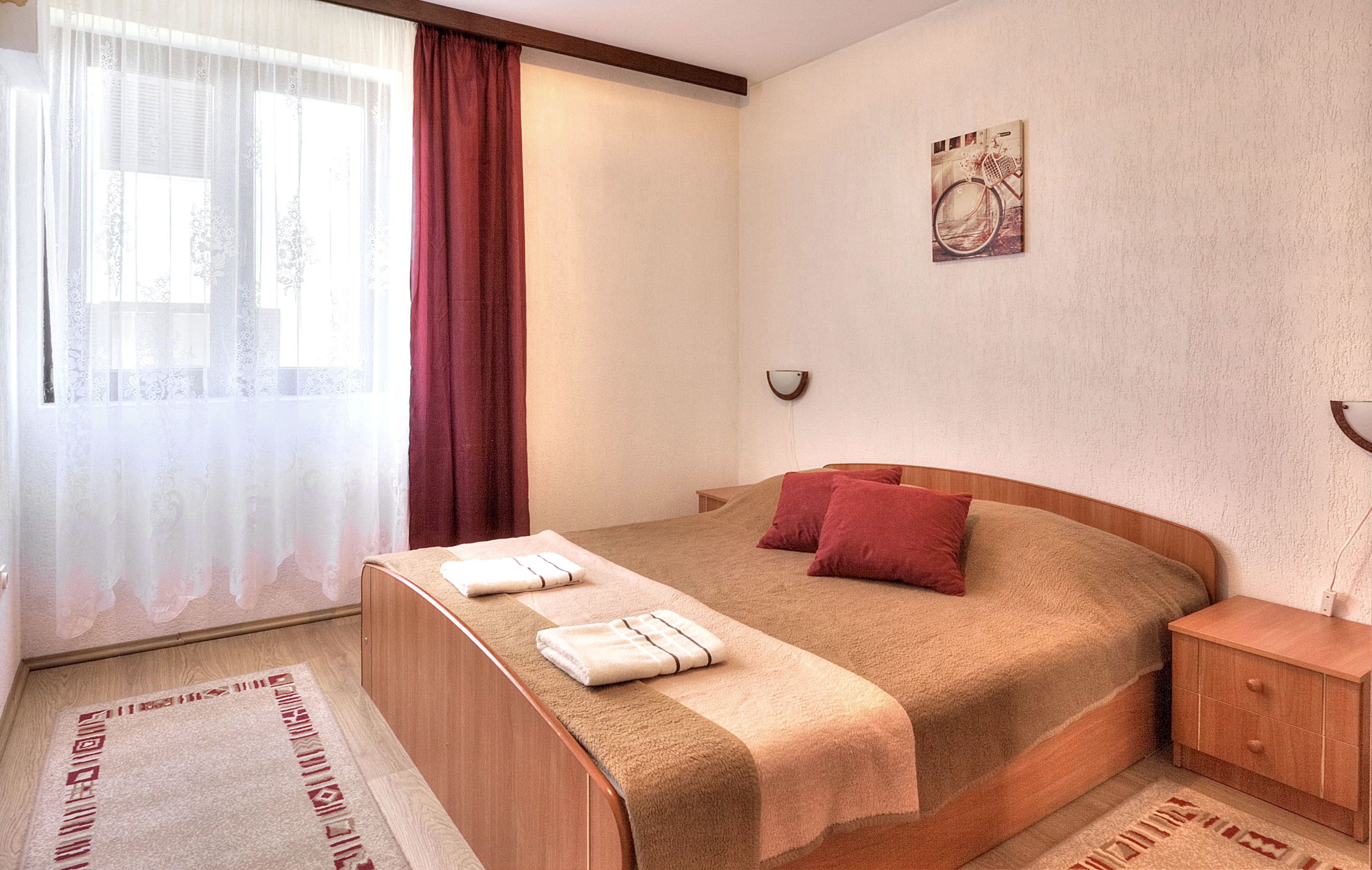 Apartament może przyjąć 4 gości. Łóżka znajdują się w sypialniach, których jest 2, na powierzchni 55m2. Goście mają dostęp do balkonu, by korzystać z ciepłych, letnich wieczorów. Możliwość przygotowywania posiłków poprzez korzystanie ze wspólnego grilla. WLICZONE W CENĘ: taksa pobytowa, sprzątanie końcowe, klimatyzacja, parking, internet. OBOWIĄZKOWE KOSZTY DODATKOWE: dopłata za krótki termin (procent dopłaty w zalezności od liczby noclegów: 30% - 1, 20% - 2, 10% - 3). Dostępność dodatkowych usług w rezerwowanym terminie oraz ich cenę (jeśli nie jest podana) należy sprawdzić wcześniej. Za dodatowe usługi, które nie zostały uwzględnione w kalkulacji ceny, płaci się bezpośrednio właścicielowi obiektu, pod warunkiem śe gość korzysta z tych usług.