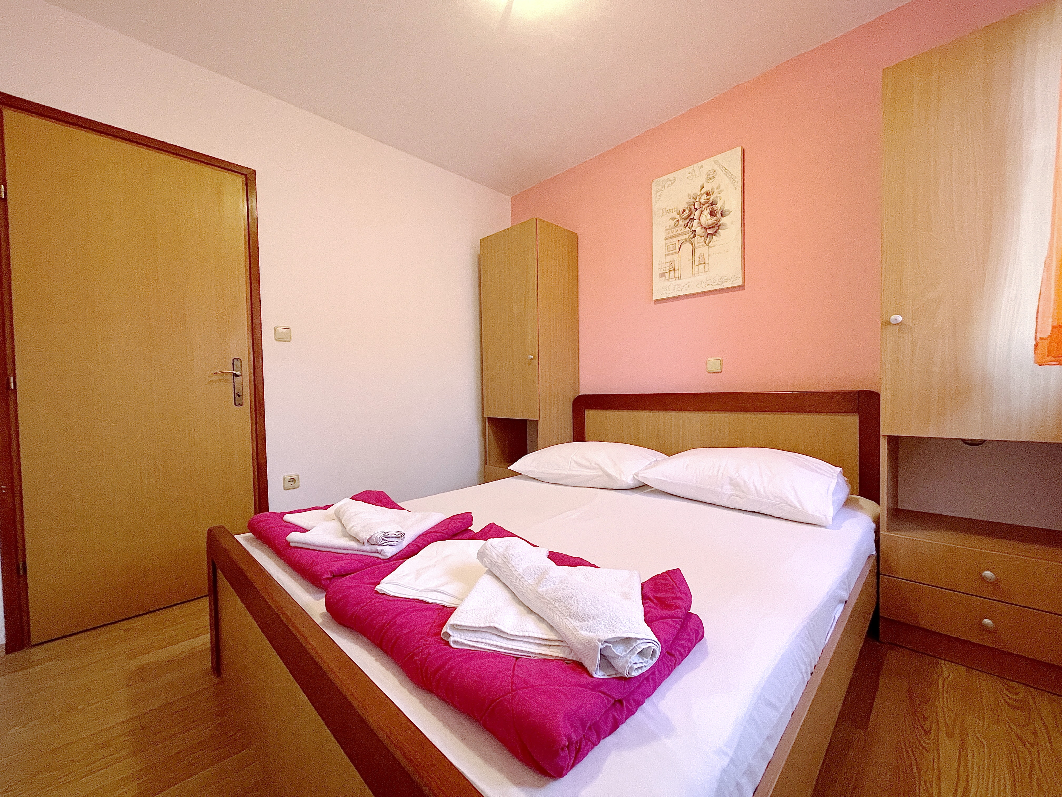 Apartament może przyjąć 5 gości. Łóżka znajdują się w sypialniach, których jest 2, oraz w pokoju dziennym, na powierzchni 55m2. Goście mają dostęp do balkonu, by korzystać z ciepłych, letnich wieczorów. Możliwość przygotowywania posiłków poprzez korzystanie ze wspólnego grilla. WLICZONE W CENĘ: taksa pobytowa, sprzątanie końcowe, klimatyzacja, parking, internet. OBOWIĄZKOWE KOSZTY DODATKOWE: dopłata za krótki termin (procent dopłaty w zalezności od liczby noclegów: 30% - 1, 20% - 2, 10% - 3). Dostępność dodatkowych usług w rezerwowanym terminie oraz ich cenę (jeśli nie jest podana) należy sprawdzić wcześniej. Za dodatowe usługi, które nie zostały uwzględnione w kalkulacji ceny, płaci się bezpośrednio właścicielowi obiektu, pod warunkiem śe gość korzysta z tych usług.