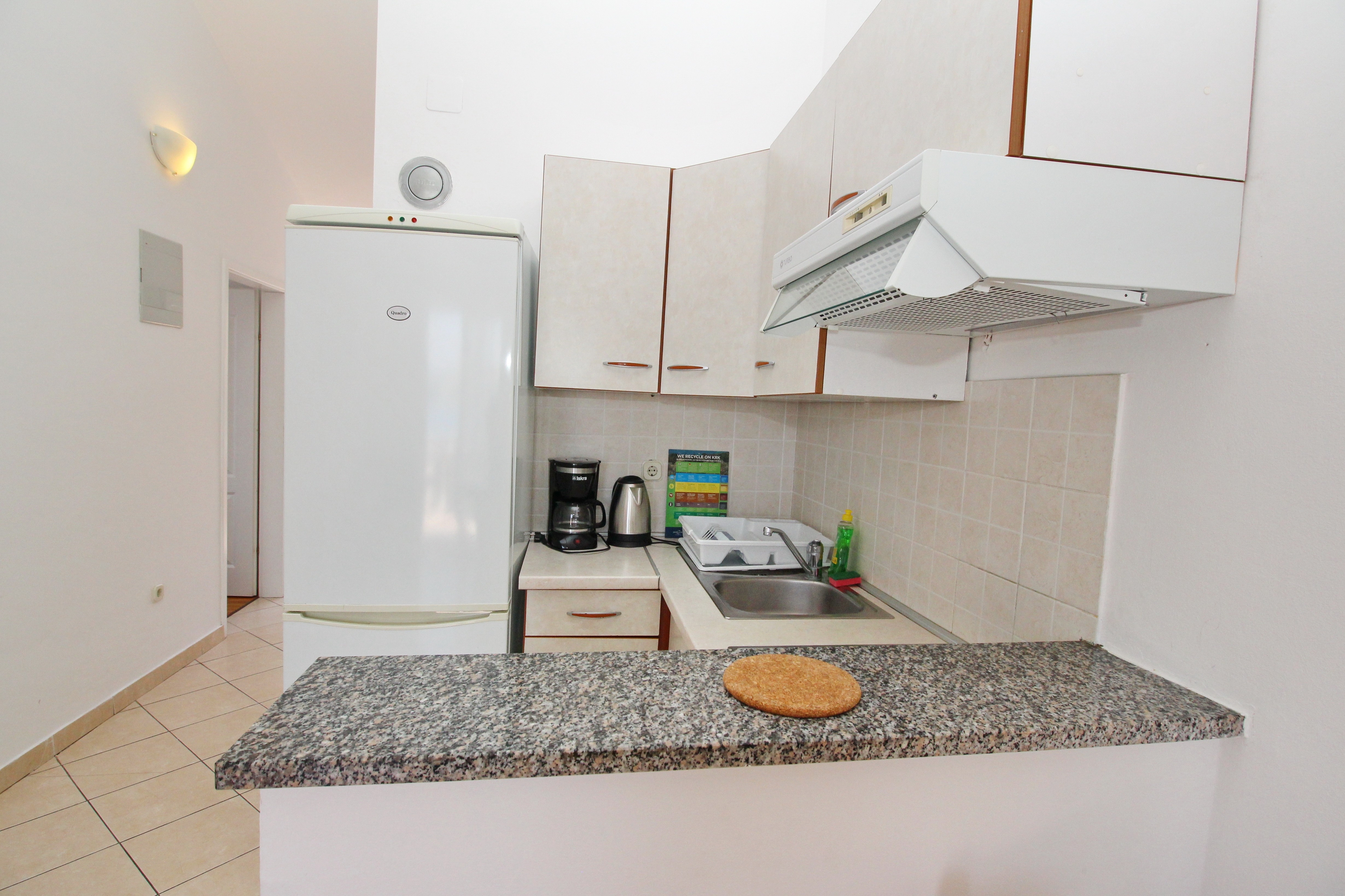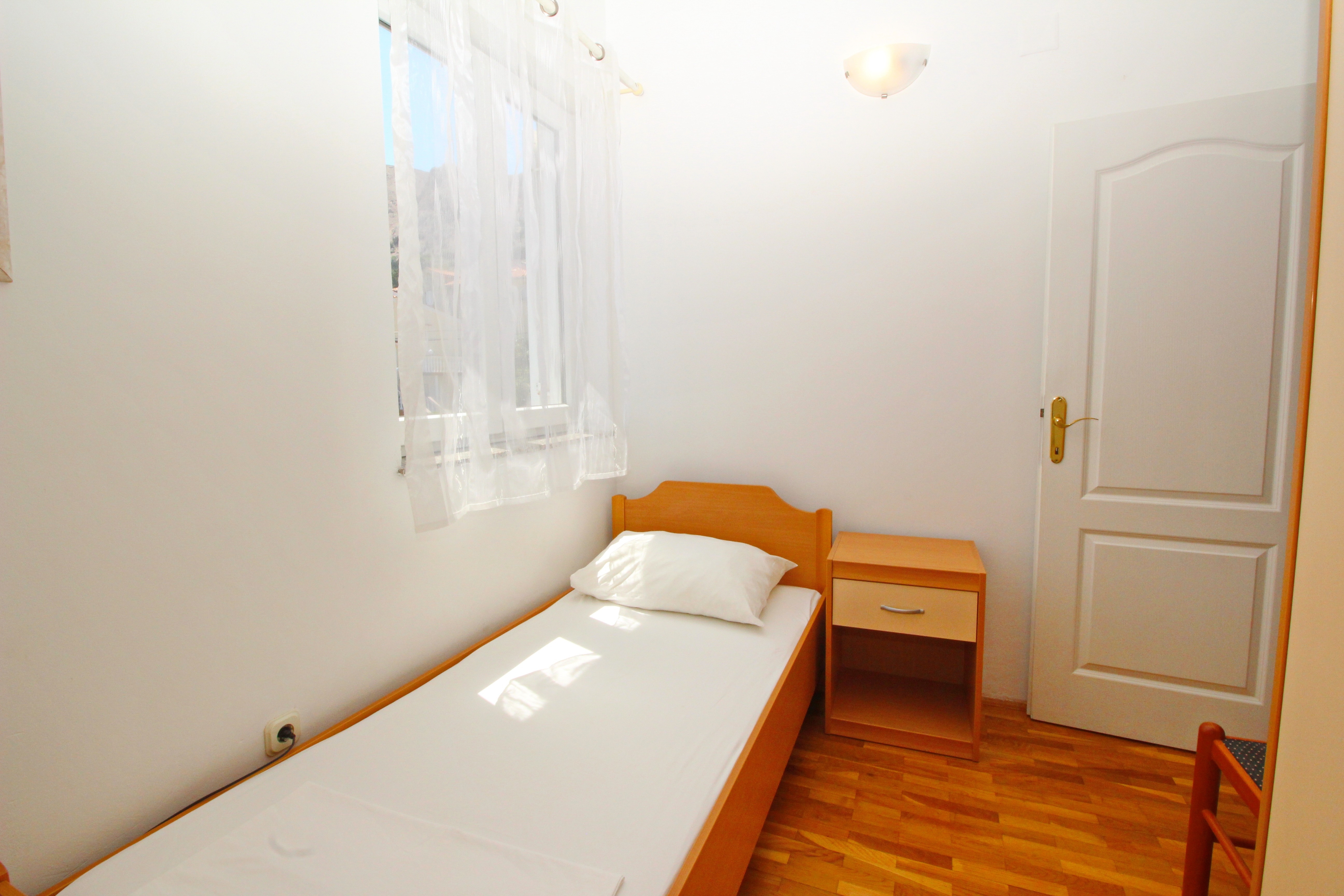 Apartament może przyjąć 4 gości. Łóżka znajdują się w sypialniach, których jest 2, na powierzchni 45m2. Goście mają dostęp do tarasu, by korzystać z ciepłych, letnich wieczorów. Z apartamentu roztacza się widok na morze. W kwaterze dozwolony jest pobyt zwierzęcia domowego, za dopłatą. WLICZONE W CENĘ: taksa pobytowa, sprzątanie końcowe, klimatyzacja, parking, internet. OBOWIĄZKOWE KOSZTY DODATKOWE: dopłata za krótki termin (procent dopłaty w zalezności od liczby noclegów: 30% - 1, 20% - 2, 10% - 3). NIEOBOWIĄZKOWE KOSZTY DODATKOWE: zwierzęta domowe (10,00 € za nocleg). Dostępność dodatkowych usług w rezerwowanym terminie oraz ich cenę (jeśli nie jest podana) należy sprawdzić wcześniej. Za dodatowe usługi, które nie zostały uwzględnione w kalkulacji ceny, płaci się bezpośrednio właścicielowi obiektu, pod warunkiem śe gość korzysta z tych usług.