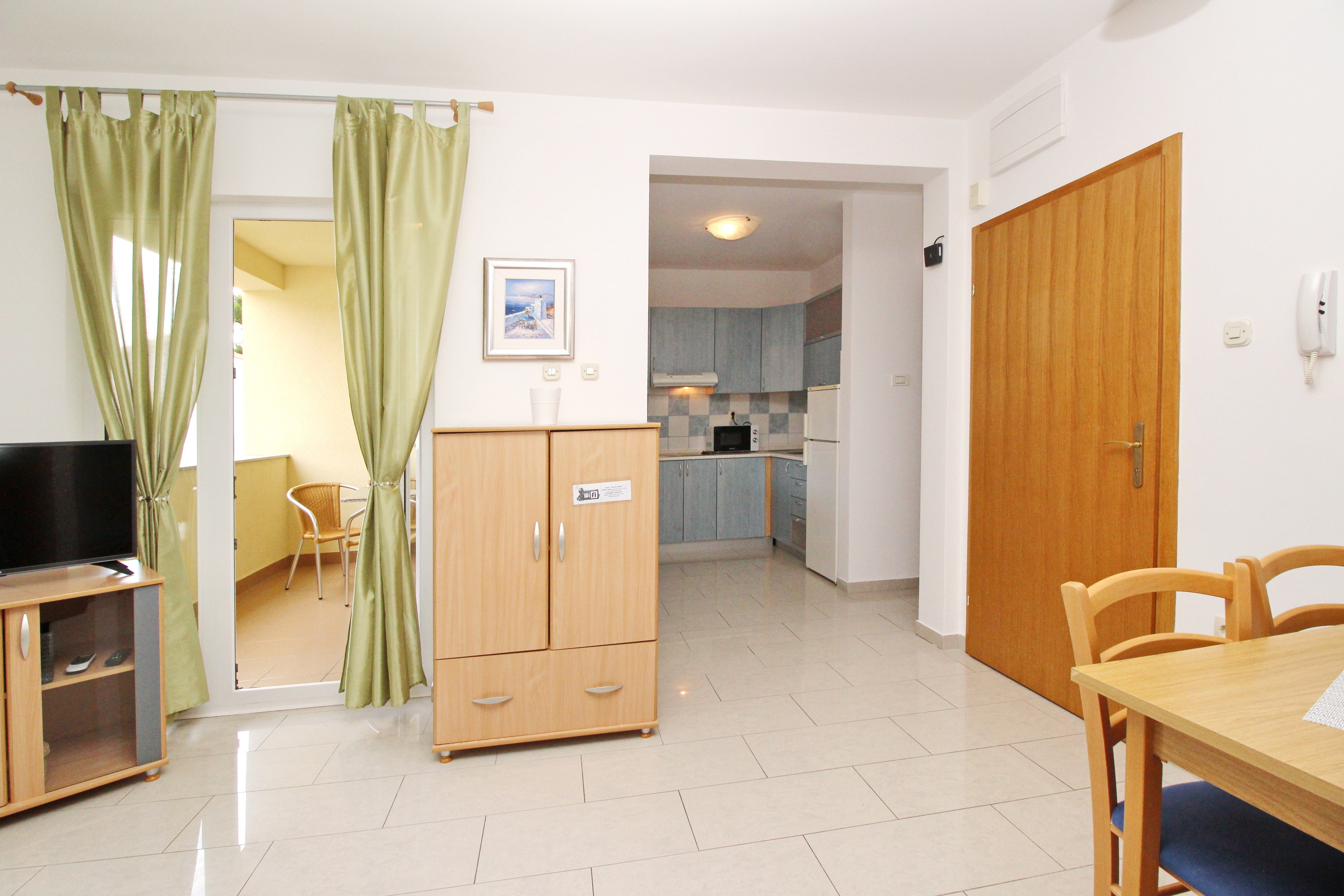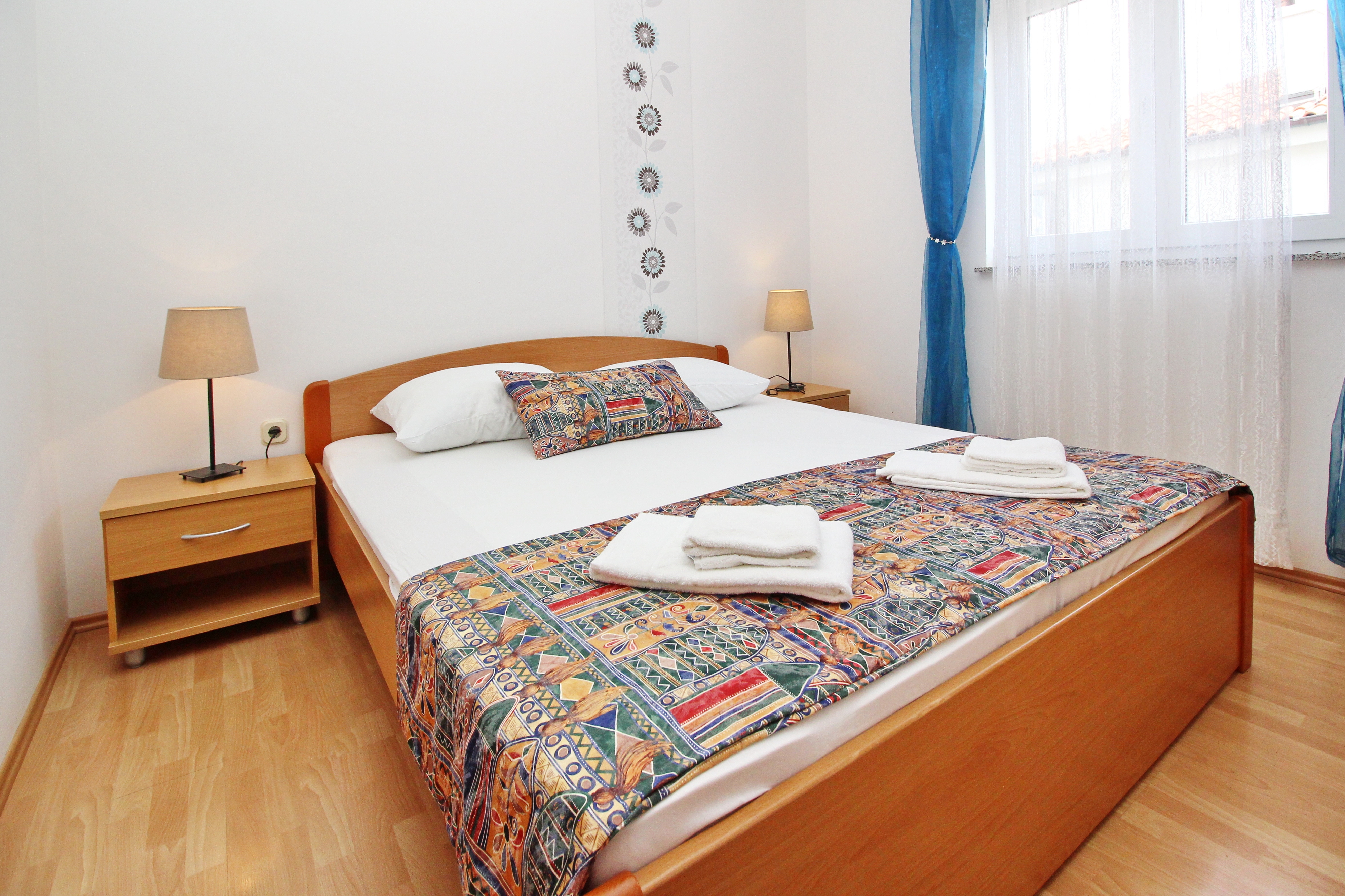 Apartament może przyjąć 5 gości. Łóżka znajdują się w sypialniach, których jest 2, oraz w pokoju dziennym, na powierzchni 50m2. Goście mają dostęp do tarasu, by korzystać z ciepłych, letnich wieczorów. W kwaterze dozwolony jest pobyt zwierzęcia domowego, za dopłatą. WLICZONE W CENĘ: taksa pobytowa, sprzątanie końcowe, klimatyzacja, parking, internet. OBOWIĄZKOWE KOSZTY DODATKOWE: dopłata za krótki termin (procent dopłaty w zalezności od liczby noclegów: 30% - 1, 20% - 2, 10% - 3). NIEOBOWIĄZKOWE KOSZTY DODATKOWE: zwierzęta domowe (10,00 € za nocleg). Dostępność dodatkowych usług w rezerwowanym terminie oraz ich cenę (jeśli nie jest podana) należy sprawdzić wcześniej. Za dodatowe usługi, które nie zostały uwzględnione w kalkulacji ceny, płaci się bezpośrednio właścicielowi obiektu, pod warunkiem śe gość korzysta z tych usług.