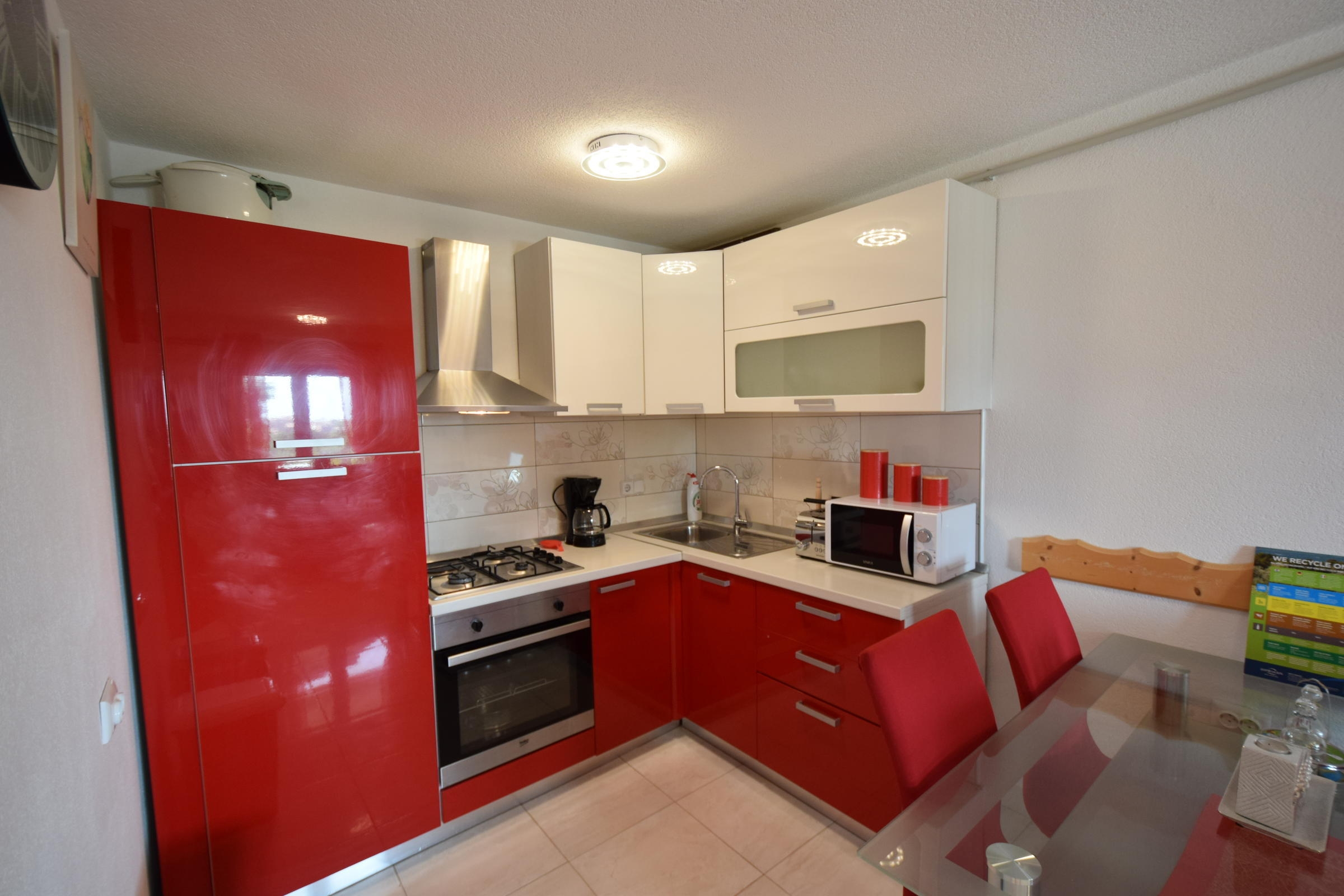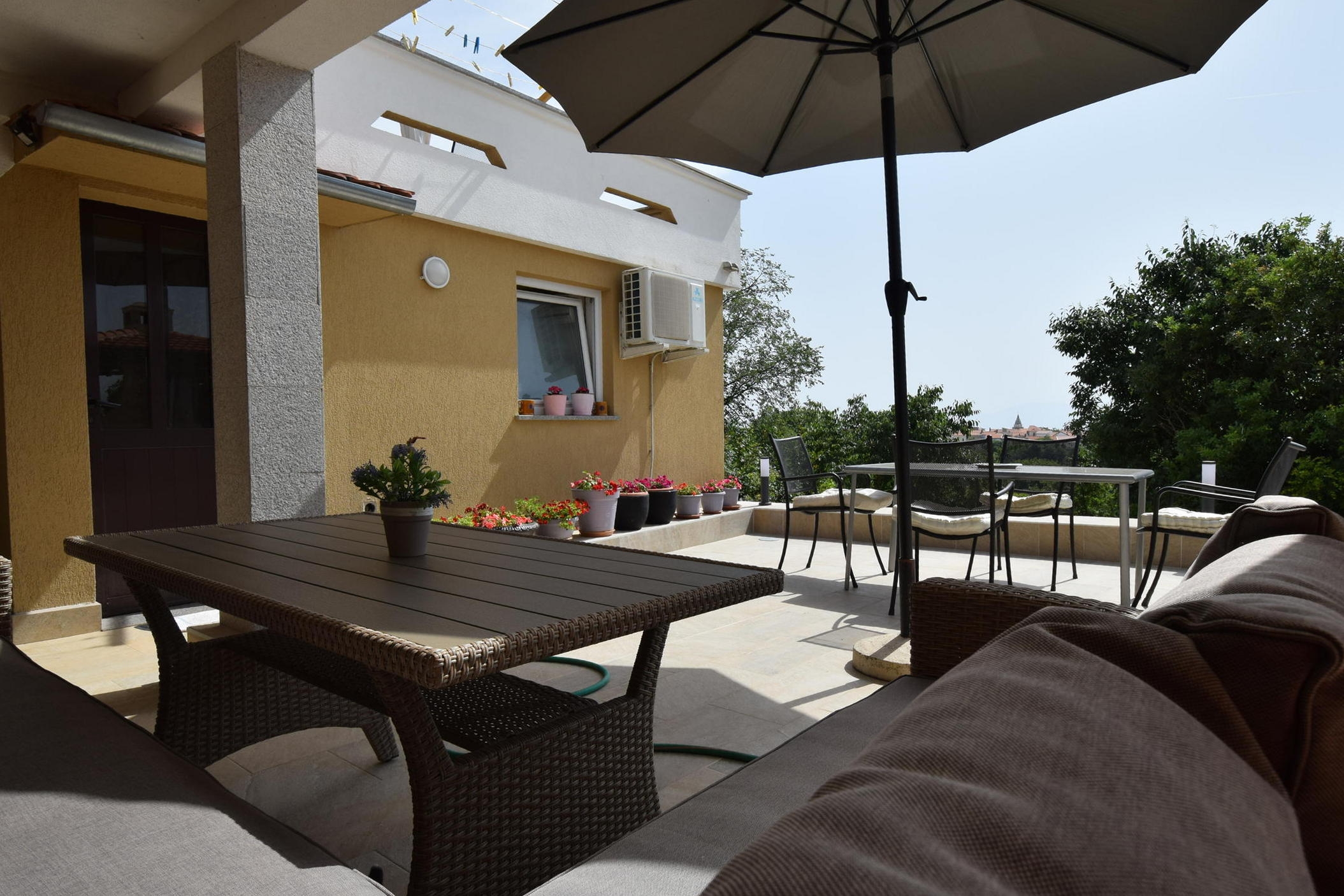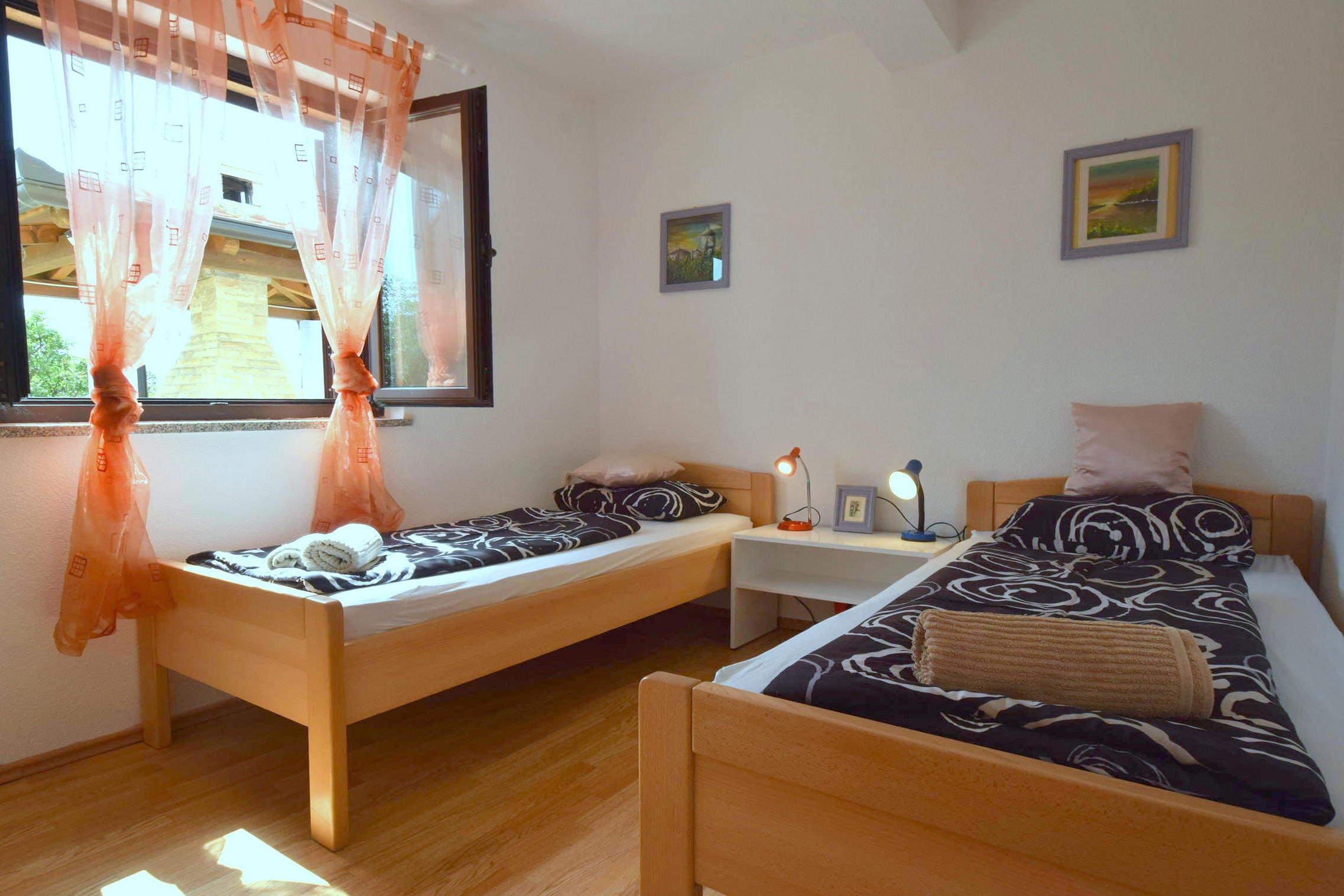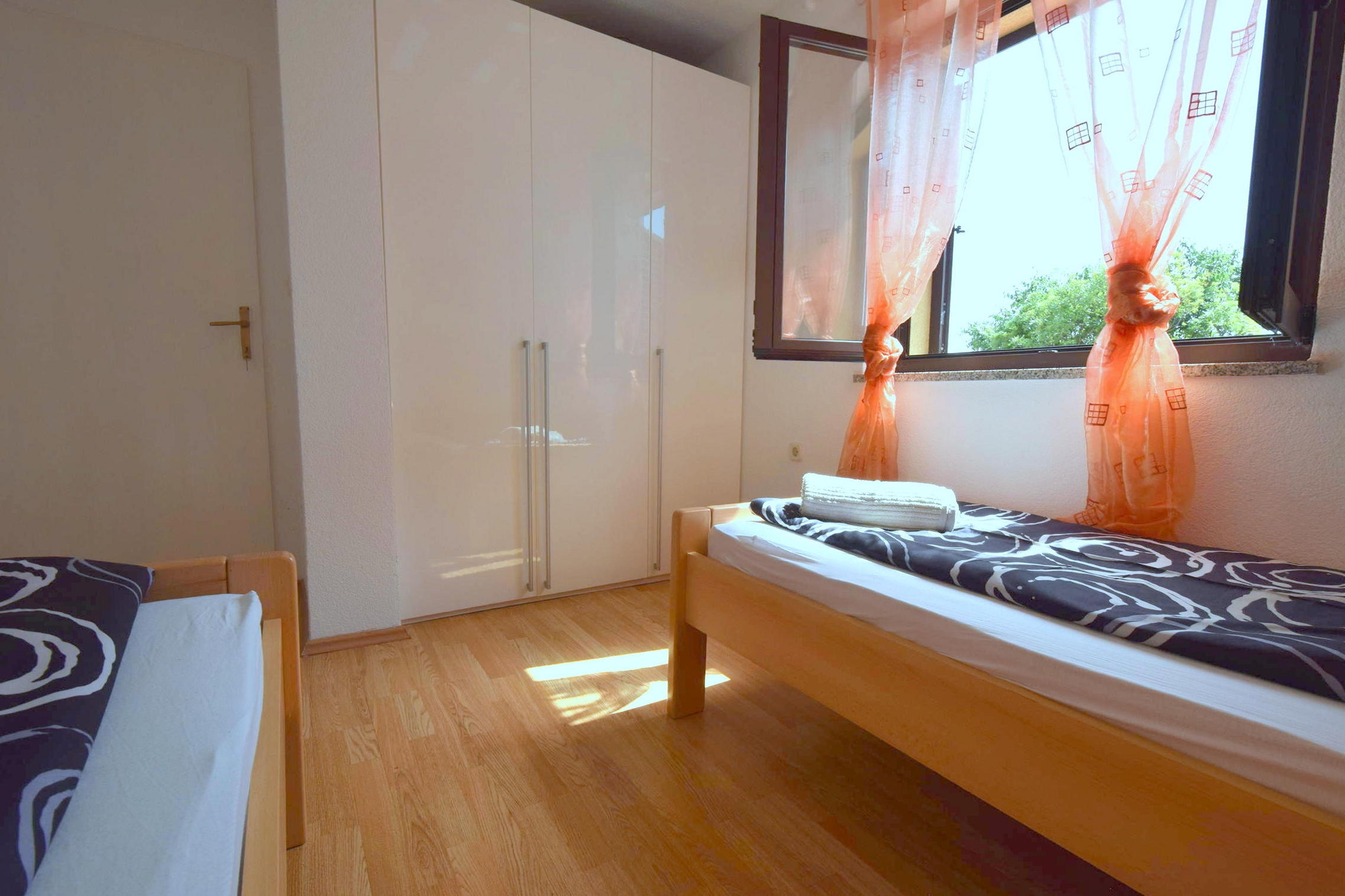 Apartament może przyjąć 4 gości. Łóżka znajdują się w sypialniach, których jest 2, na powierzchni 47m2. Goście mają dostęp do tarasu, by korzystać z ciepłych, letnich wieczorów. Możliwość przygotowywania posiłków poprzez korzystanie ze wspólnego grilla. W trakcie swojego pobytu goście mogą korzystać ze wspólnego basenu. W kwaterze dozwolony jest pobyt zwierzęcia domowego, za dopłatą. WLICZONE W CENĘ: taksa pobytowa, sprzątanie końcowe, klimatyzacja, basen, parking, internet. OBOWIĄZKOWE KOSZTY DODATKOWE: dopłata za krótki termin (procent dopłaty w zalezności od liczby noclegów: 30% - 1, 20% - 2, 10% - 3). NIEOBOWIĄZKOWE KOSZTY DODATKOWE: zwierzęta domowe (11,00 € za nocleg). Dostępność dodatkowych usług w rezerwowanym terminie oraz ich cenę (jeśli nie jest podana) należy sprawdzić wcześniej. Za dodatowe usługi, które nie zostały uwzględnione w kalkulacji ceny, płaci się bezpośrednio właścicielowi obiektu, pod warunkiem śe gość korzysta z tych usług.
