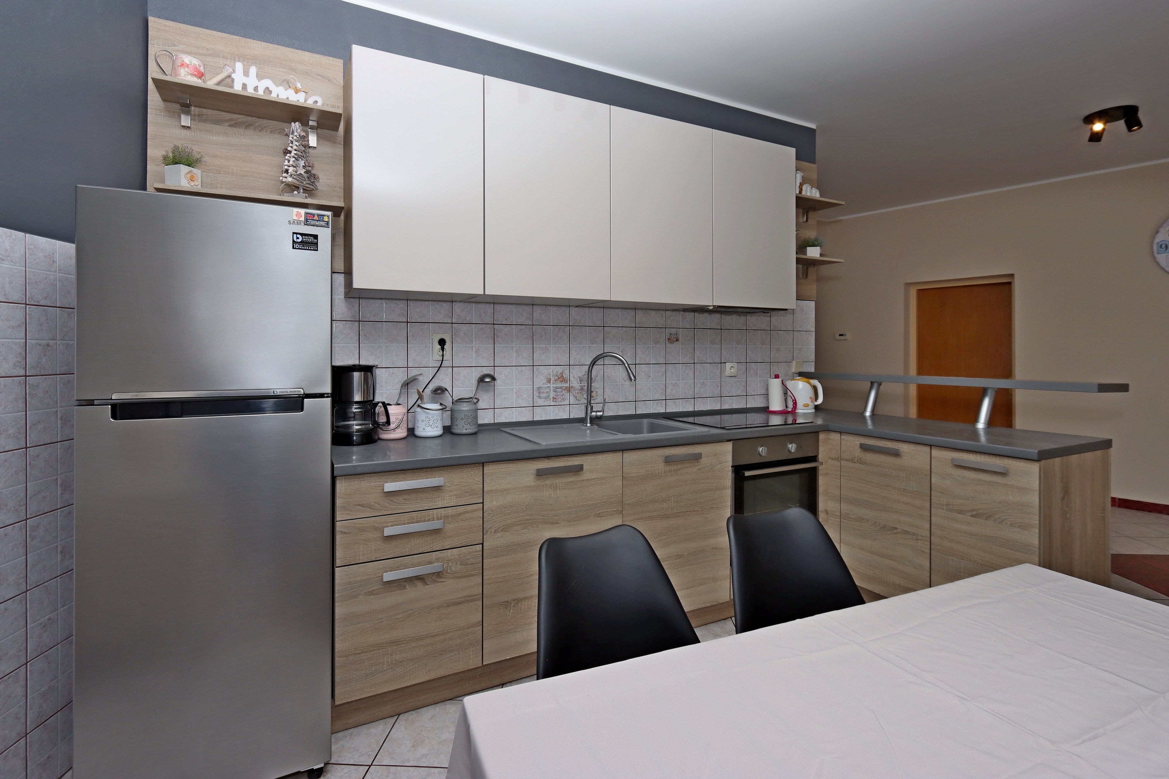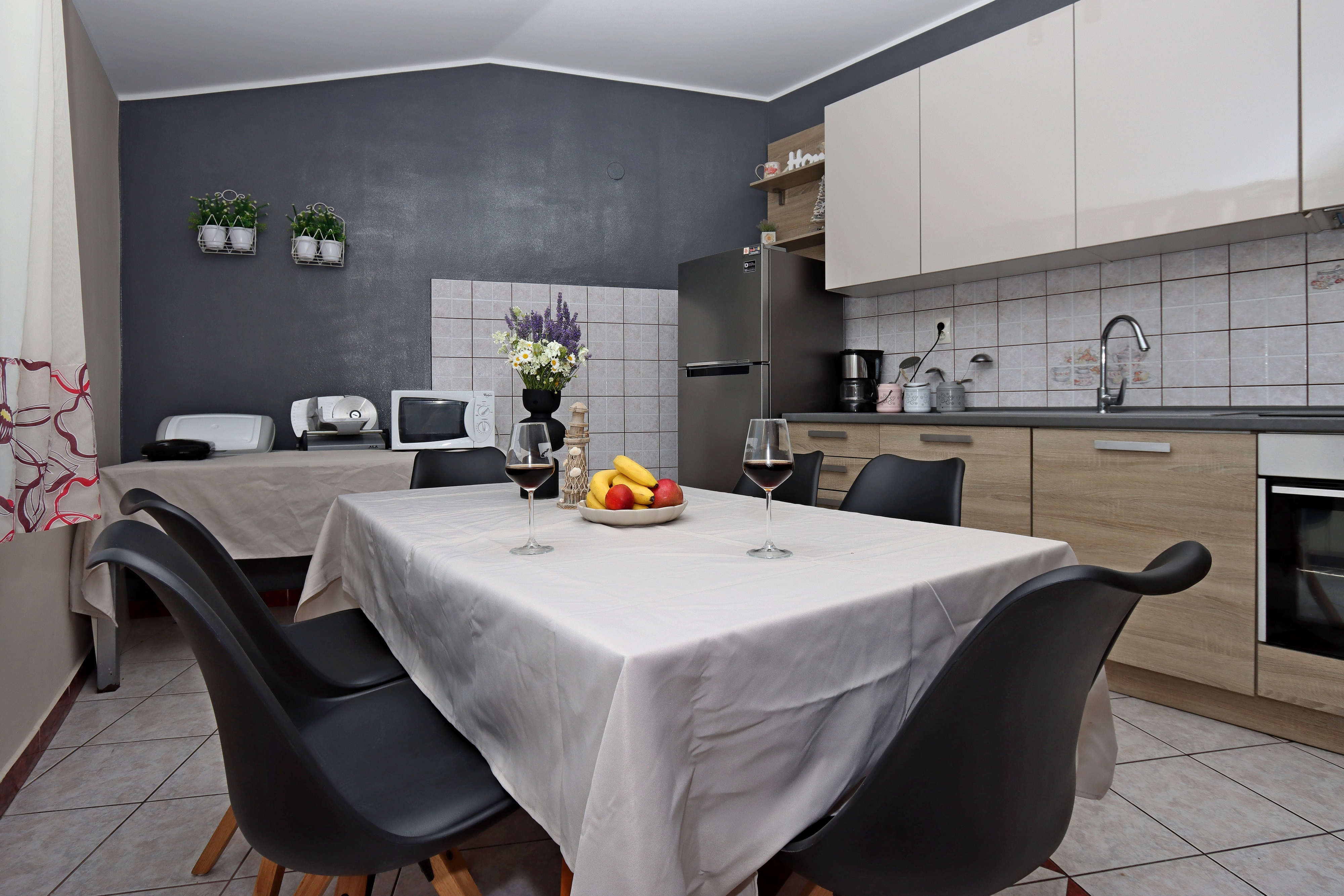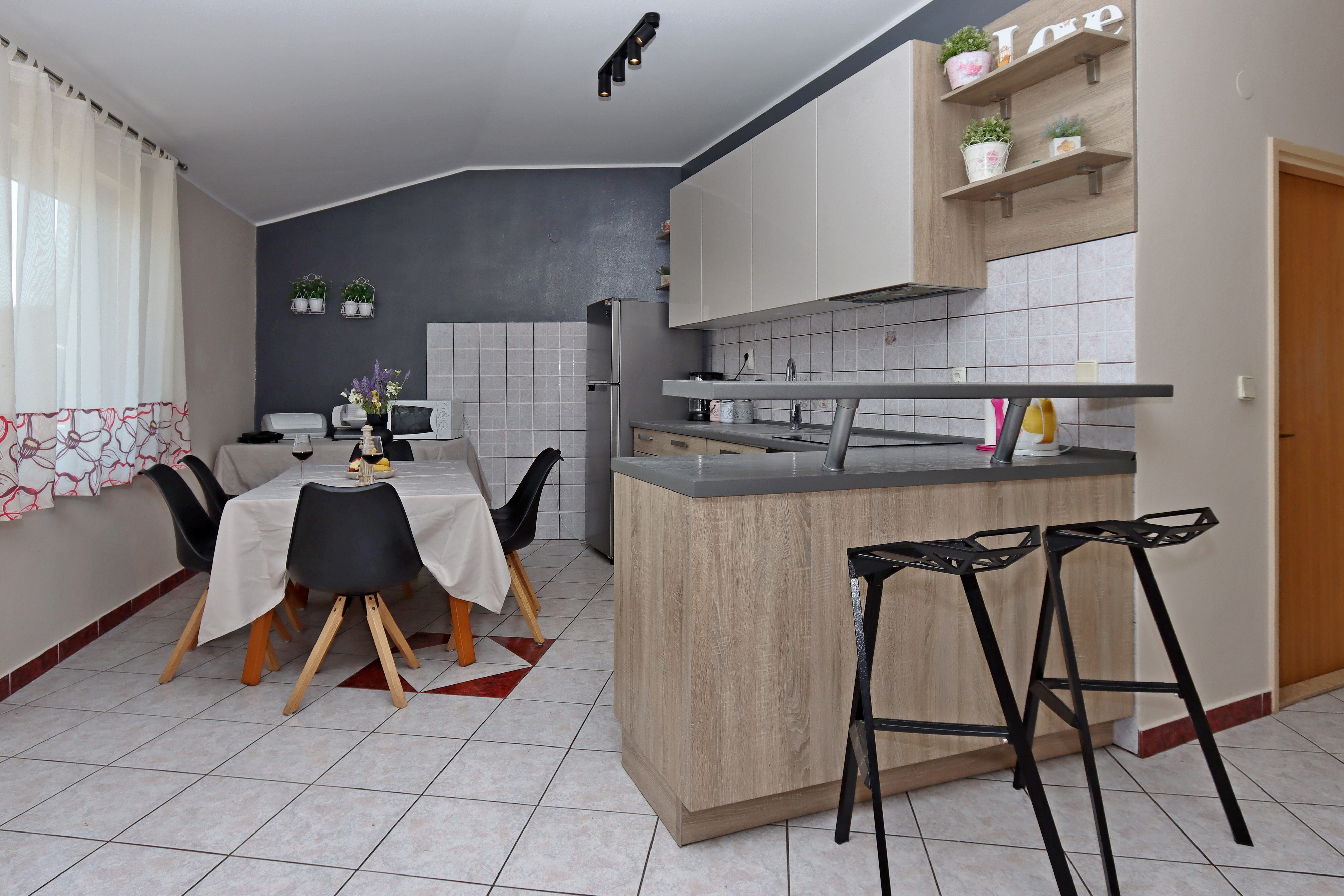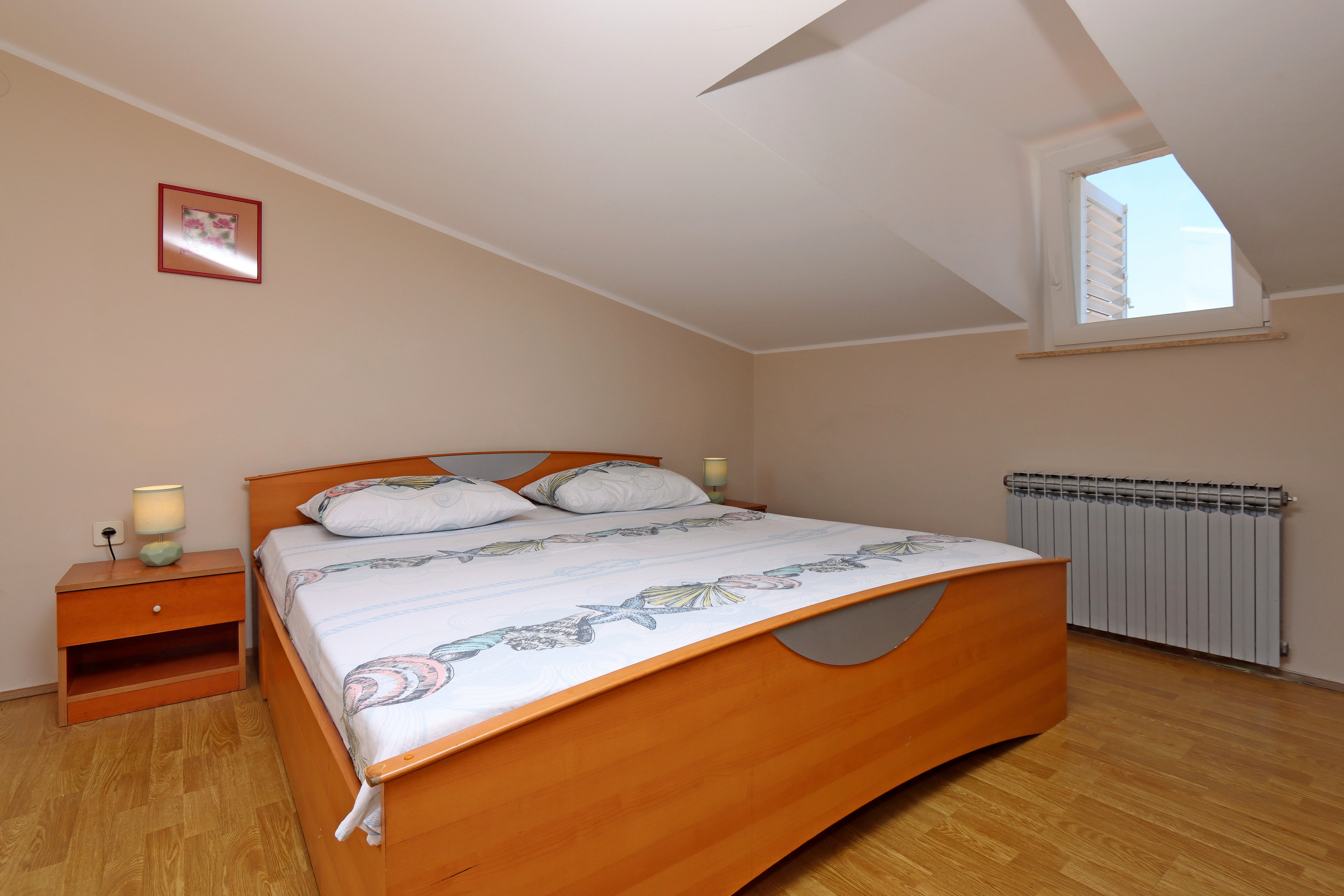 Apartament może przyjąć 6 gości. Łóżka znajdują się w sypialniach, których jest 2, na powierzchni 102m2. Goście mają dostęp do tarasu, by korzystać z ciepłych, letnich wieczorów. Z apartamentu roztacza się widok na morze. Grill jest dostępny tylko do użytku gości z tej kwatery. WLICZONE W CENĘ: taksa pobytowa, sprzątanie końcowe, klimatyzacja, centralne ogrzewanie, parking, internet, żelazko, suszarka do włosów. OBOWIĄZKOWE KOSZTY DODATKOWE: dopłata za krótki termin (procent dopłaty w zalezności od liczby noclegów: 30% - 1, 20% - 2, 10% - 3). NIEOBOWIĄZKOWE KOSZTY DODATKOWE: dostawka (7,00 € za nocleg). Dostępność dodatkowych usług w rezerwowanym terminie oraz ich cenę (jeśli nie jest podana) należy sprawdzić wcześniej. Za dodatowe usługi, które nie zostały uwzględnione w kalkulacji ceny, płaci się bezpośrednio właścicielowi obiektu, pod warunkiem śe gość korzysta z tych usług.