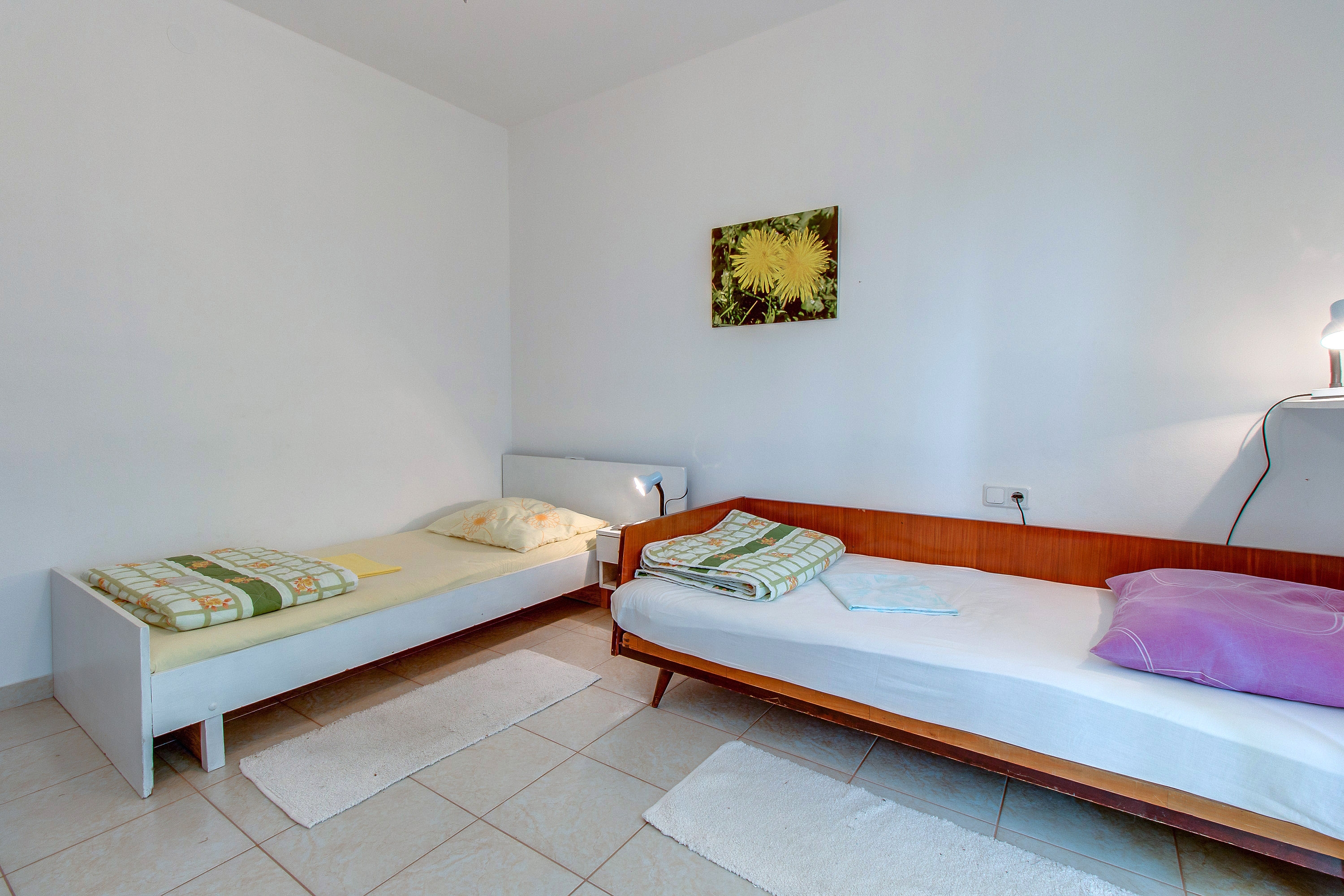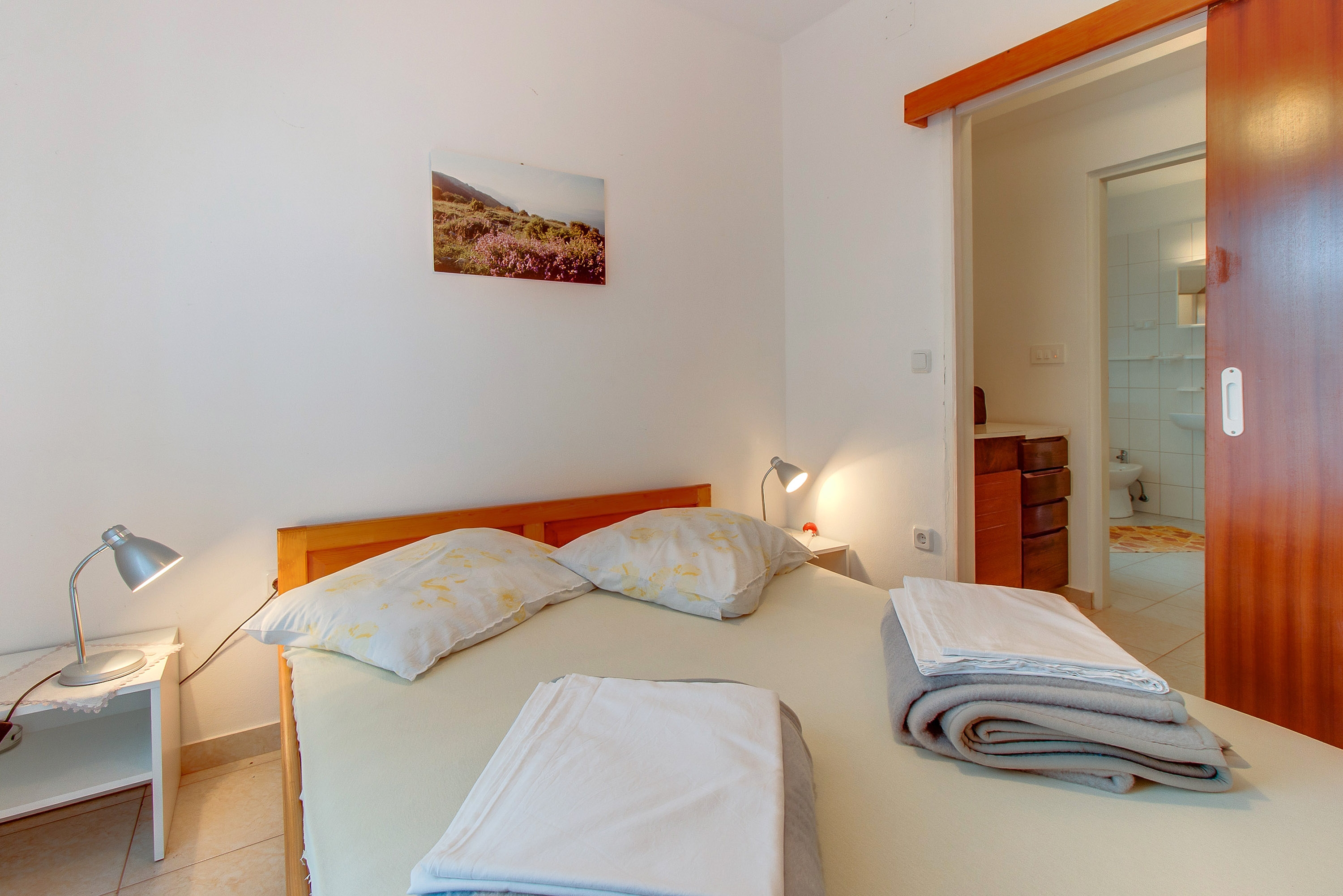 Apartament może przyjąć 7 gości. Łóżka znajdują się w sypialniach, których jest 2, oraz w pokoju dziennym, na powierzchni 63m2. Goście mają dostęp do tarasu, by korzystać z ciepłych, letnich wieczorów. Możliwość przygotowywania posiłków poprzez korzystanie ze wspólnego grilla. W kwaterze dozwolony jest pobyt zwierzęcia domowego, za dopłatą. Przez taras rezerwowanej kwatery przechodzą także inni goście lub gospodarze. WLICZONE W CENĘ: taksa pobytowa, sprzątanie końcowe, klimatyzacja, parking, internet, łóżeczko dziecięce, żelazko, deska do prasowania, suszarka do włosów. OBOWIĄZKOWE KOSZTY DODATKOWE: dopłata za krótki termin (procent dopłaty w zalezności od liczby noclegów: 30% - 1, 20% - 2, 10% - 3). NIEOBOWIĄZKOWE KOSZTY DODATKOWE: zwierzęta domowe (5,00 € za nocleg), dostawka (13,00 € za nocleg). Dostępność dodatkowych usług w rezerwowanym terminie oraz ich cenę (jeśli nie jest podana) należy sprawdzić wcześniej. Za dodatowe usługi, które nie zostały uwzględnione w kalkulacji ceny, płaci się bezpośrednio właścicielowi obiektu, pod warunkiem śe gość korzysta z tych usług. Zniżki od ceny podstawowej: bezpłatny dzień 28=25 (na pobyt na 28 dni lub więcej otrzymują Państwo 3 dni gratis na pobyt do 31.12.2026).