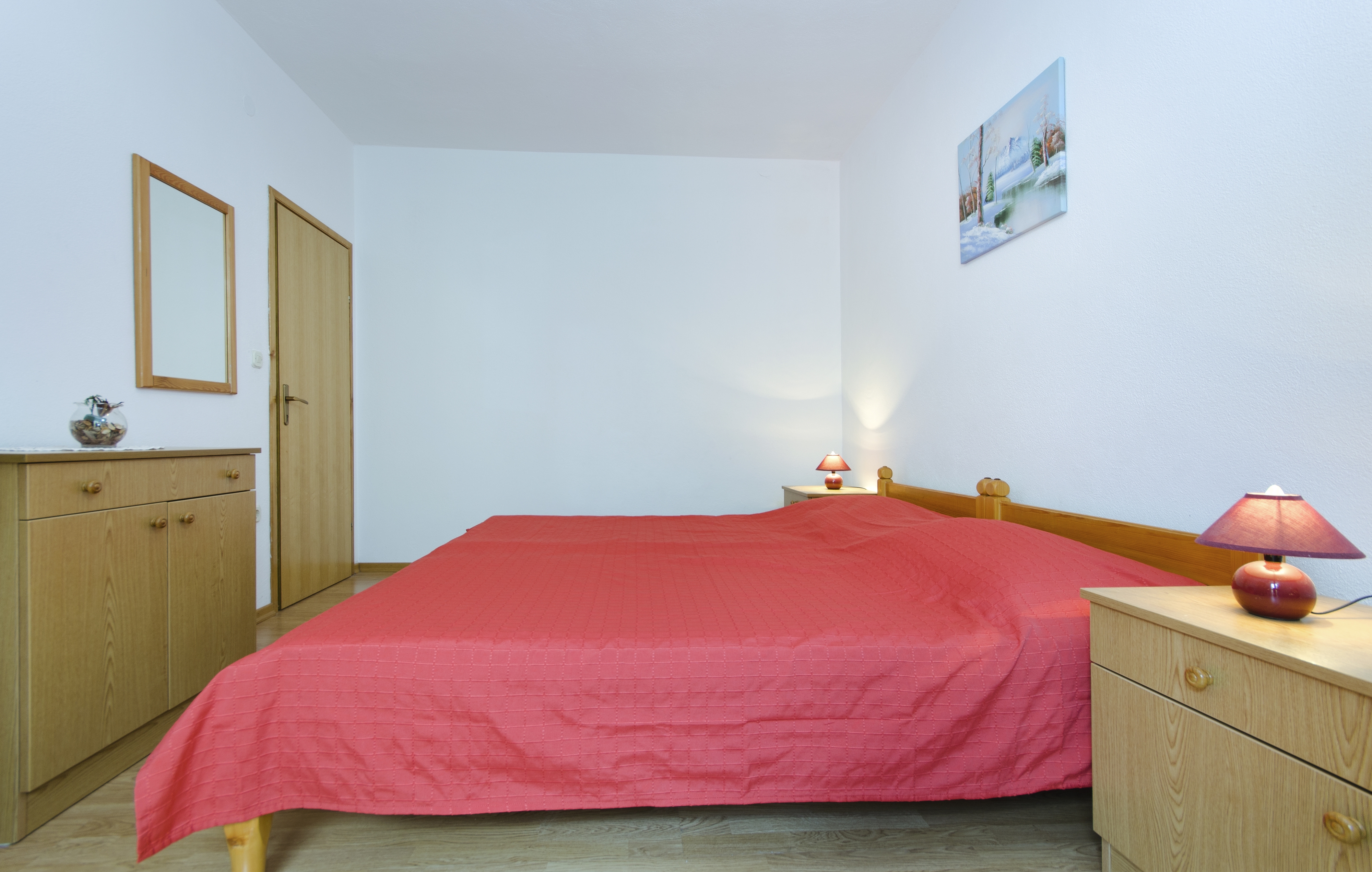Apartament może przyjąć 4 gości. Łóżka znajdują się w sypialniach, których jest 1, oraz w jadalni, na powierzchni 30m2. Goście mają dostęp do balkonu, by korzystać z ciepłych, letnich wieczorów. Możliwość przygotowywania posiłków poprzez korzystanie ze wspólnego grilla. W trakcie swojego pobytu goście mogą korzystać ze wspólnego basenu. WLICZONE W CENĘ: taksa pobytowa, sprzątanie końcowe, klimatyzacja, basen, parking, internet, łóżeczko dziecięce, żelazko, deska do prasowania, suszarka do włosów. NIEOBOWIĄZKOWE KOSZTY DODATKOWE: pranie bielizny (3,00 € pranie). Dostępność dodatkowych usług w rezerwowanym terminie oraz ich cenę (jeśli nie jest podana) należy sprawdzić wcześniej. Za dodatowe usługi, które nie zostały uwzględnione w kalkulacji ceny, płaci się bezpośrednio właścicielowi obiektu, pod warunkiem śe gość korzysta z tych usług.