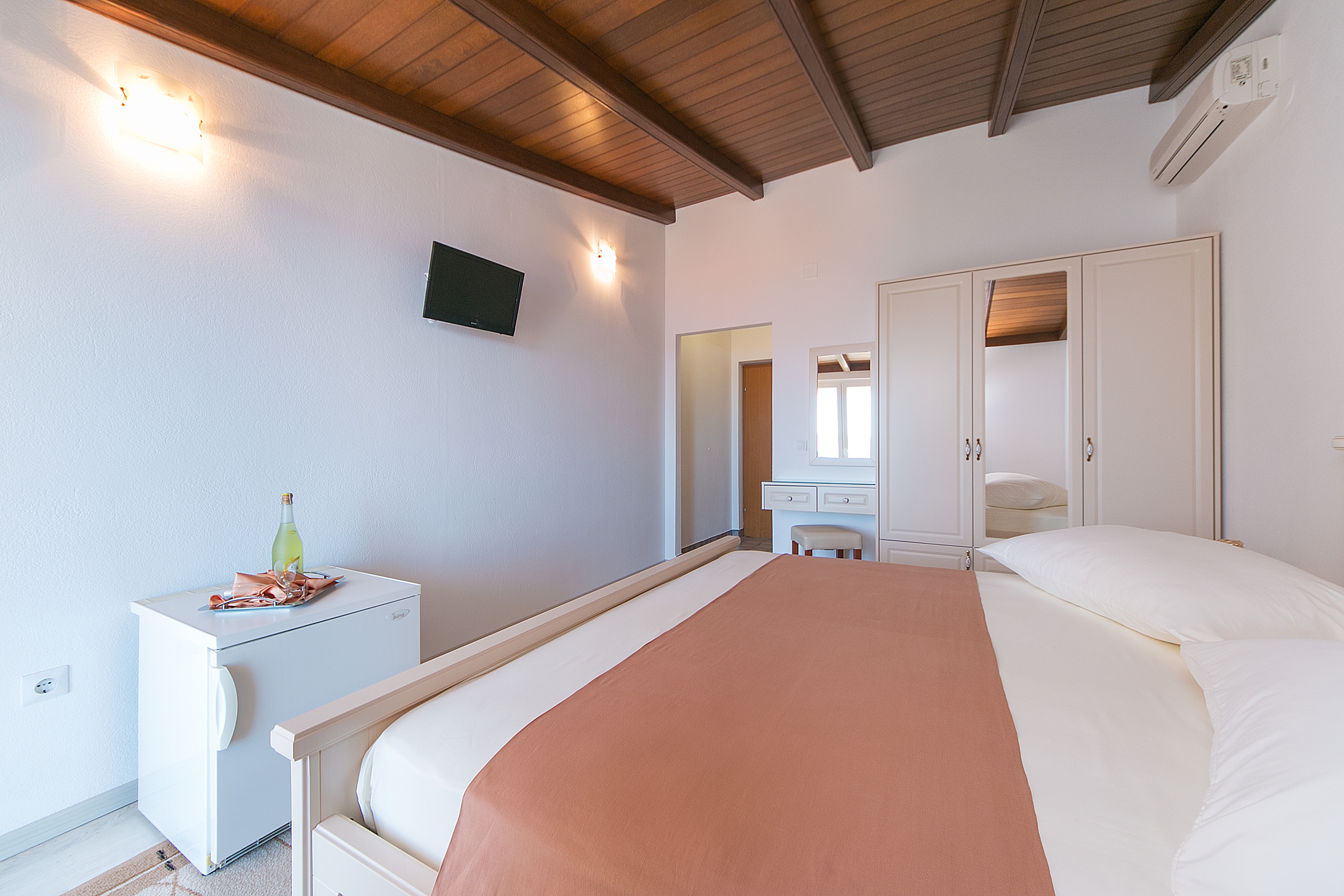 Pokój może przyjąć 2 gości. Łóżka znajdują się w sypialniach, których jest 1, na powierzchni 19m2. Goście mają dostęp do balkonu, by korzystać z ciepłych, letnich wieczorów. Z pokoju roztacza się widok na morze. Rezerwowana kwatera to pokój z własną łazienką, bez możliwości korzystania z kuchni. WLICZONE W CENĘ: taksa pobytowa, sprzątanie końcowe, parking, internet, suszarka do włosów. OBOWIĄZKOWE KOSZTY DODATKOWE: dopłata za krótki termin (procent dopłaty w zalezności od liczby noclegów: 30% - 1, 20% - 2, 10% - 3). NIEOBOWIĄZKOWE KOSZTY DODATKOWE: klimatyzacja (5,00 € za nocleg), pranie bielizny (10,00 € pranie), dostawka (15,00 € za nocleg). Dostępność dodatkowych usług w rezerwowanym terminie oraz ich cenę (jeśli nie jest podana) należy sprawdzić wcześniej. Za dodatowe usługi, które nie zostały uwzględnione w kalkulacji ceny, płaci się bezpośrednio właścicielowi obiektu, pod warunkiem śe gość korzysta z tych usług.