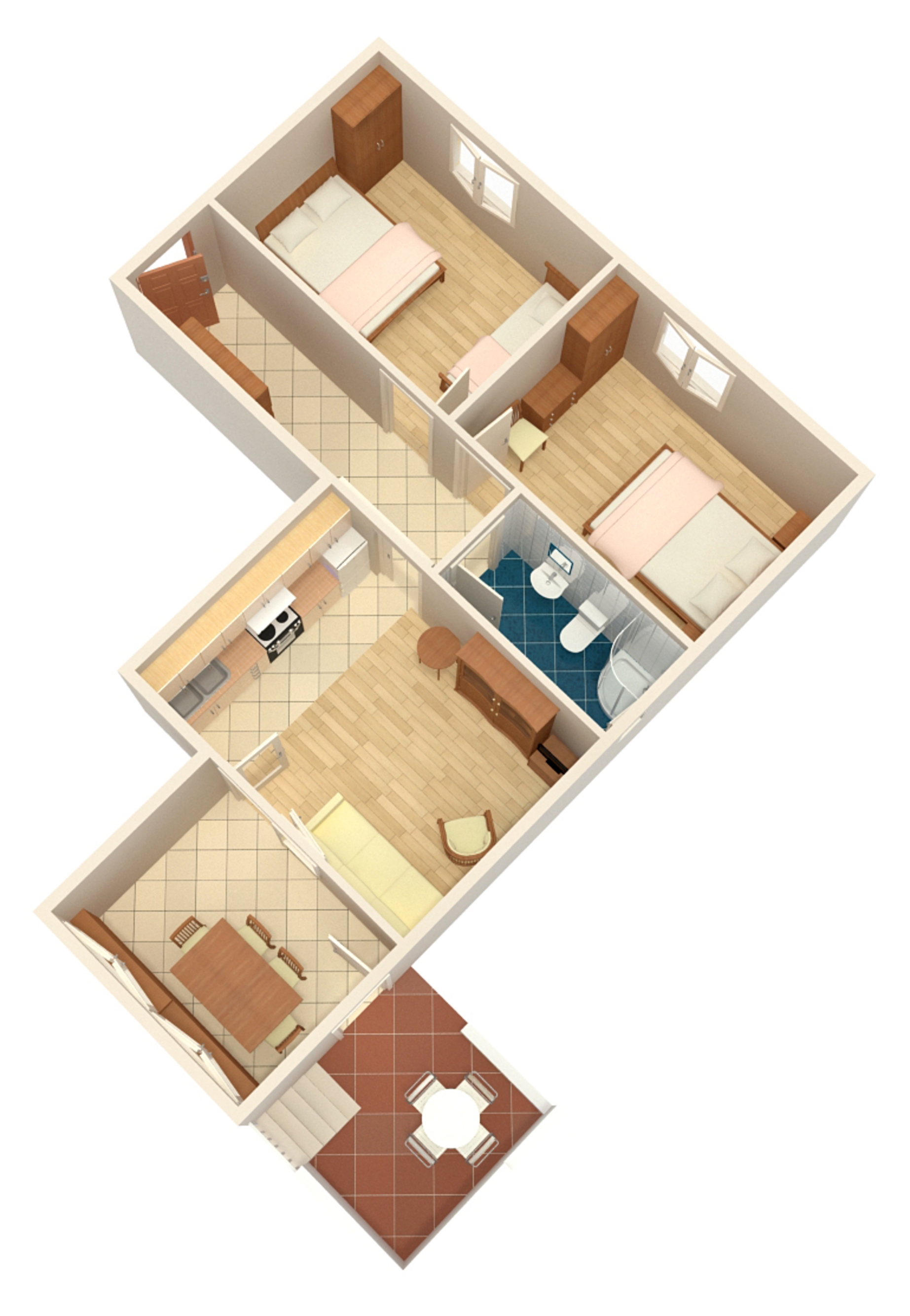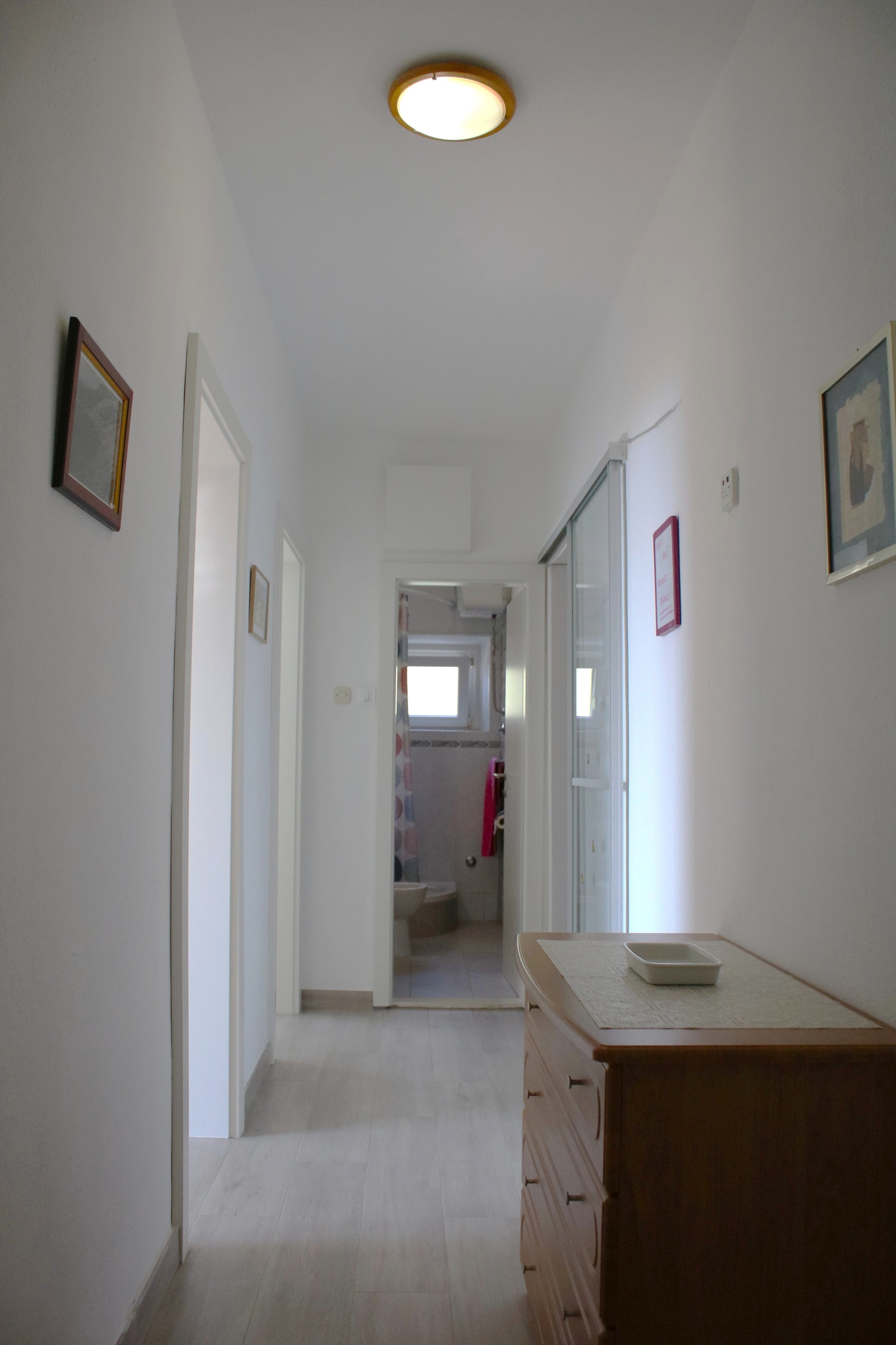 Apartament może przyjąć 4 gości. Łóżka znajdują się w sypialniach, których jest 2, na powierzchni 59m2. Goście mają dostęp do tarasu, by korzystać z ciepłych, letnich wieczorów. Z apartamentu roztacza się widok na morze. Możliwość przygotowywania posiłków poprzez korzystanie ze wspólnego grilla. WLICZONE W CENĘ: taksa pobytowa, sprzątanie końcowe, klimatyzacja, parking, internet, żelazko, deska do prasowania, suszarka do włosów. OBOWIĄZKOWE KOSZTY DODATKOWE: dopłata za krótki termin (procent dopłaty w zalezności od liczby noclegów: 30% - 1, 20% - 2, 10% - 3). NIEOBOWIĄZKOWE KOSZTY DODATKOWE: pranie bielizny (5,00 € pranie). Dostępność dodatkowych usług w rezerwowanym terminie oraz ich cenę (jeśli nie jest podana) należy sprawdzić wcześniej. Za dodatowe usługi, które nie zostały uwzględnione w kalkulacji ceny, płaci się bezpośrednio właścicielowi obiektu, pod warunkiem śe gość korzysta z tych usług.
