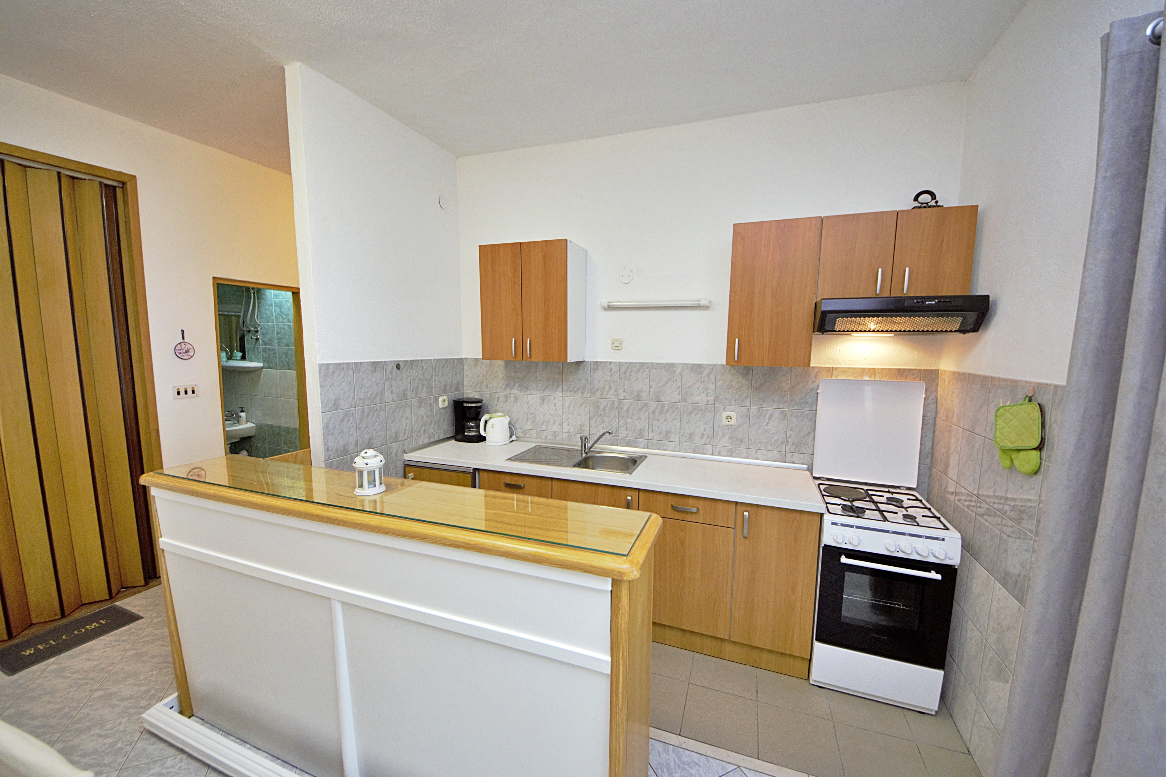 Apartament może przyjąć 7 gości. Łóżka znajdują się w sypialniach, których jest 3, na powierzchni 88m2. Goście mają dostęp do tarasu, by korzystać z ciepłych, letnich wieczorów. Z apartamentu roztacza się widok na morze. Grill jest dostępny tylko do użytku gości z tej kwatery. W trakcie swojego pobytu goście mogą zrelakswować się w prywatnym basenie. W kwaterze dozwolony jest pobyt zwierzęcia domowego, za dopłatą. WLICZONE W CENĘ: taksa pobytowa, sprzątanie końcowe, klimatyzacja, basen, parking, internet, żelazko, deska do prasowania, suszarka do włosów. NIEOBOWIĄZKOWE KOSZTY DODATKOWE: zwierzęta domowe (10,00 € za nocleg). Dostępność dodatkowych usług w rezerwowanym terminie oraz ich cenę (jeśli nie jest podana) należy sprawdzić wcześniej. Za dodatowe usługi, które nie zostały uwzględnione w kalkulacji ceny, płaci się bezpośrednio właścicielowi obiektu, pod warunkiem śe gość korzysta z tych usług.