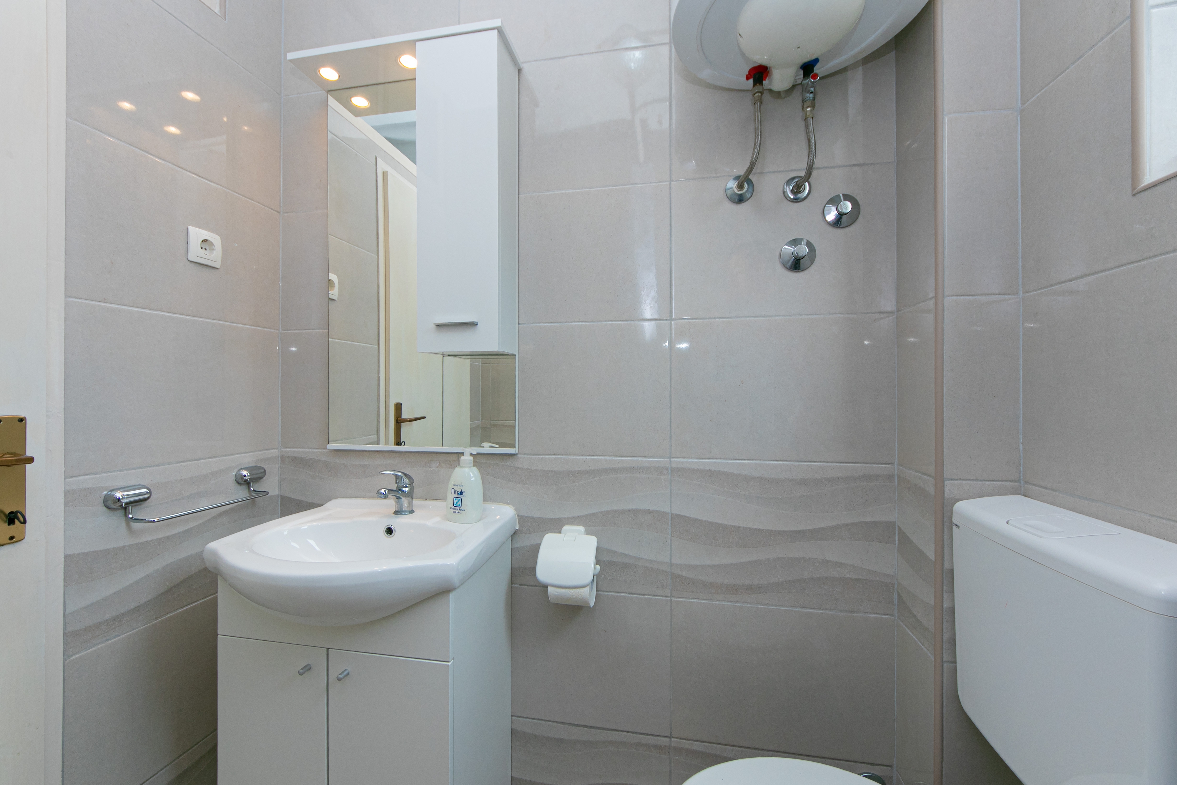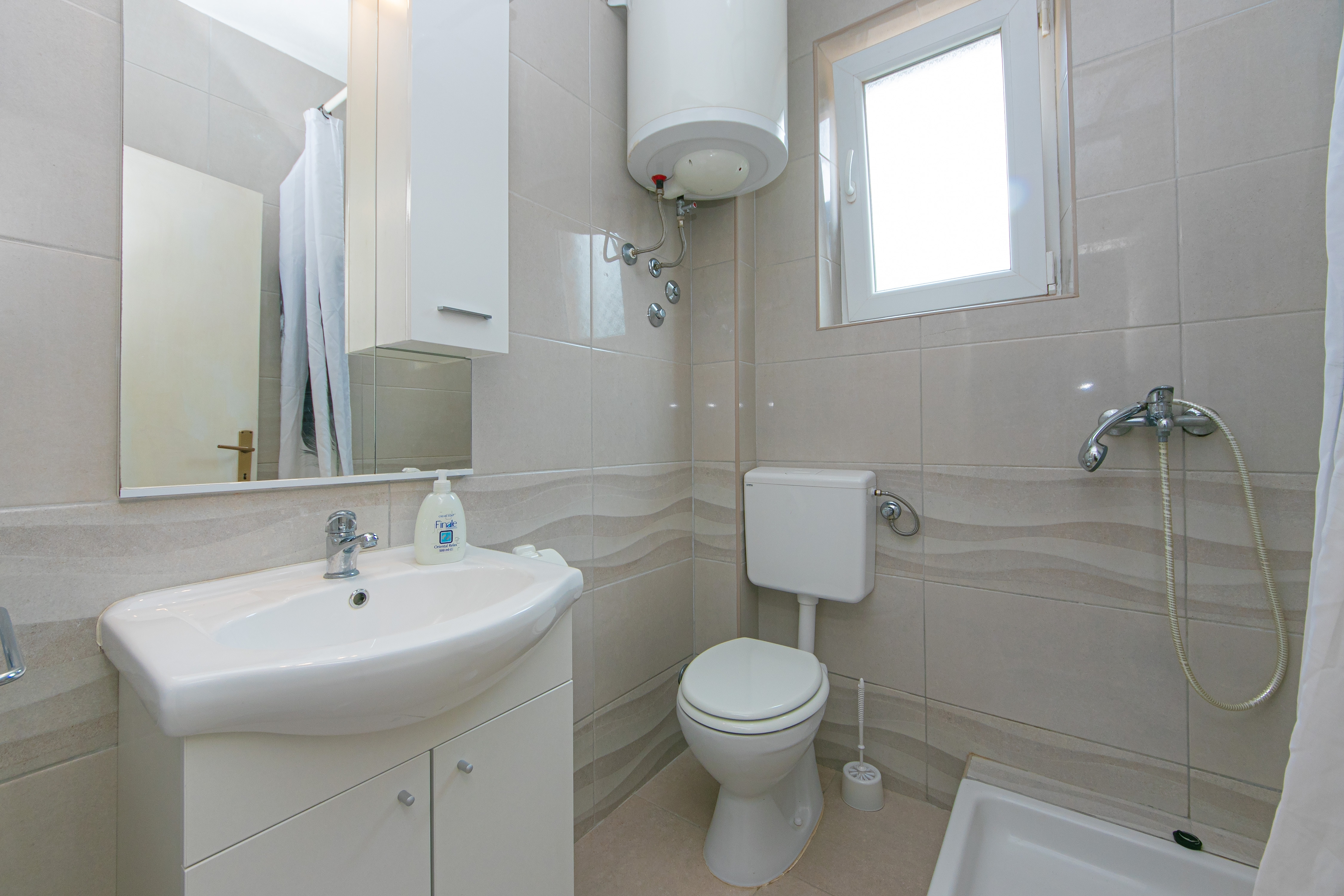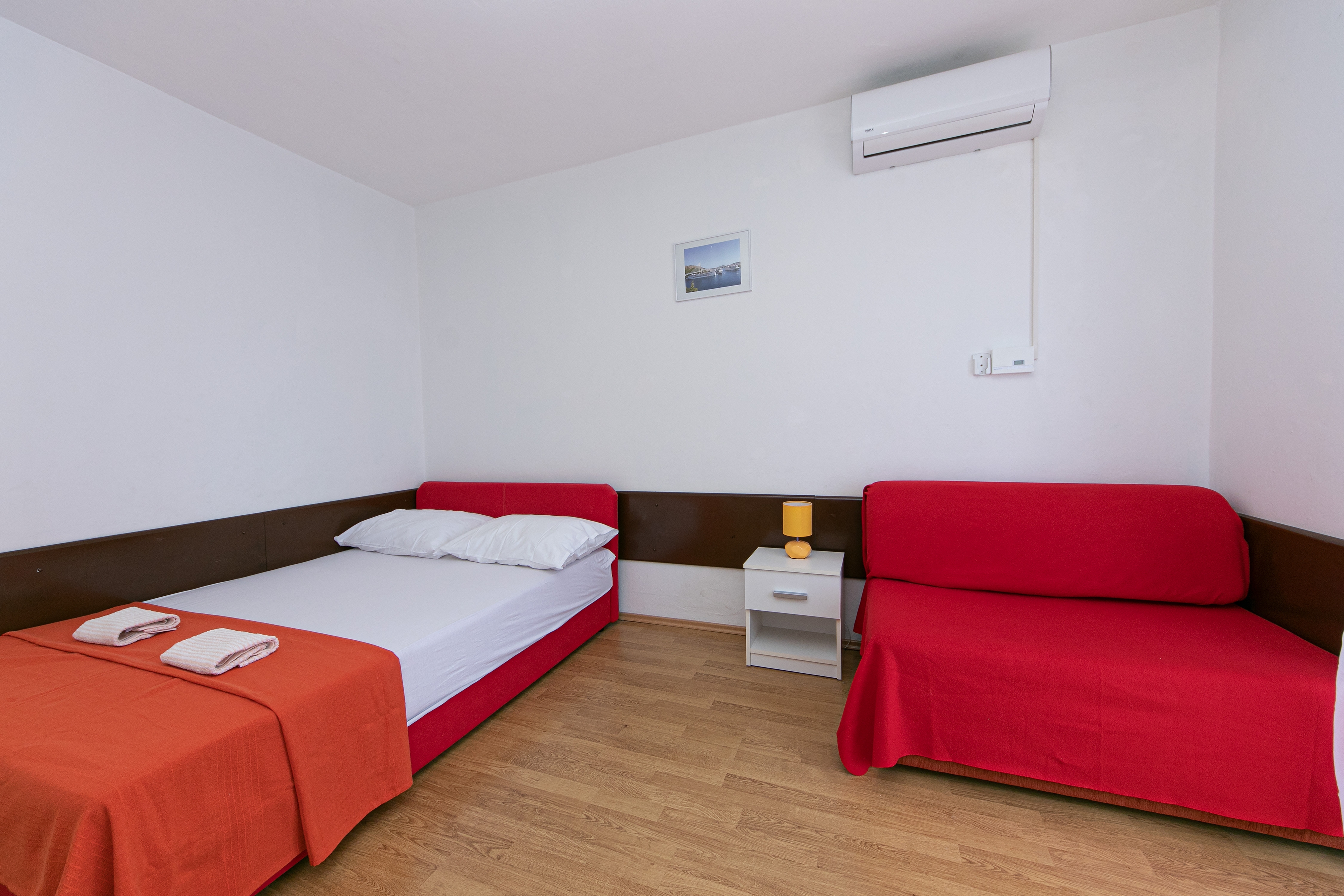 Apartament może przyjąć 3 gości. Łóżka znajdują się w sypialniach, których jest 1, oraz w jadalni, na powierzchni 26m2. Goście mają dostęp do balkonu, by korzystać z ciepłych, letnich wieczorów. Z apartamentu roztacza się widok na morze. Możliwość przygotowywania posiłków poprzez korzystanie ze wspólnego grilla. WLICZONE W CENĘ: taksa pobytowa, sprzątanie końcowe, parking, internet, żelazko, deska do prasowania, suszarka do włosów, przenośny grill. OBOWIĄZKOWE KOSZTY DODATKOWE: dopłata za krótki termin (procent dopłaty w zalezności od liczby noclegów: 30% - 1, 20% - 2, 10% - 3). NIEOBOWIĄZKOWE KOSZTY DODATKOWE: klimatyzacja (0,80 € za godzinę). Dostępność dodatkowych usług w rezerwowanym terminie oraz ich cenę (jeśli nie jest podana) należy sprawdzić wcześniej. Za dodatowe usługi, które nie zostały uwzględnione w kalkulacji ceny, płaci się bezpośrednio właścicielowi obiektu, pod warunkiem śe gość korzysta z tych usług.