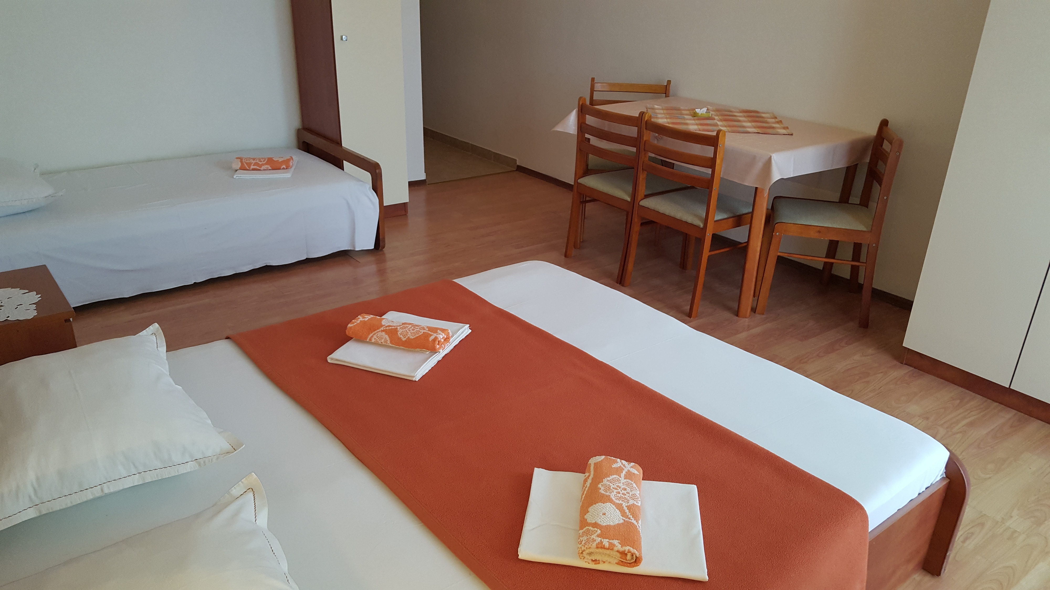 Apartament może przyjąć 4 gości. Łóżka znajdują się w sypialniach, których jest 1, oraz w pokoju dziennym, na powierzchni 24m2. Goście mają dostęp do tarasu, by korzystać z ciepłych, letnich wieczorów. Z apartamentu roztacza się widok na morze. Możliwość przygotowywania posiłków poprzez korzystanie ze wspólnego grilla. WLICZONE W CENĘ: taksa pobytowa, sprzątanie końcowe, parking, internet, żelazko, deska do prasowania. OBOWIĄZKOWE KOSZTY DODATKOWE: dopłata za krótki termin (procent dopłaty w zalezności od liczby noclegów: 30% - 1, 20% - 2, 10% - 3). NIEOBOWIĄZKOWE KOSZTY DODATKOWE: klimatyzacja (5,00 € za nocleg), pranie bielizny (5,00 € pranie). Dostępność dodatkowych usług w rezerwowanym terminie oraz ich cenę (jeśli nie jest podana) należy sprawdzić wcześniej. Za dodatowe usługi, które nie zostały uwzględnione w kalkulacji ceny, płaci się bezpośrednio właścicielowi obiektu, pod warunkiem śe gość korzysta z tych usług.